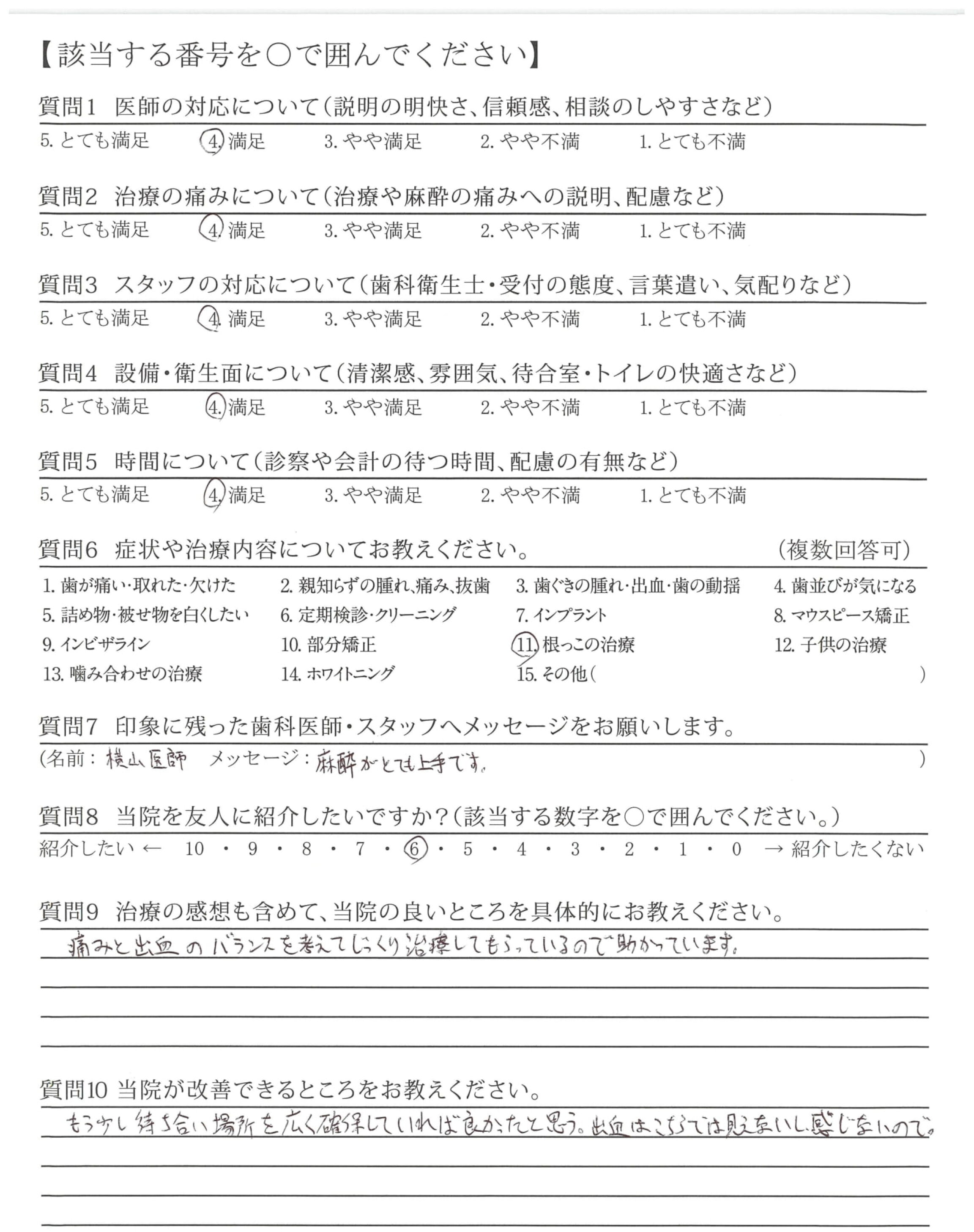 チェックインから待合室、会計もスムーズですし、個室、先生、衛生士さんいまのところ改善してほしいと思ったところがありません。