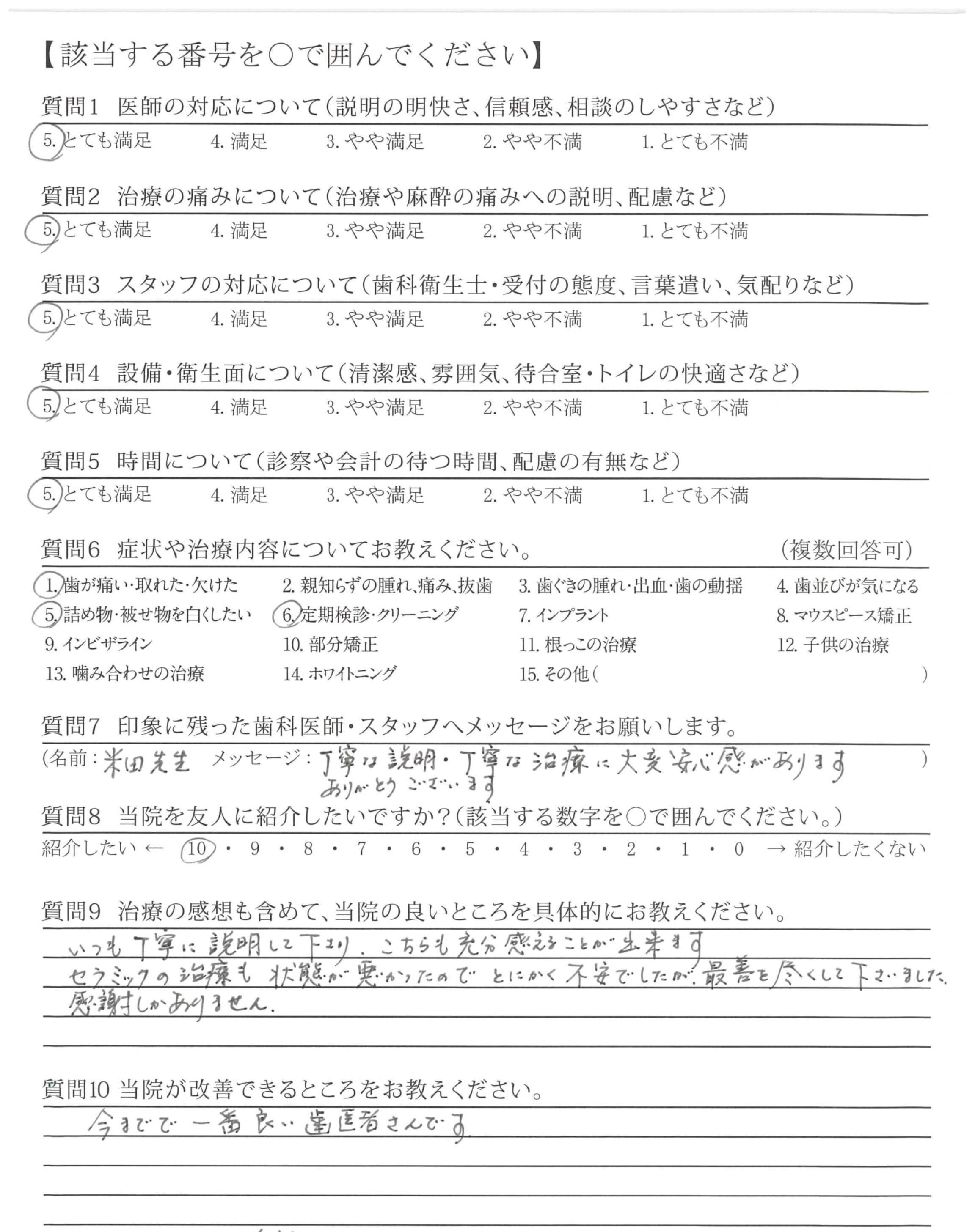 セラミックの治療も状態が悪かったのでとにかく不安でしたが、最善を尽くして下さいました。