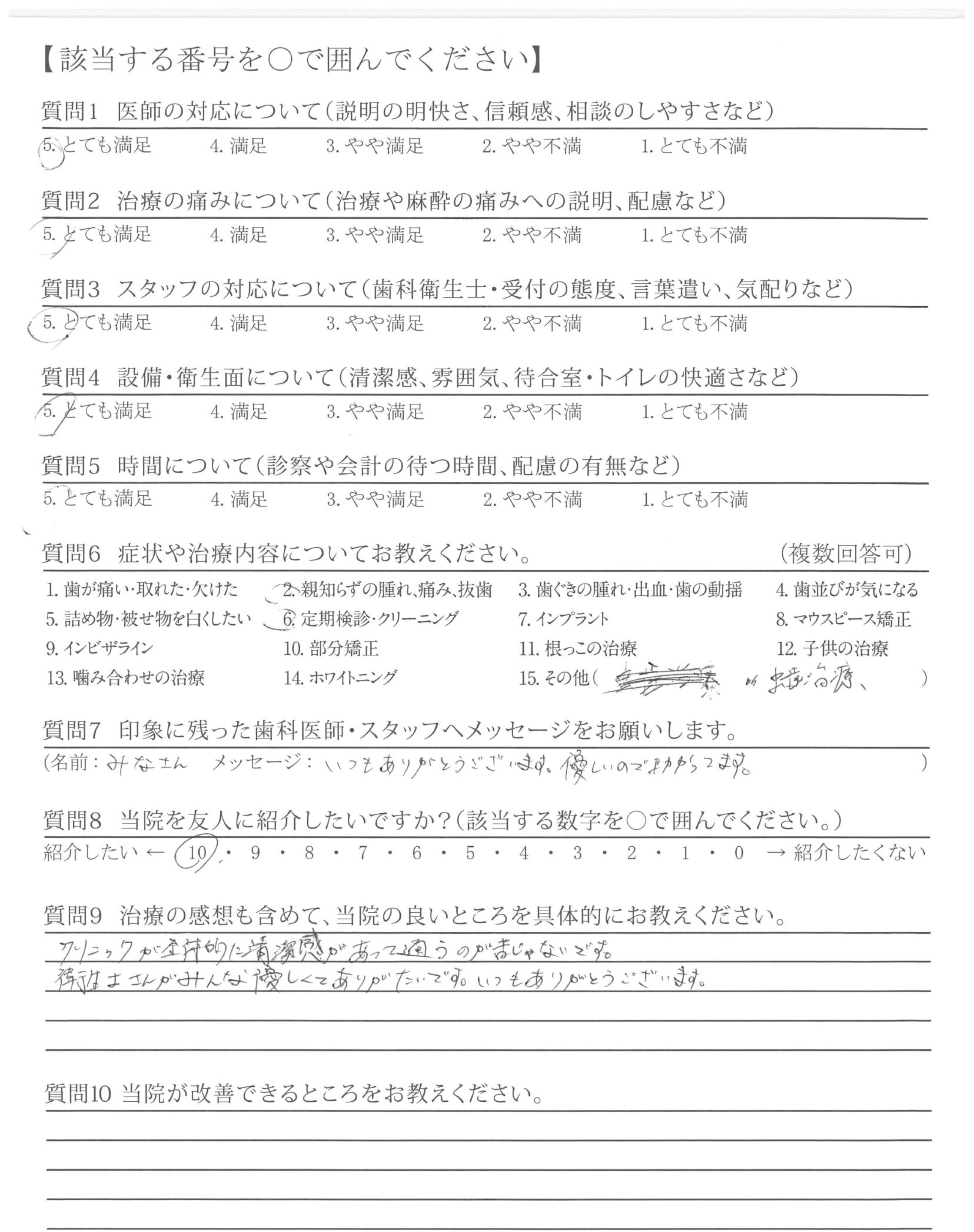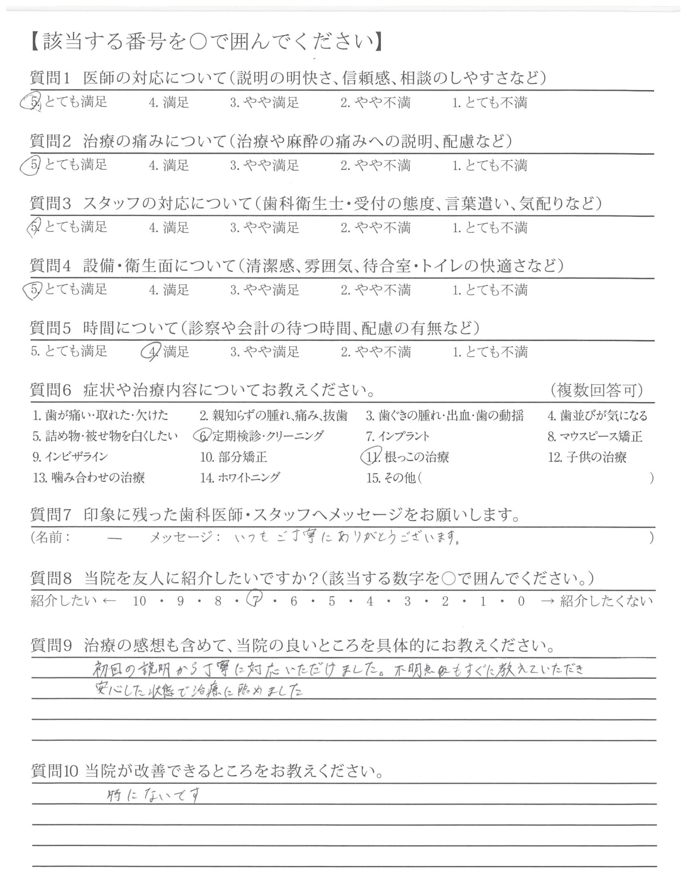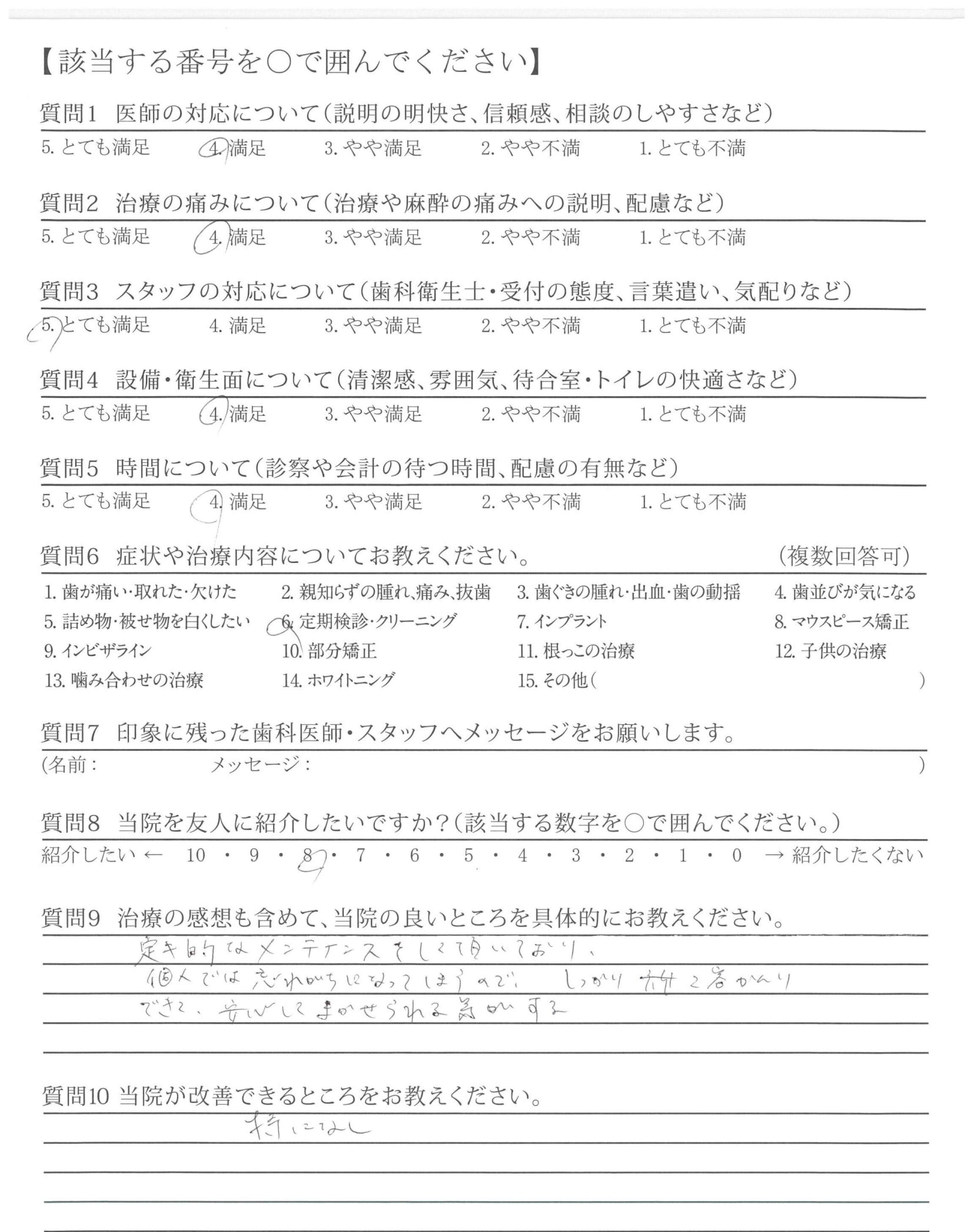 →具体的に分かりやすく説明していただいている為、納得して治療をまかせてもらってます。