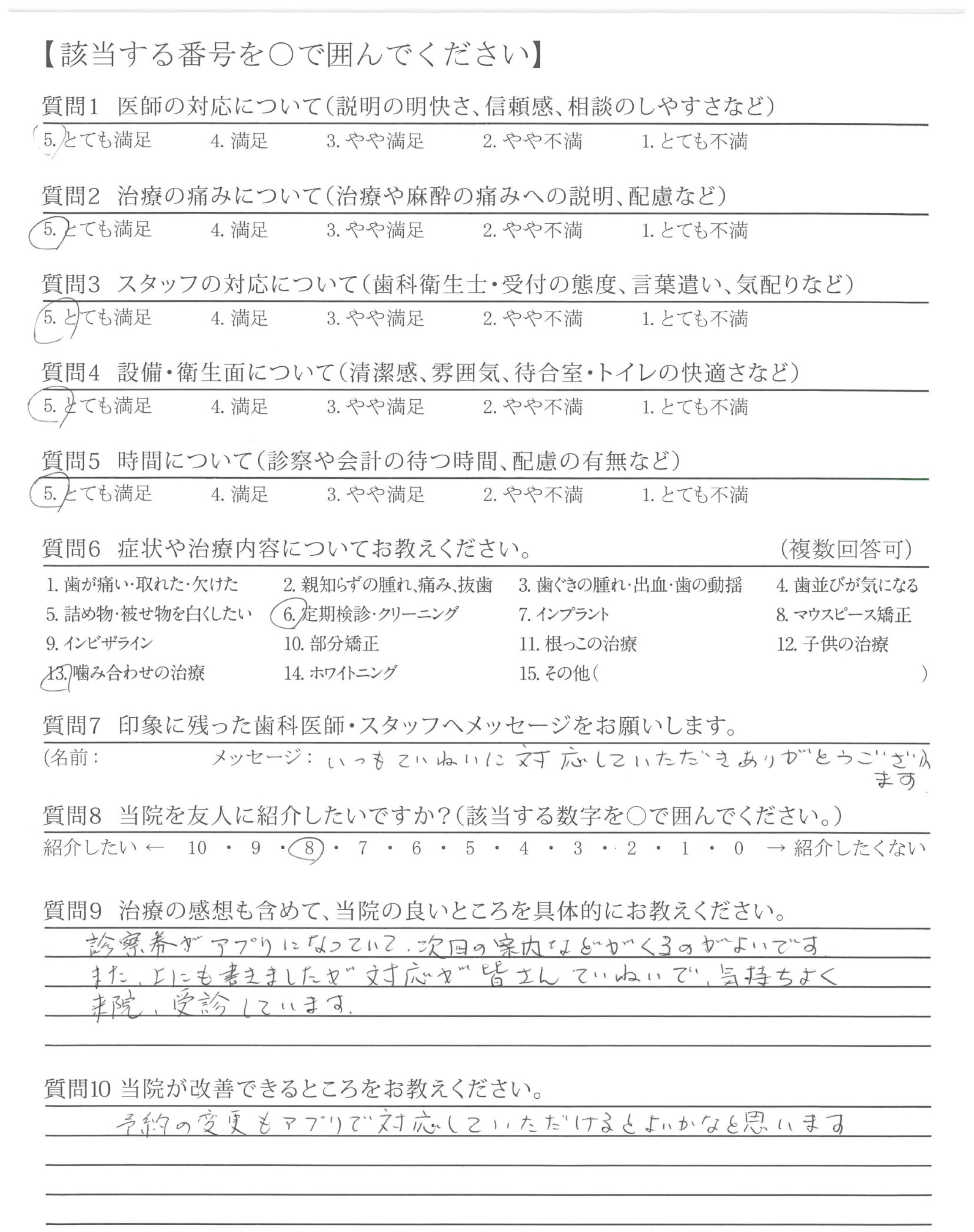 診察券がアプリになっていて、次回の案内などがくるのがよいです。また、「ひとこと」にも書きましたが対応が皆さんていねいで、気持ちよく来院、受診しています。