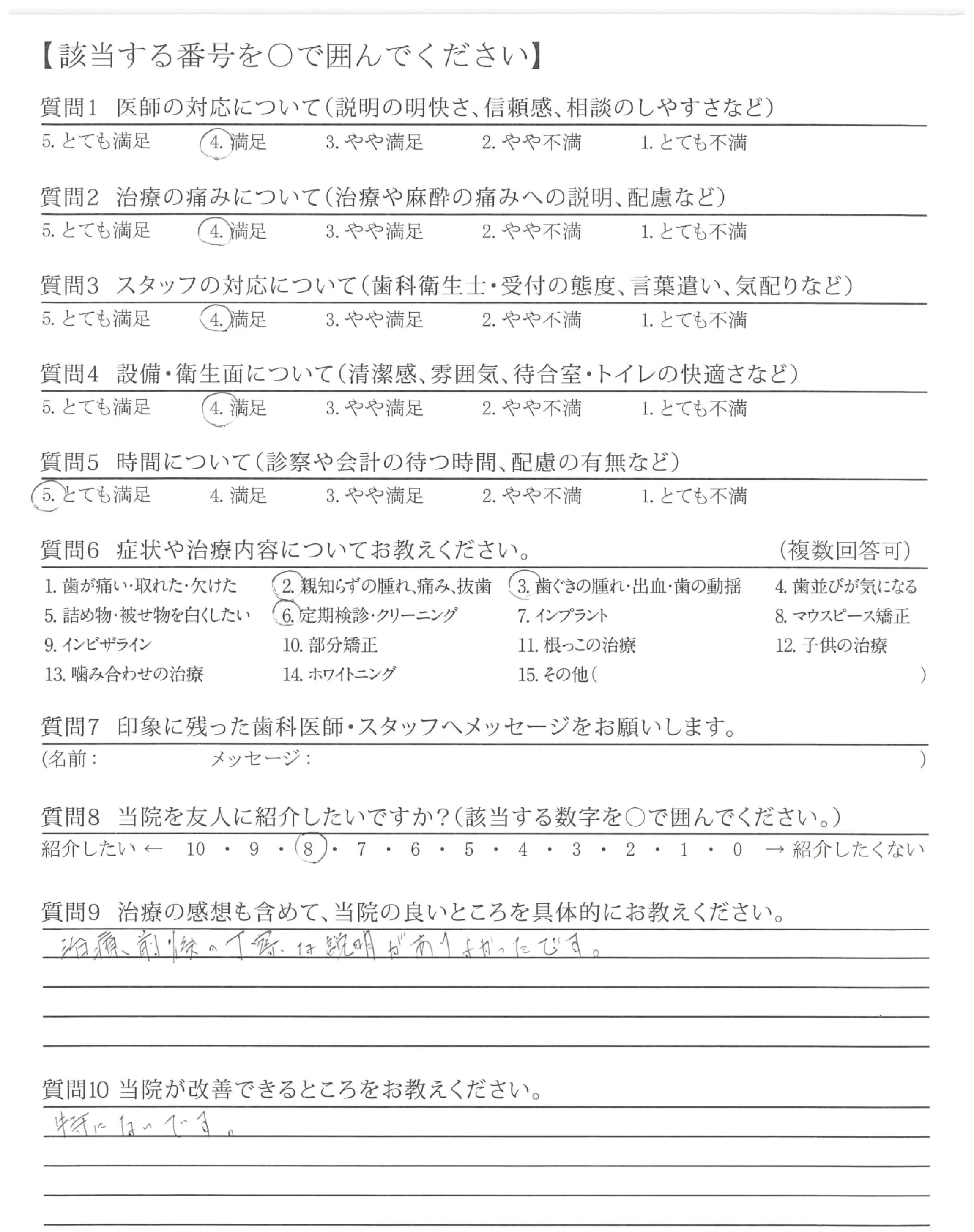 | 歯科医師の対応 | ![]() ![]() ![]() ![]() 4.65 |