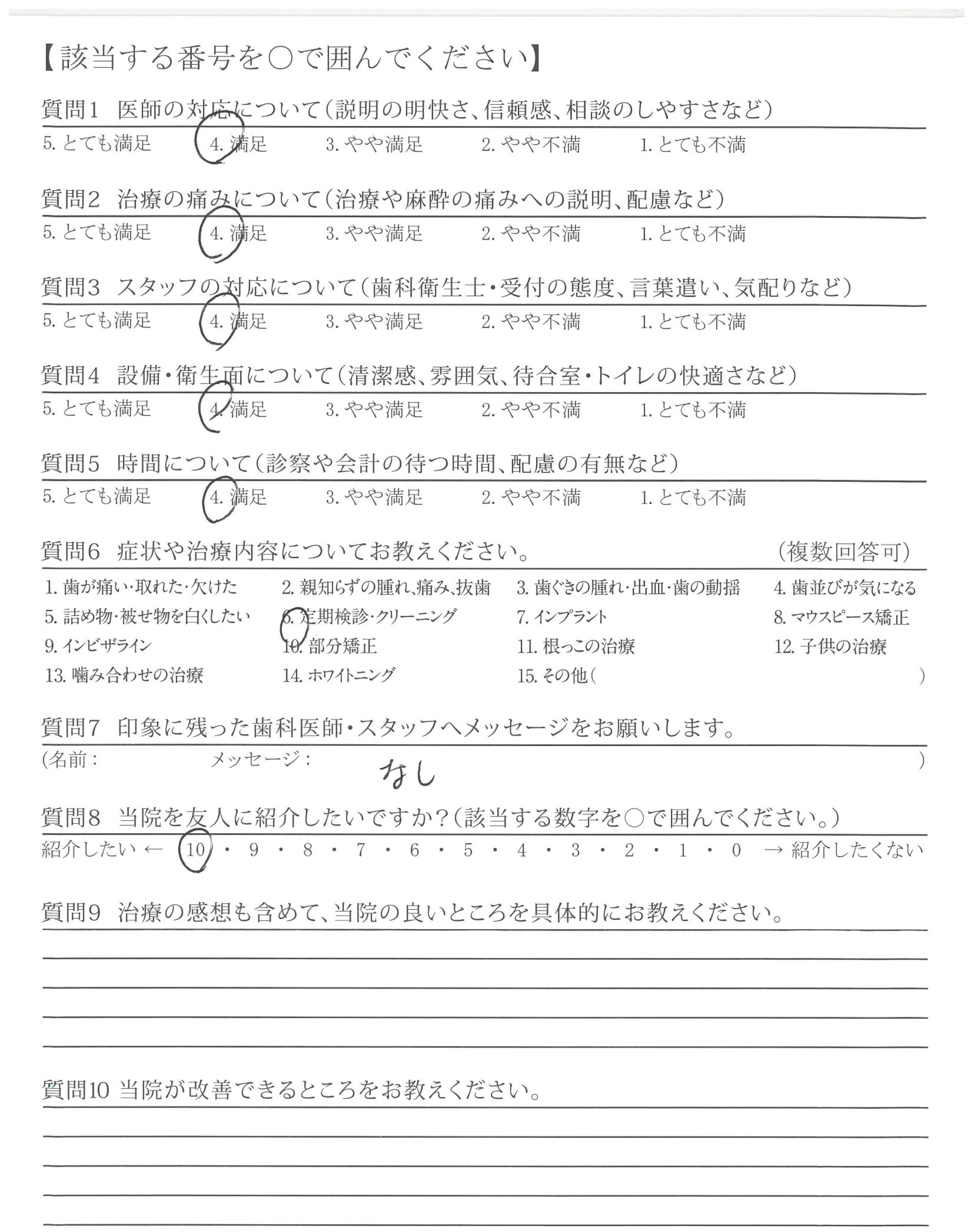 | 歯科医師の対応 | ![]() ![]() ![]() ![]() 4.46 |