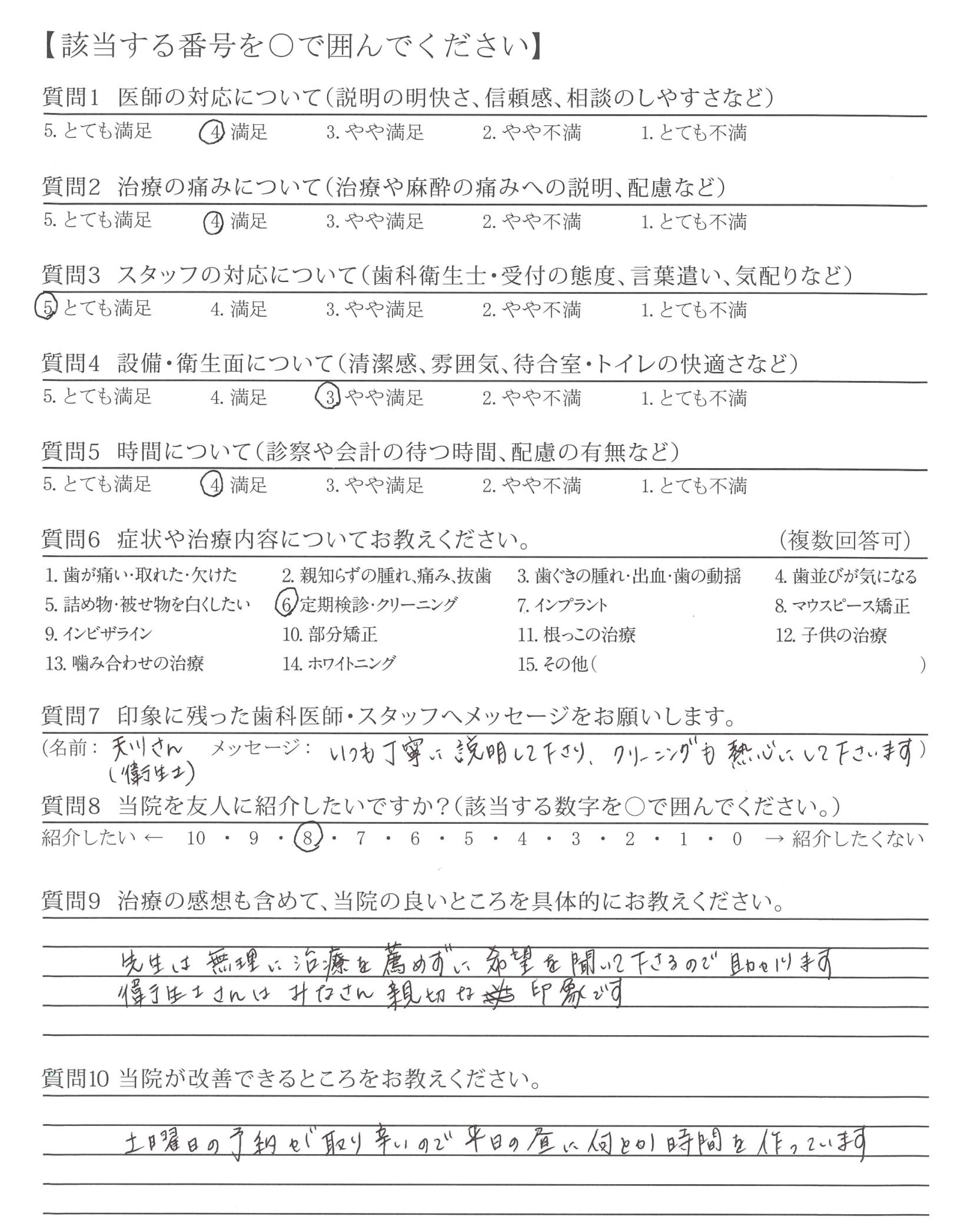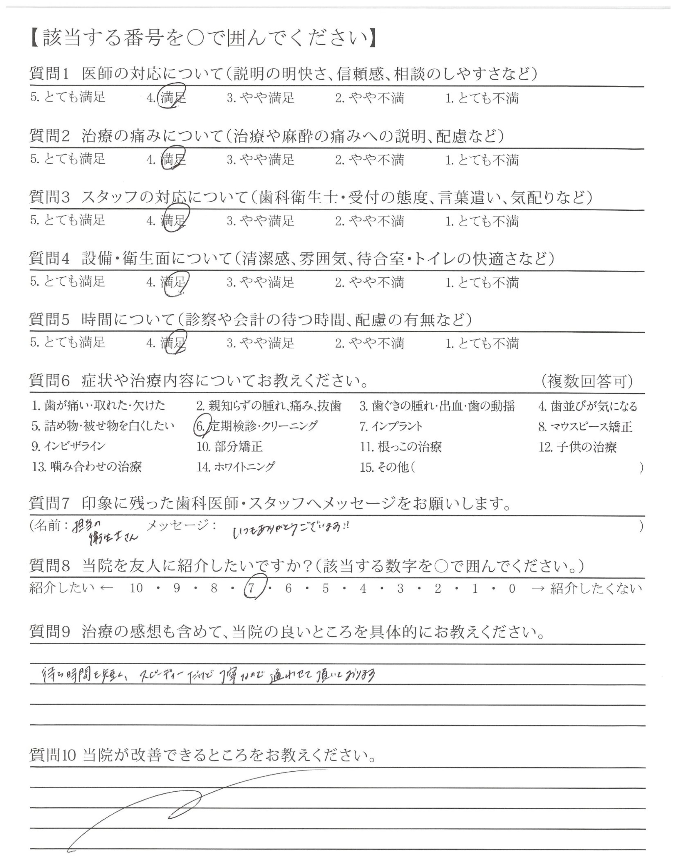 いつも丁寧に説明して下さり、クリーニングも熱心にして下さいます