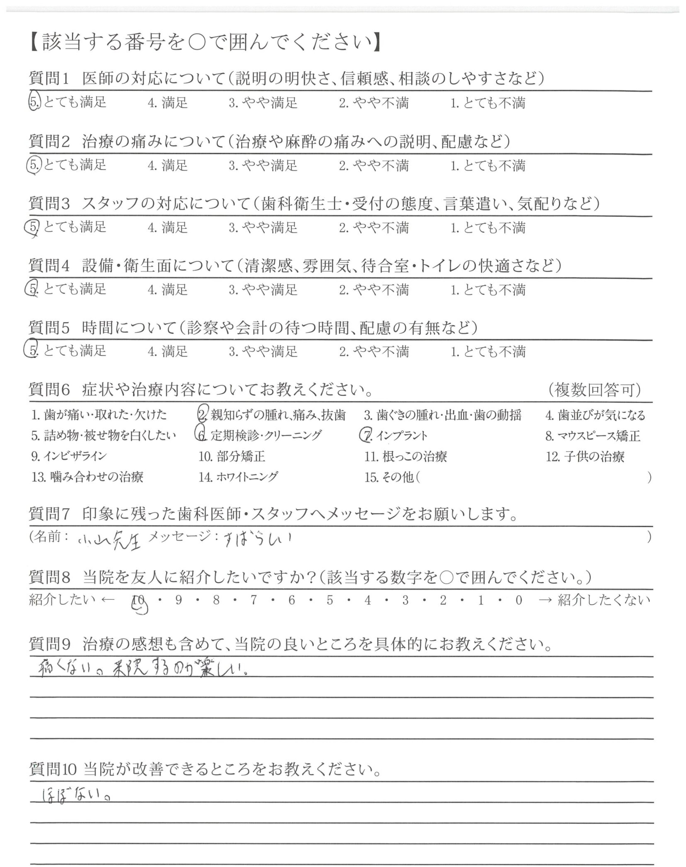 以前、歯の治療で痛みを感じるトラウマがあることを伝えたところ、丁寧に話を聴いてくださり全く痛くなく、本当に助かっています。また、待ち時間も少なく、ありがたいです。
