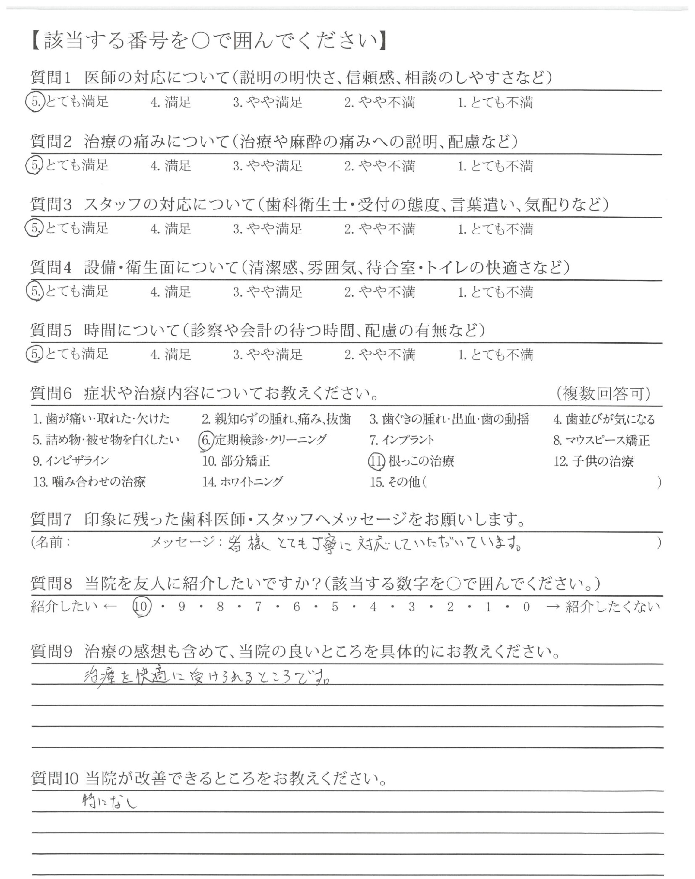過度な治療ではなく適切な治療をして下さり感謝しています。(銀歯も必要以上にとったりせず現状大丈夫なところはそのままにして下さいます)