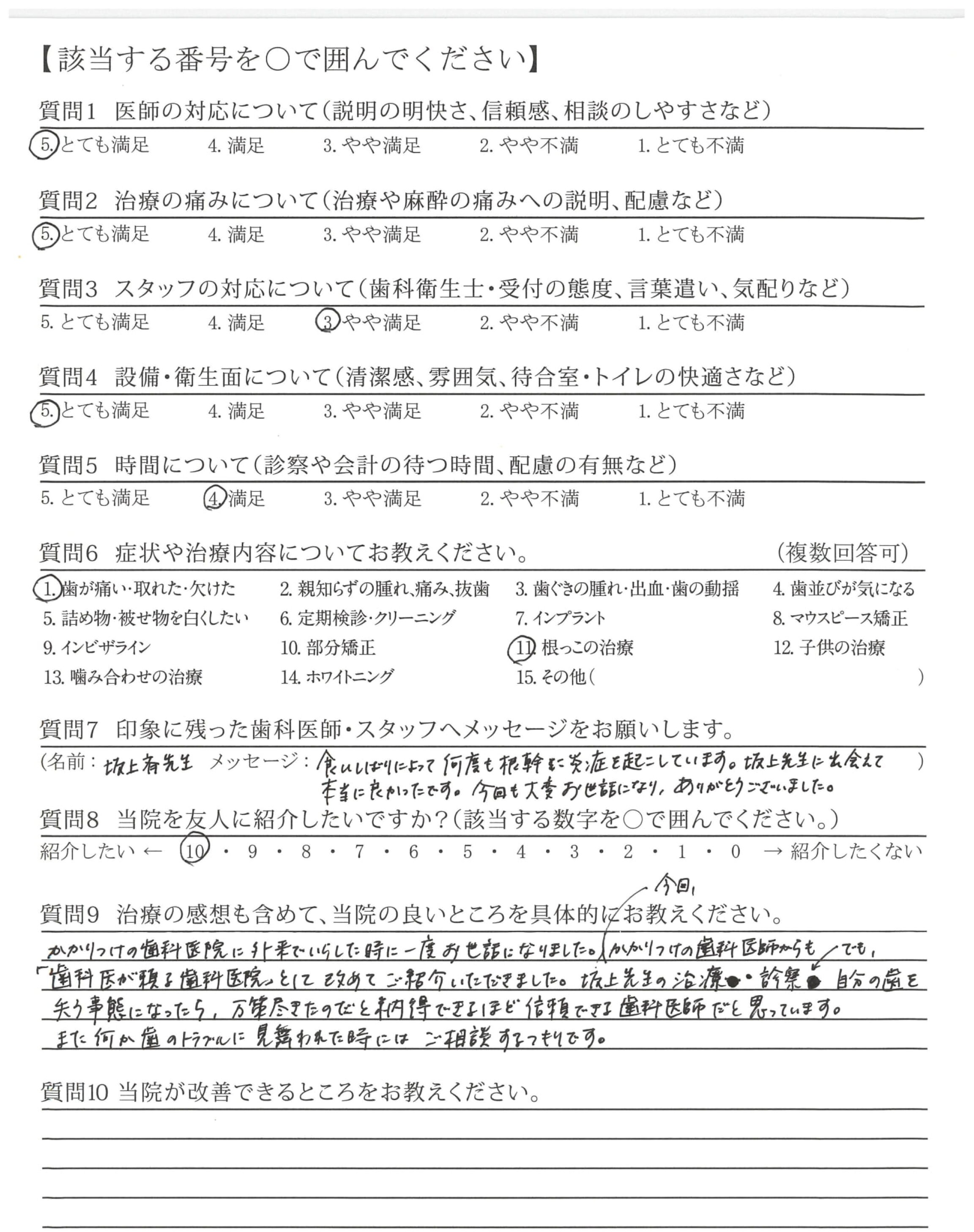 今回、坂上先生の治療、診察でも、自分の歯を失う事態になったら、万策尽きたのだと納得できるほど信頼できる歯科医師だと思っています。