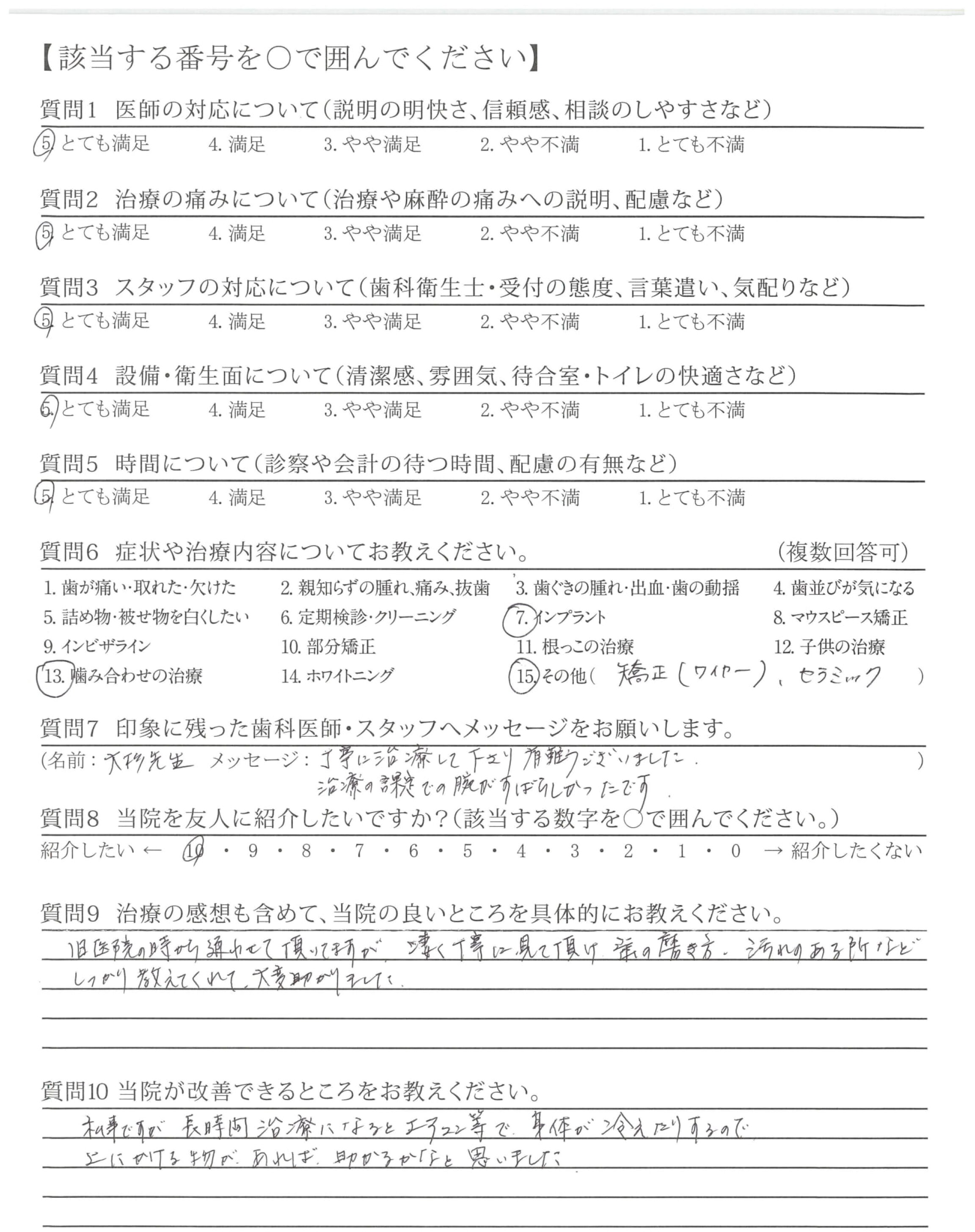 丁寧に治療して下さり有難うございました。治療の課定での腕がすばらしかったです。