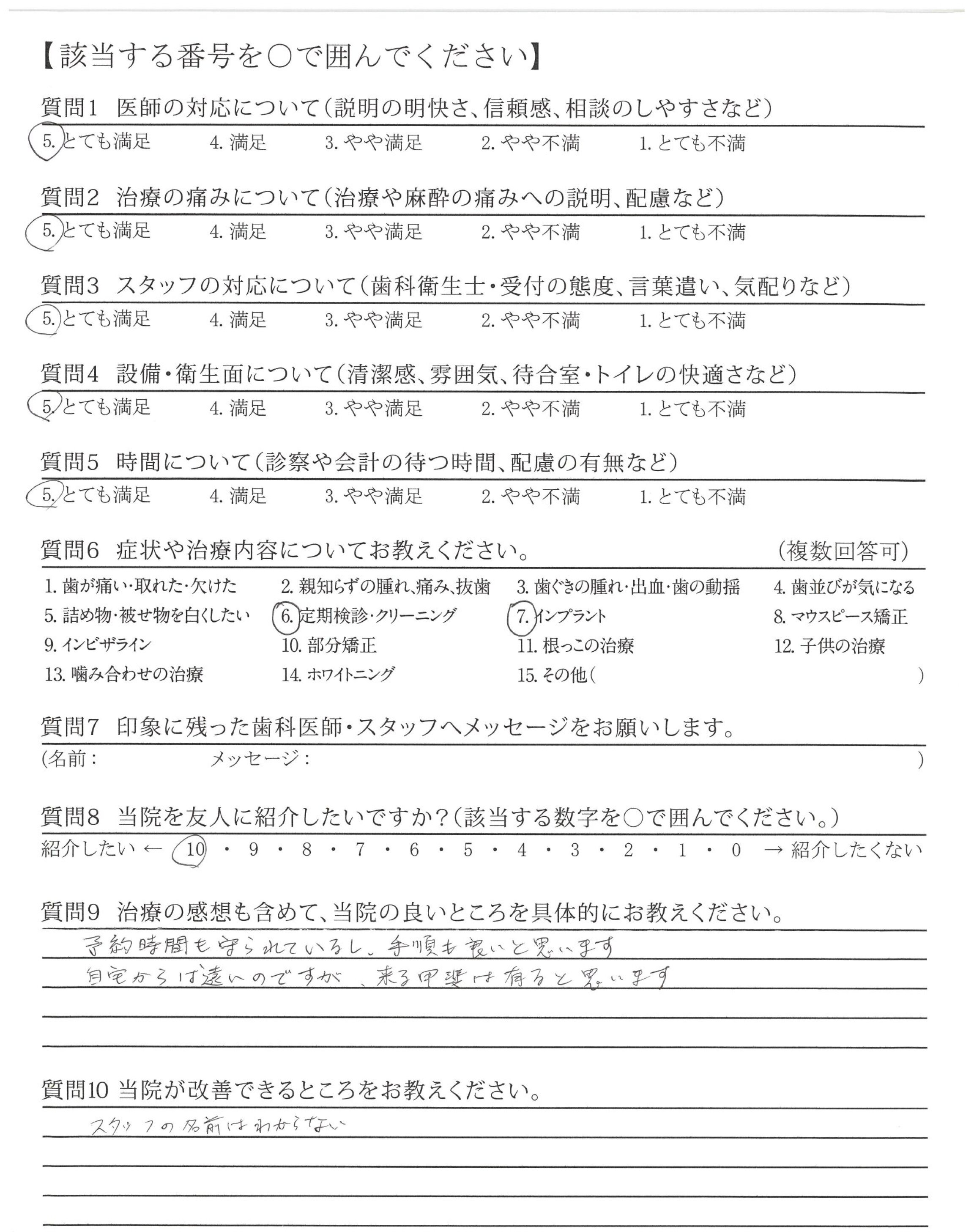 スタッフの皆さん全員が、感じがよく、安心して治療していただけました。ありがとうございました!