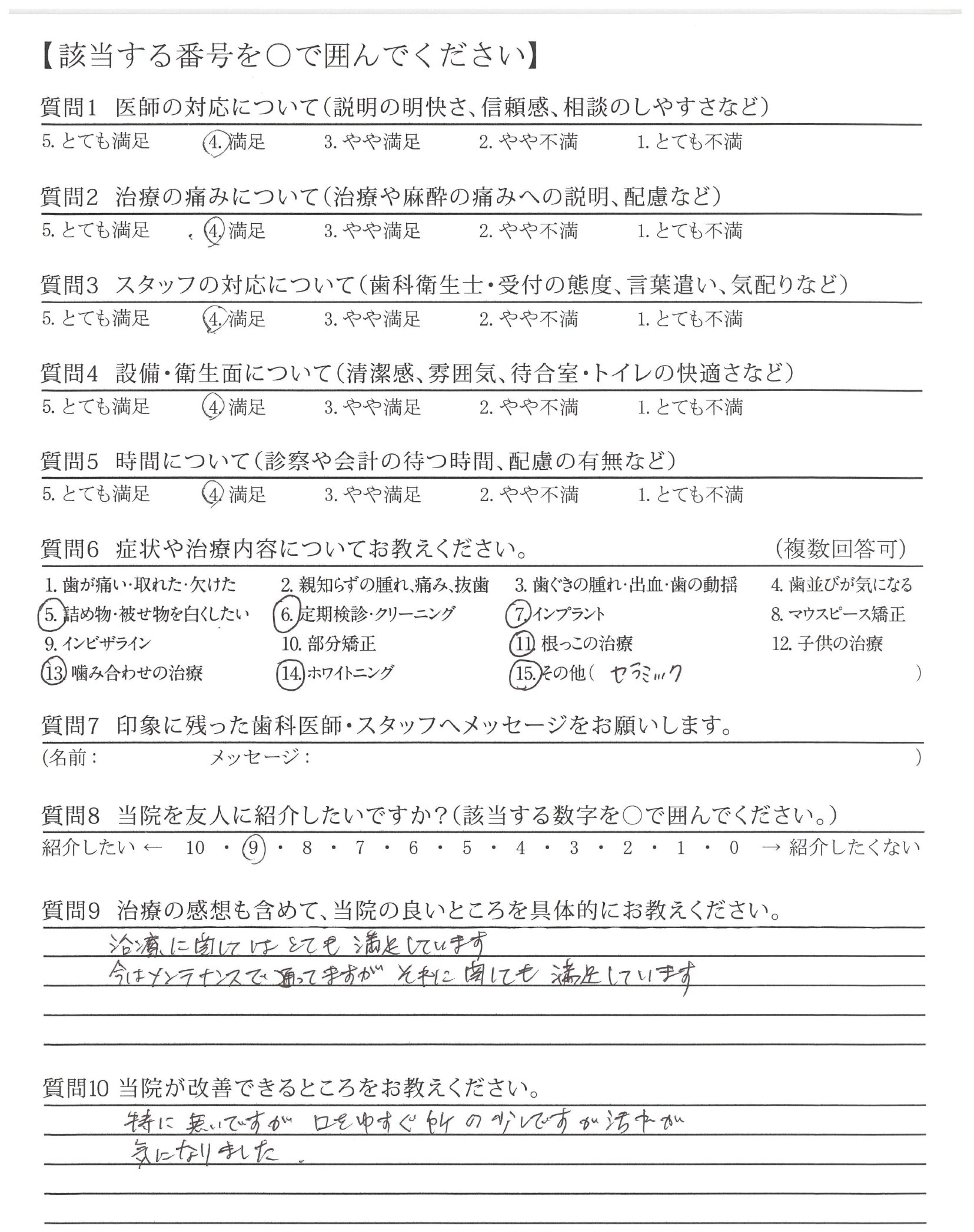 | 歯科医師の対応 | ![]() ![]() ![]() ![]() 4.45 |