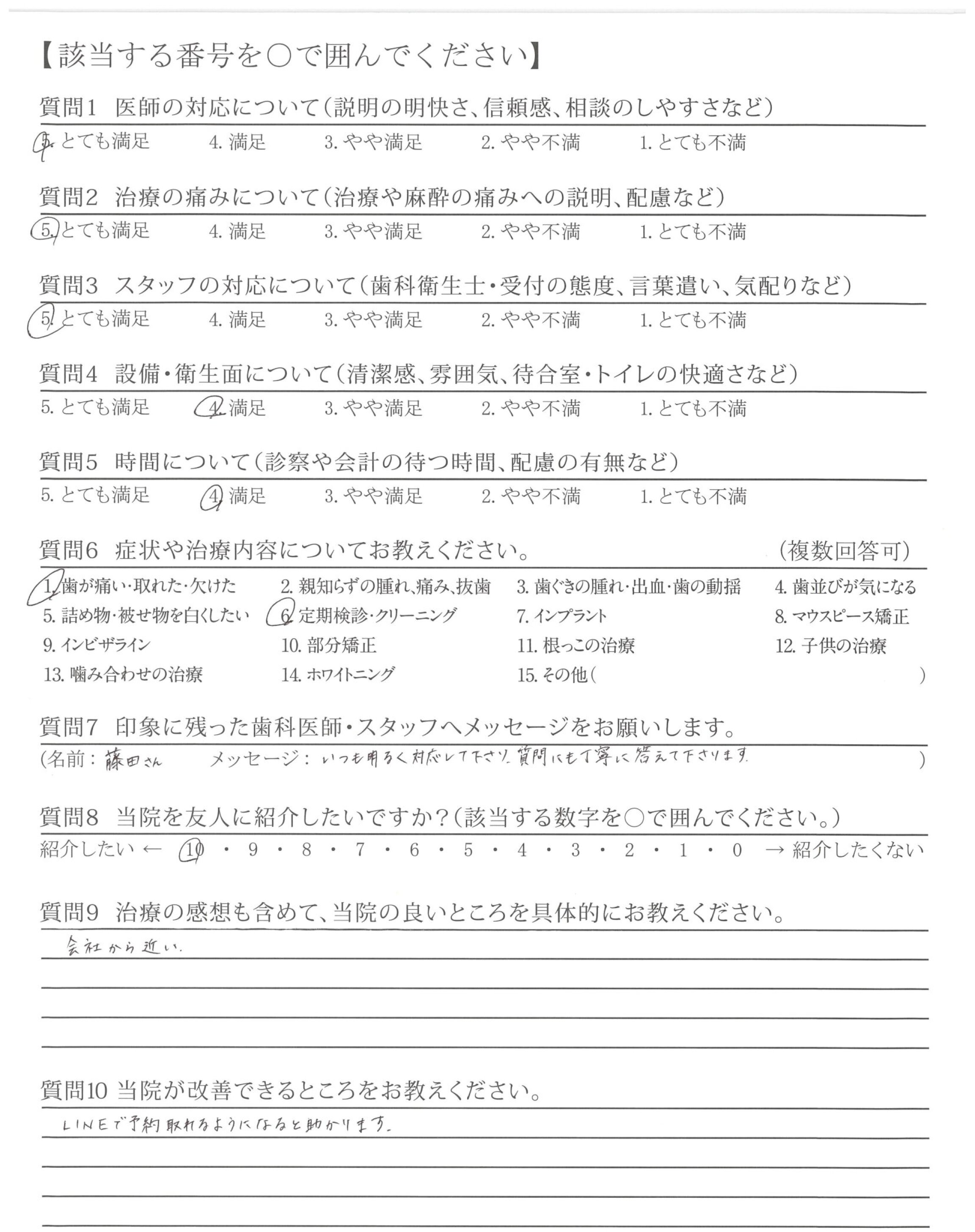 治療していただきありがとうございました。