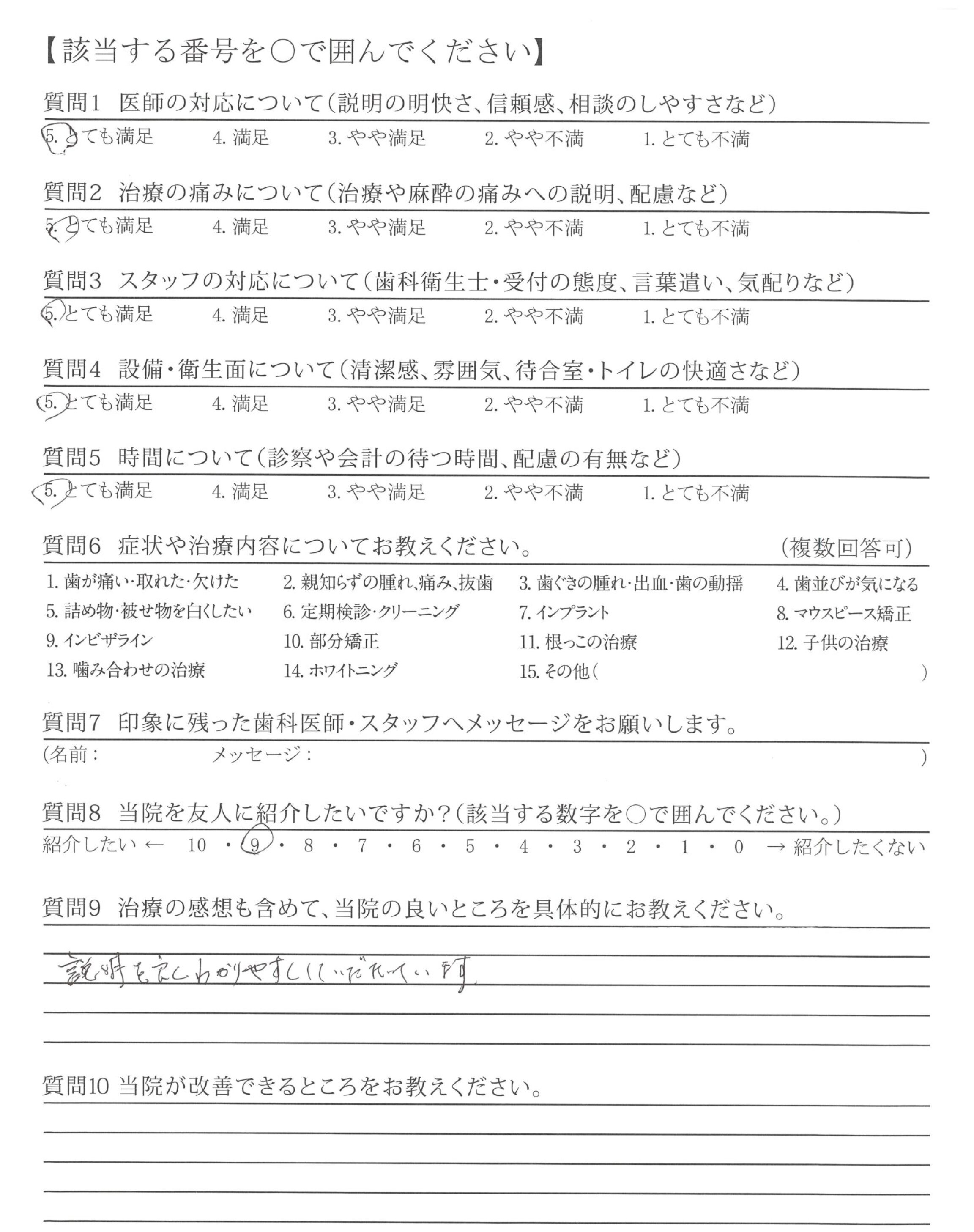 すごく治療が上手で歯医者さんに来るのが楽しみです。