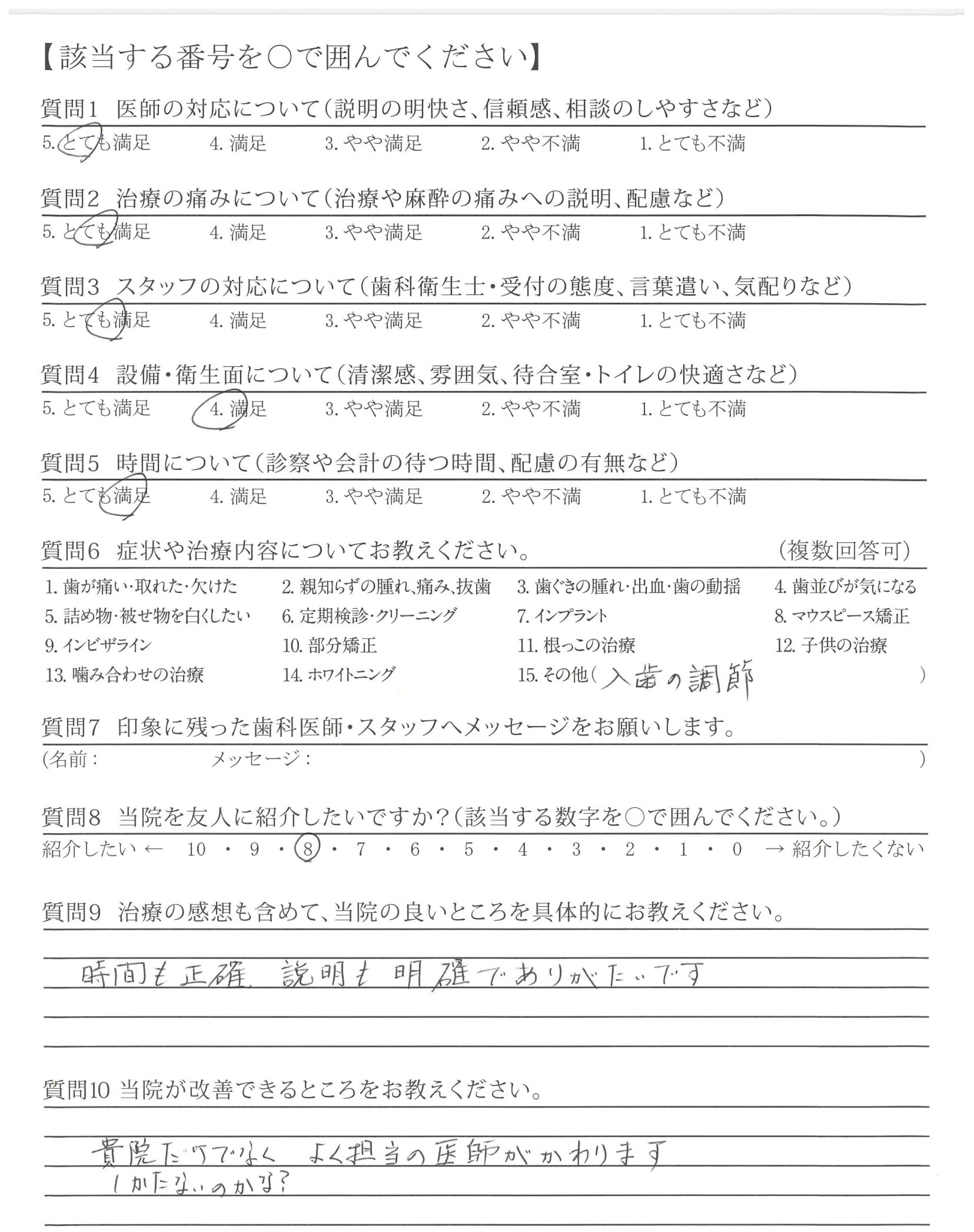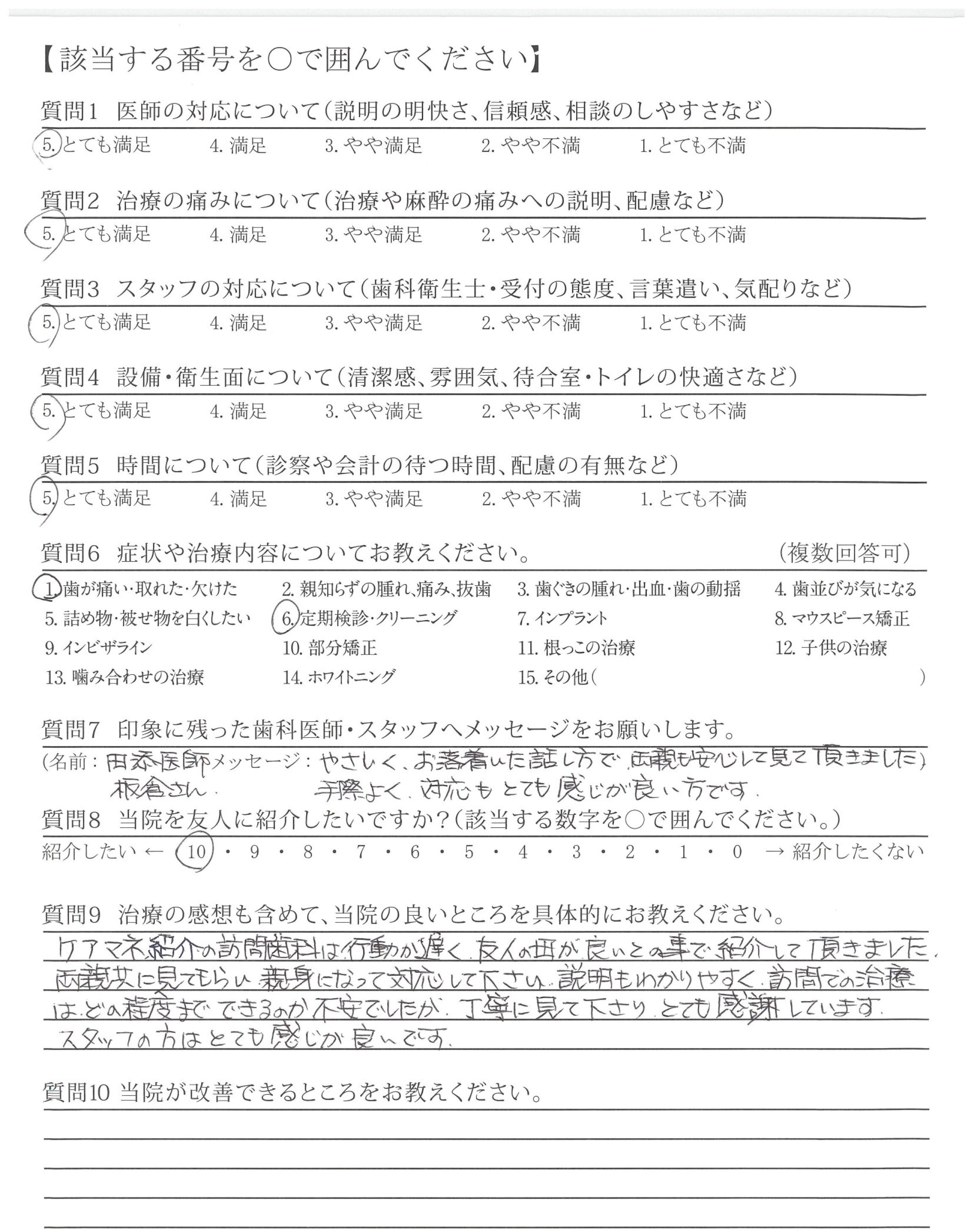 ケアハウスに居て歯をなおし頂ことありがとうございました。次回元気で居られたら又お願い頂します。