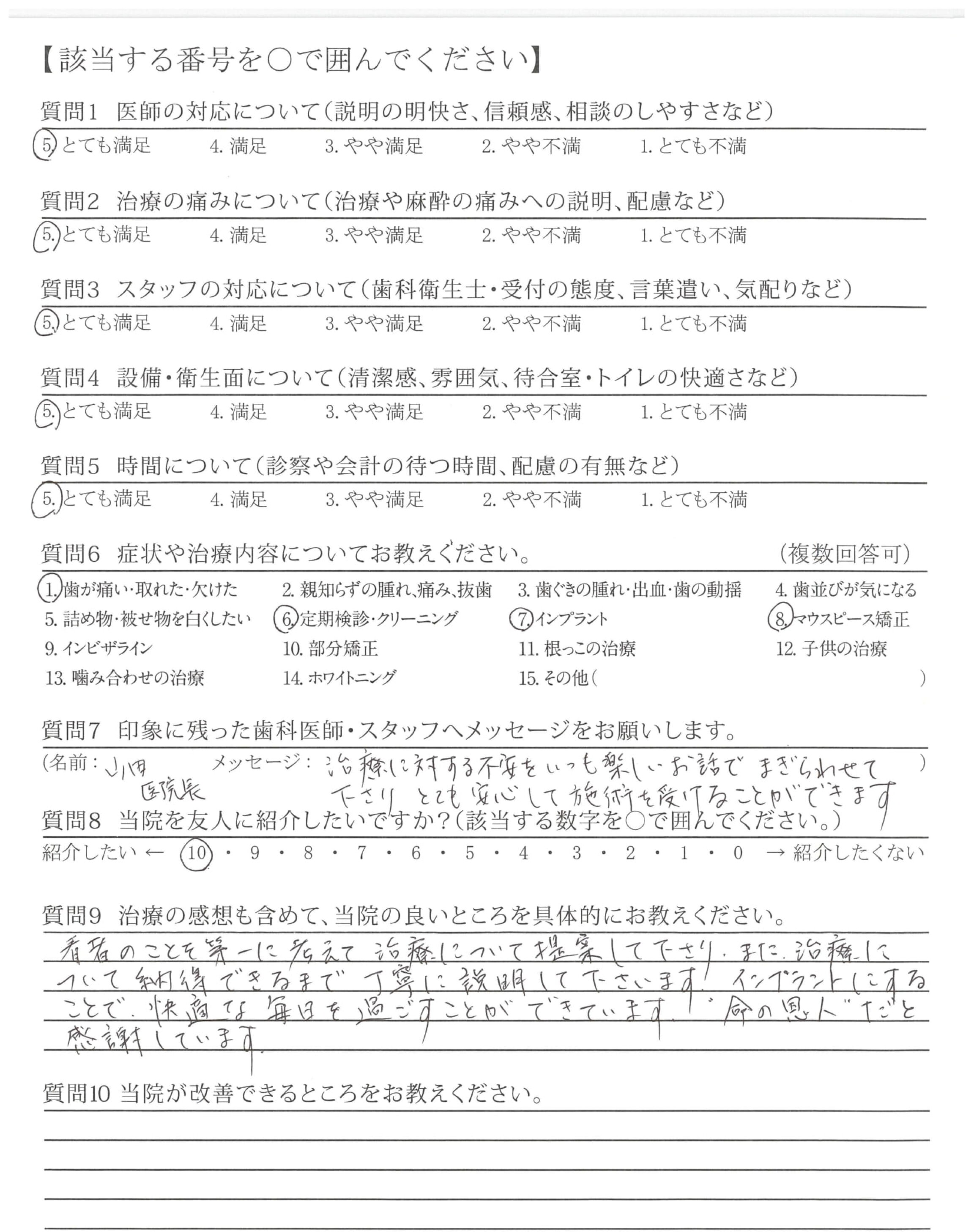 インプラントにすることで、快適な毎日を過ごすことができています。