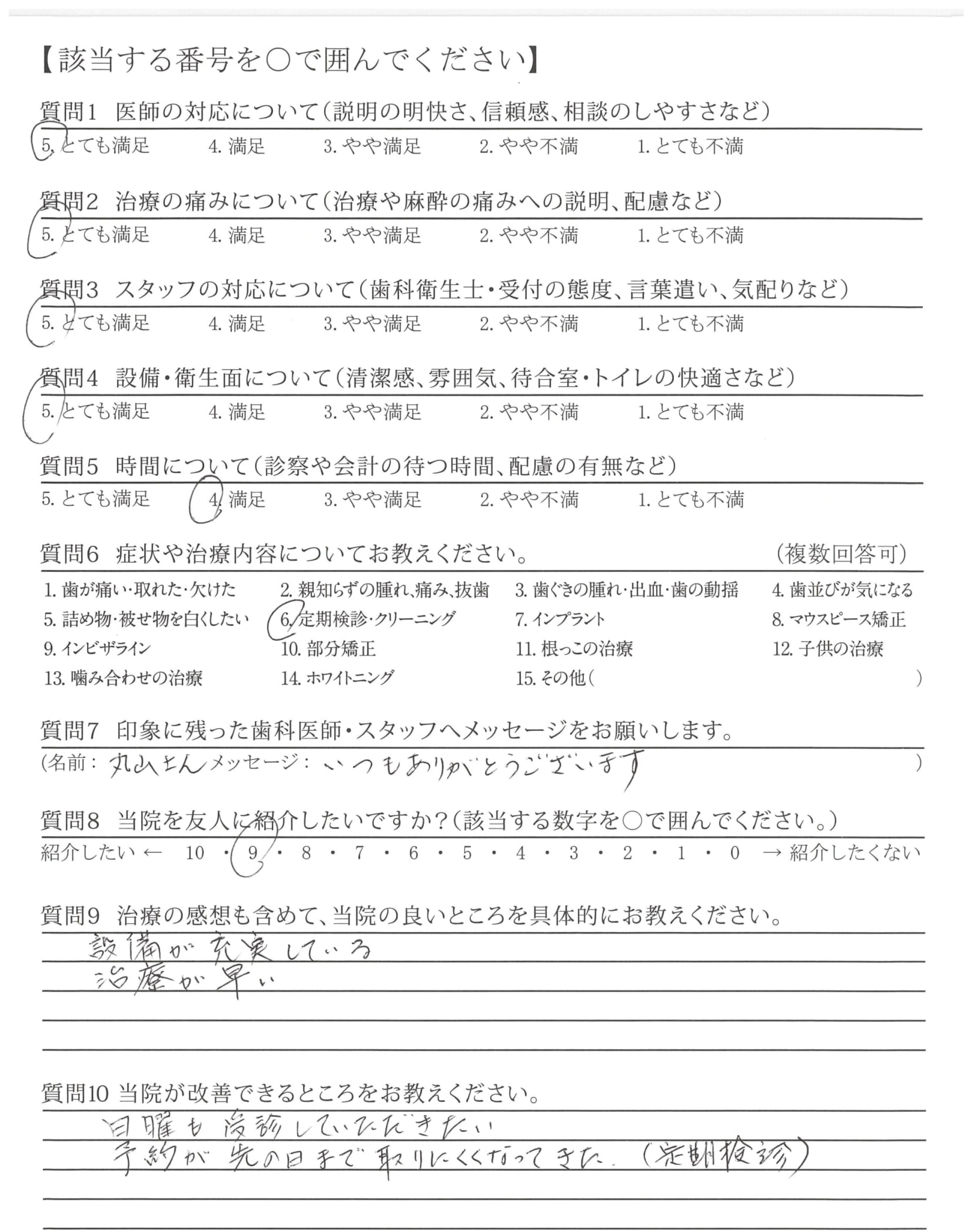 治療も確実に治して下さるので、歯の不安がなくなりました。
