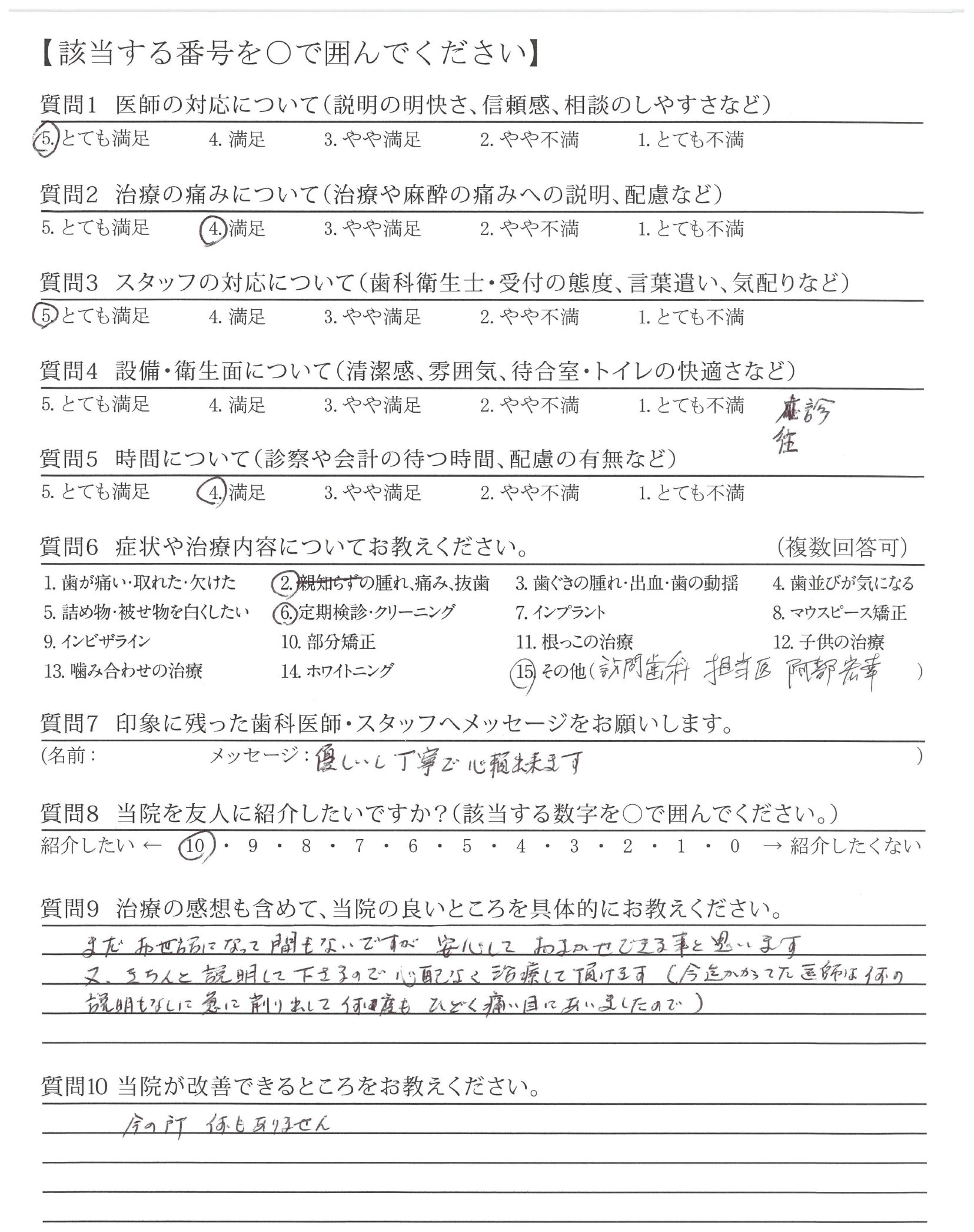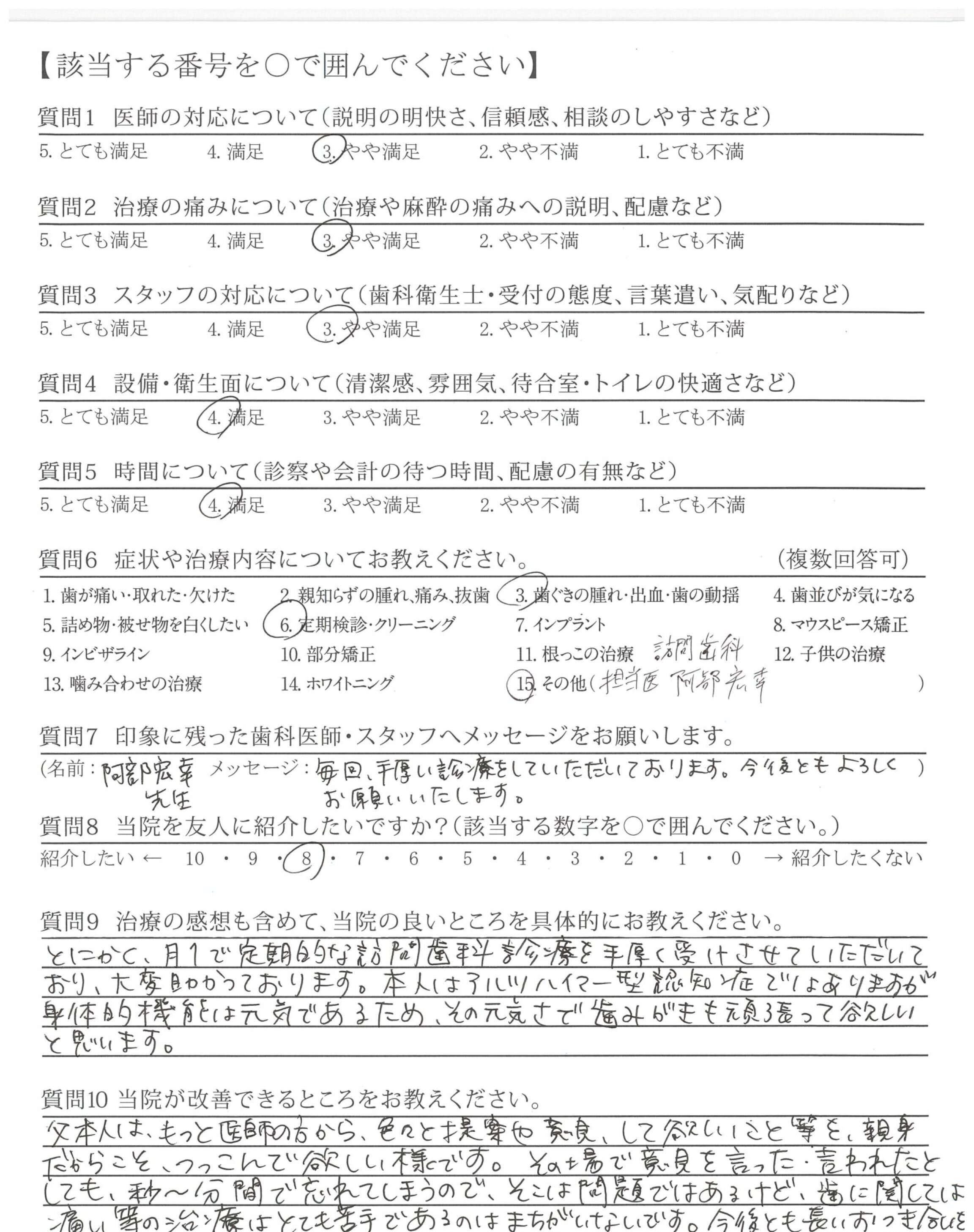 訪問歯科に変更し家族の私たちも楽になり正解でした。これからも宜しくお願いします。