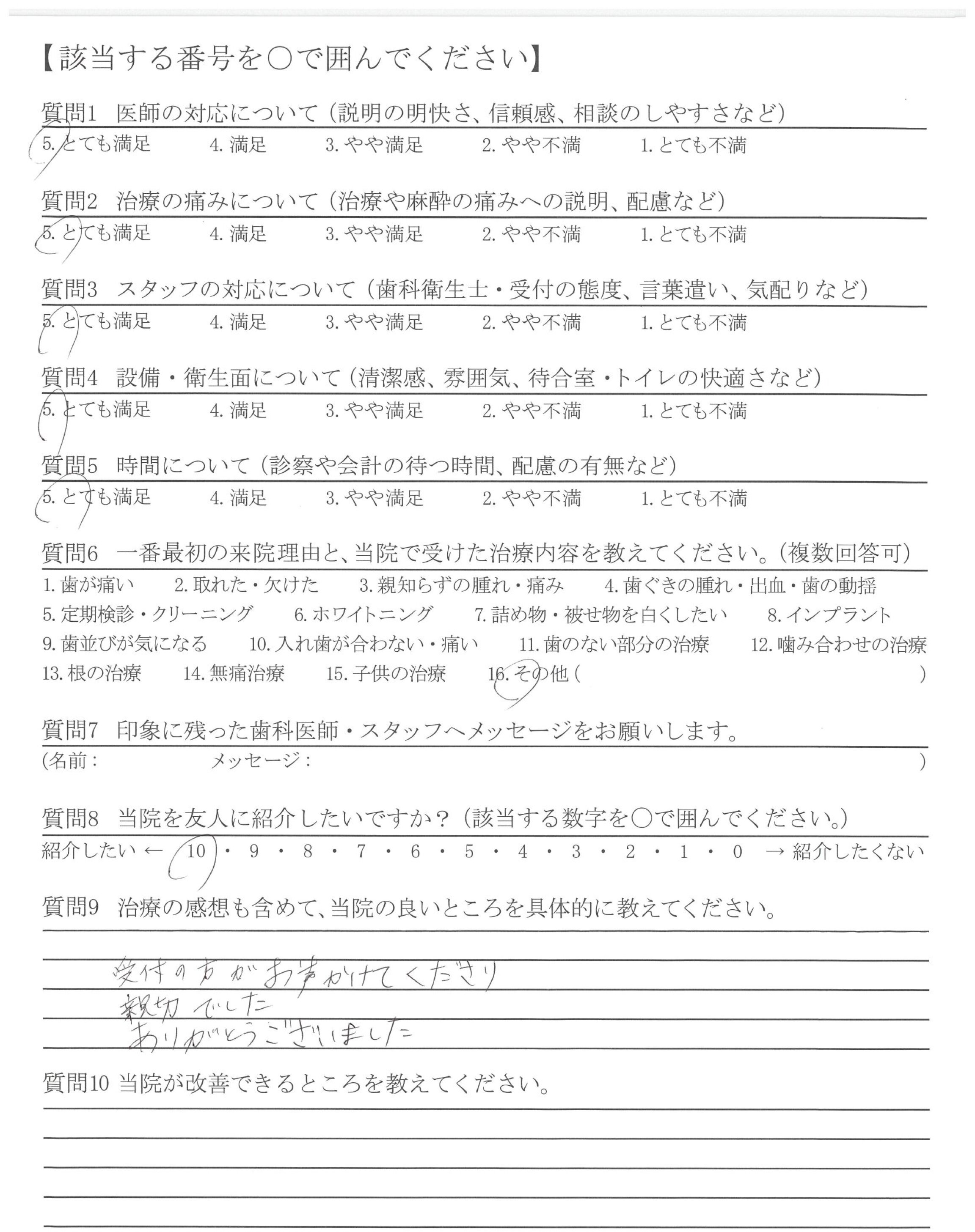 歯科医師、衛生士共、親切な対応で、安心して治療をおまかせできました。