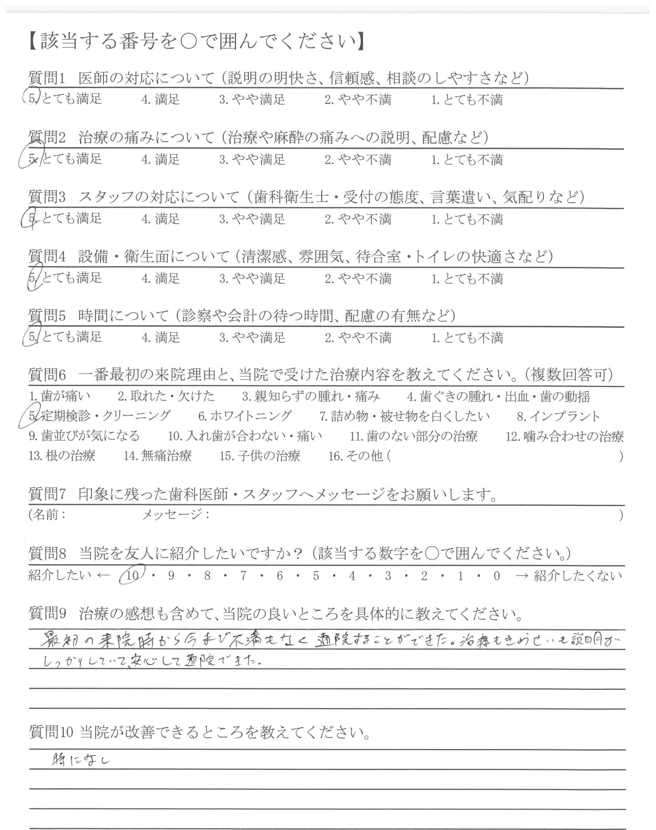 全体の治療を通しても、特別痛みを感じることもなかったので、リラックスして治療していただくことができました。