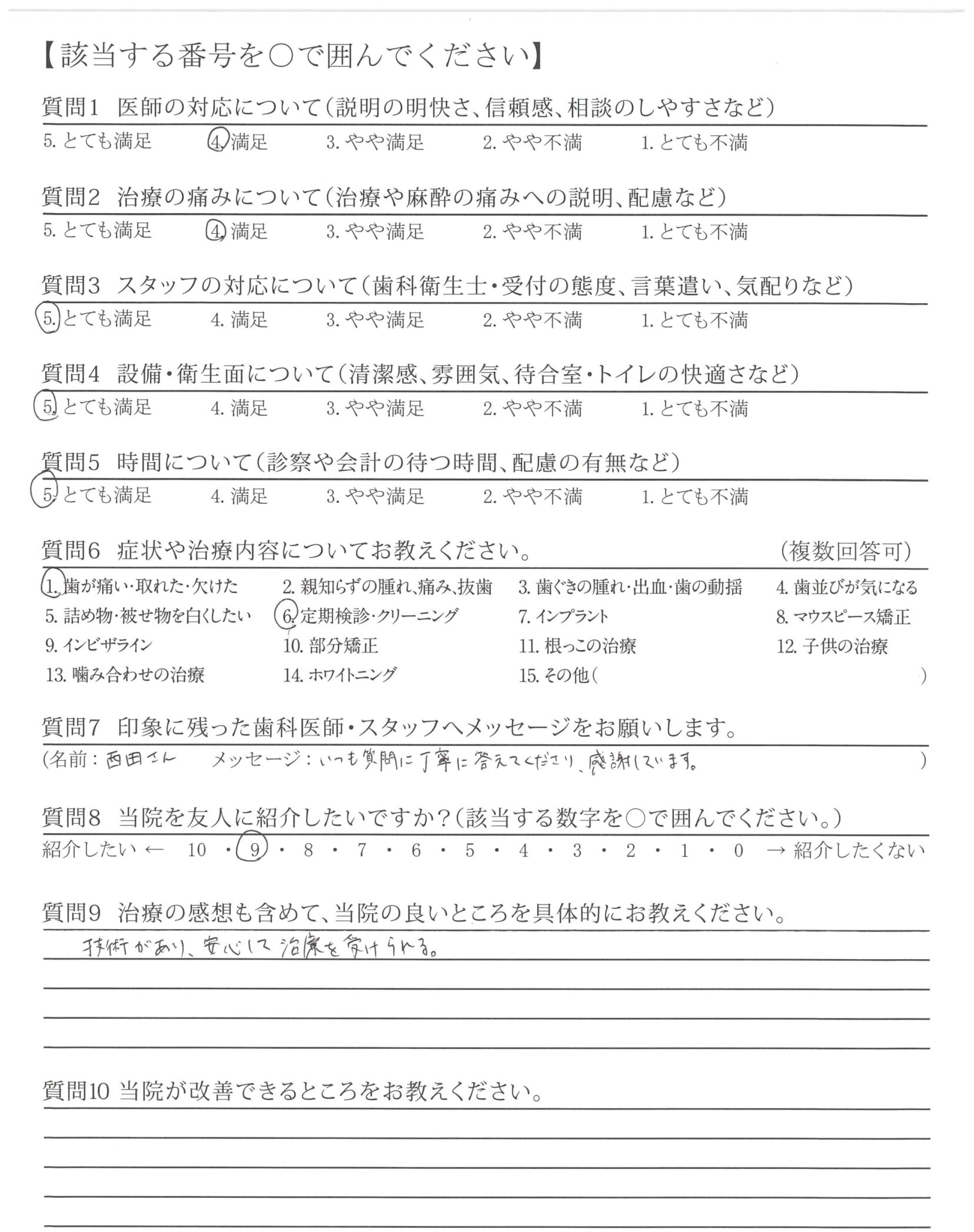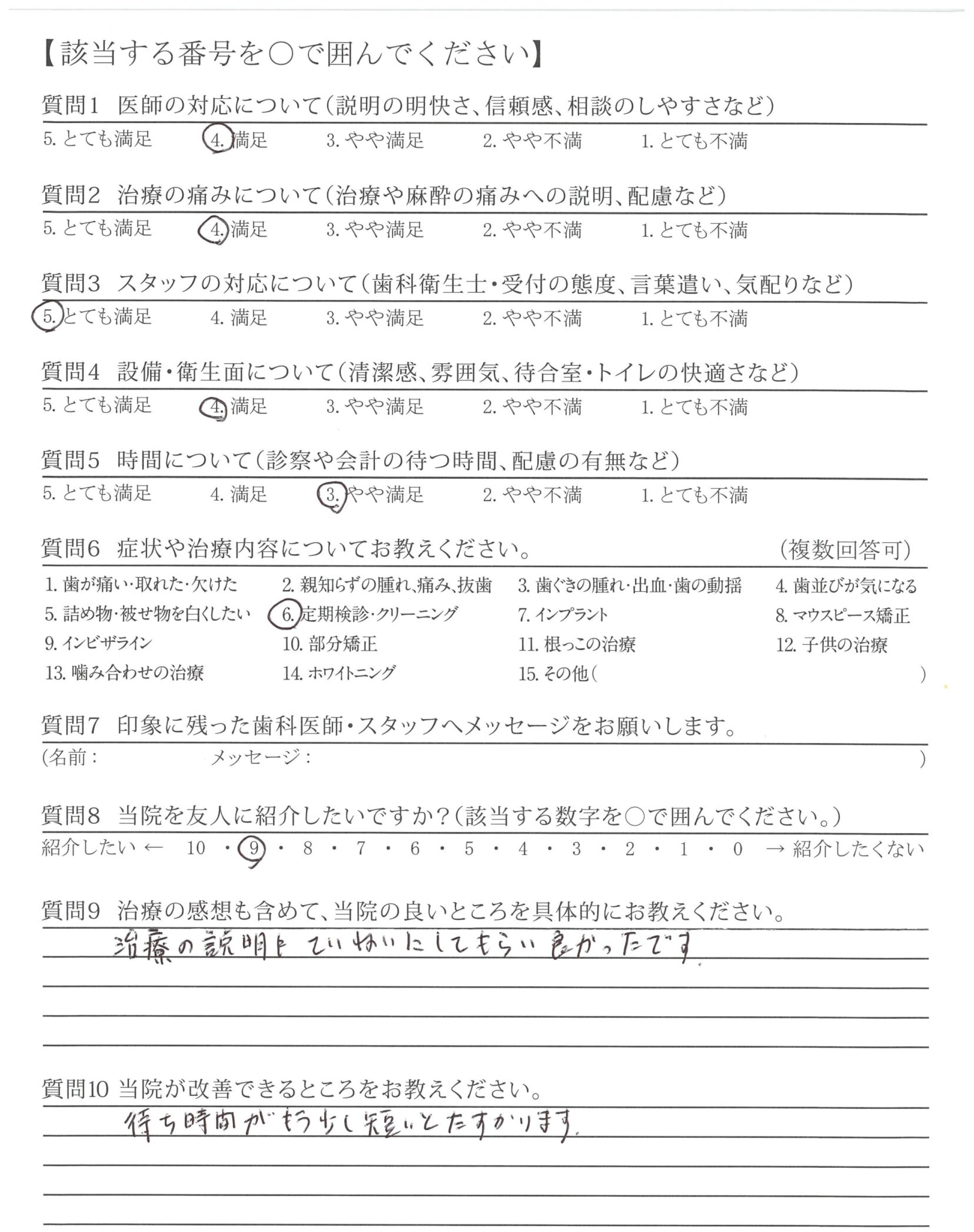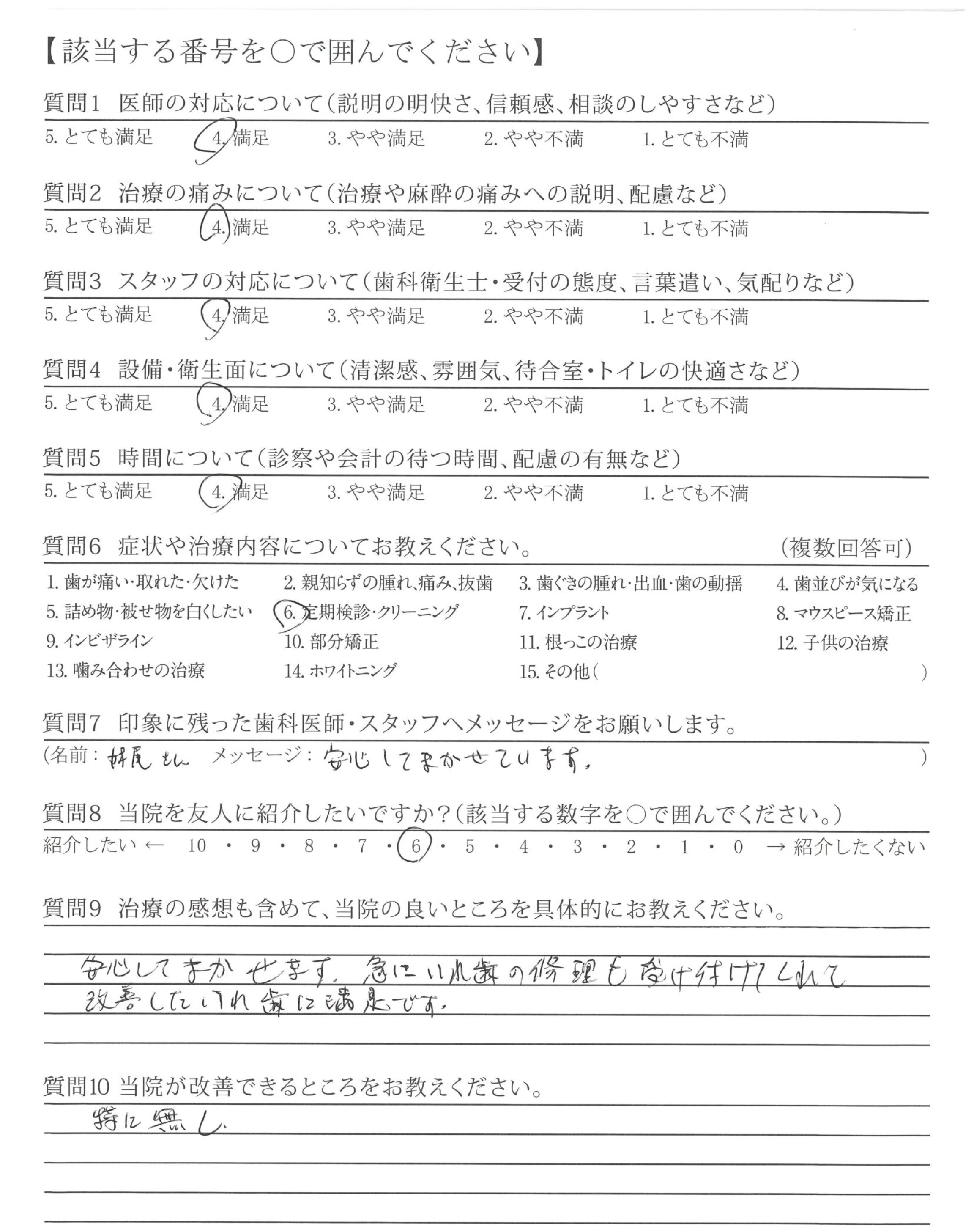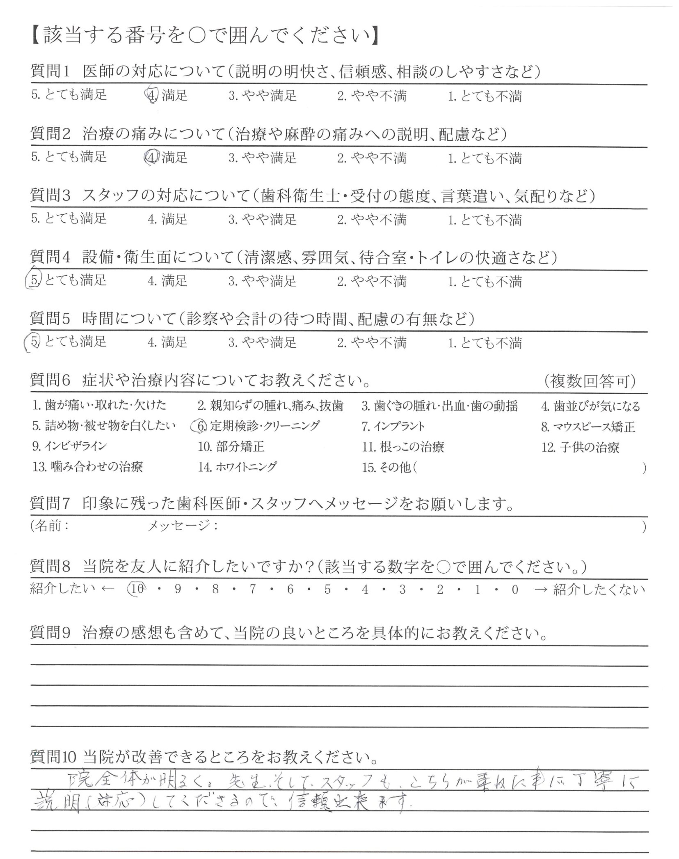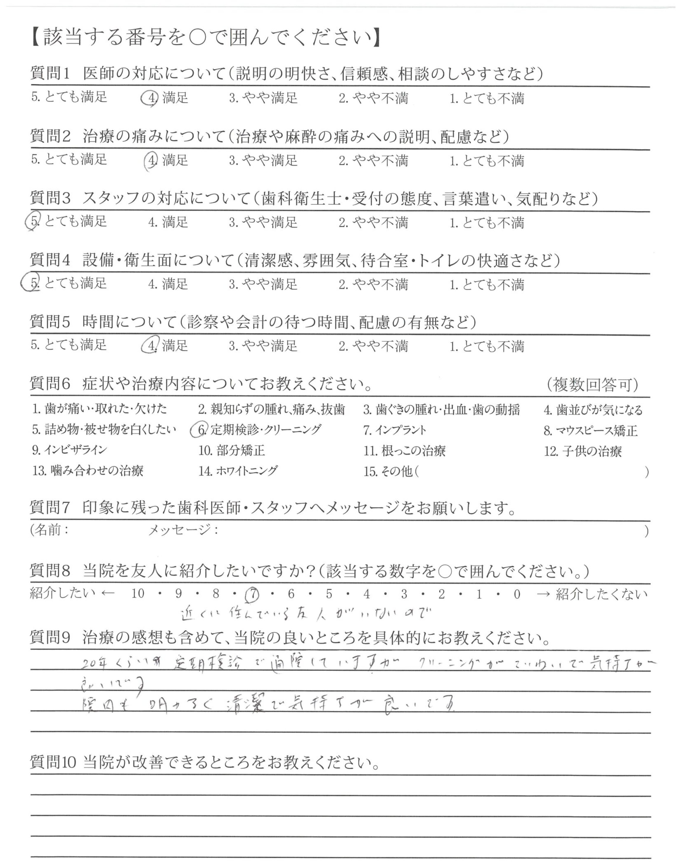 長い間、やさしく丁寧に確実に診療してくださり、ありがとうございます。