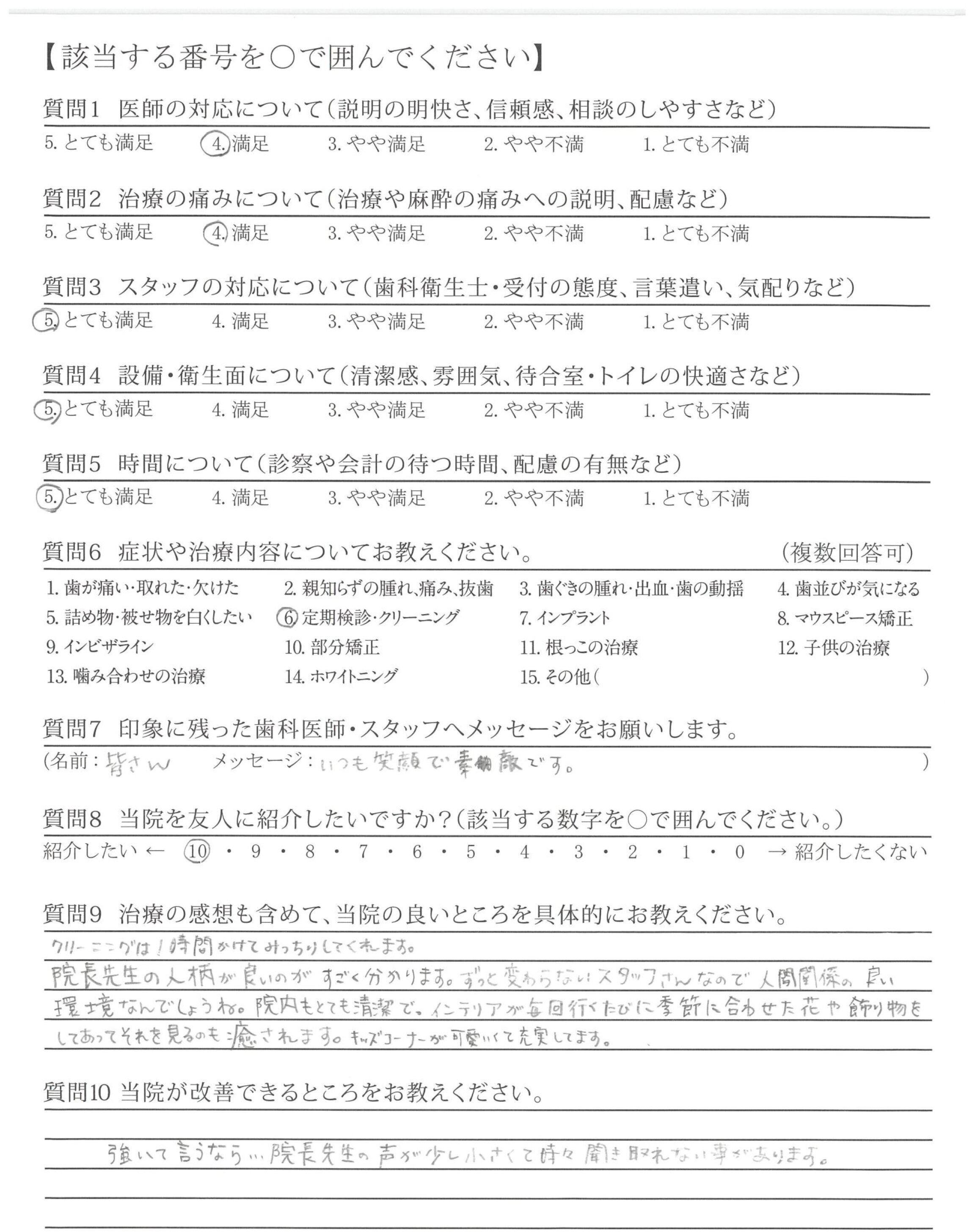 強いて言うなら...院長先生の声が少し小さくて時々聞き取れない事があります。