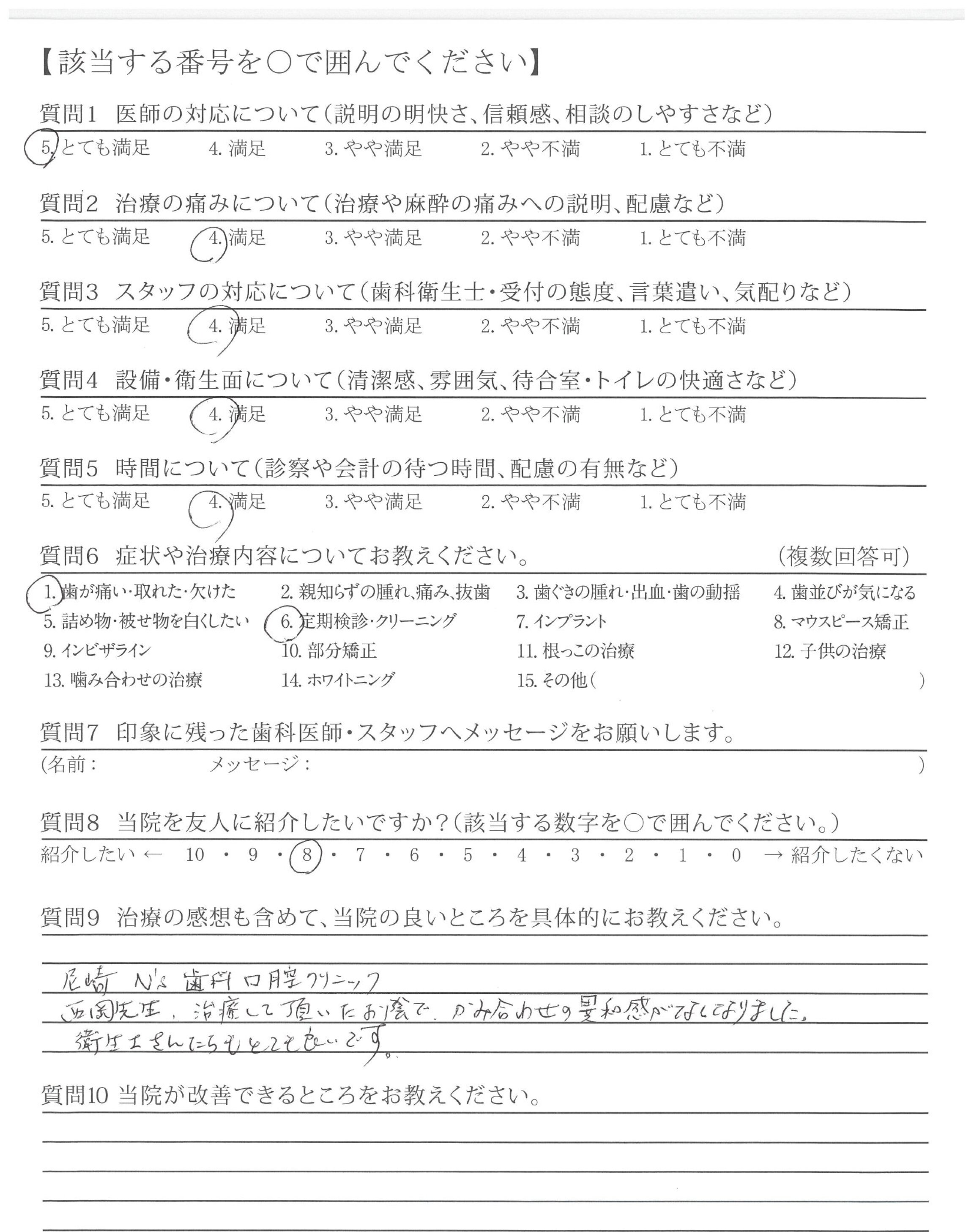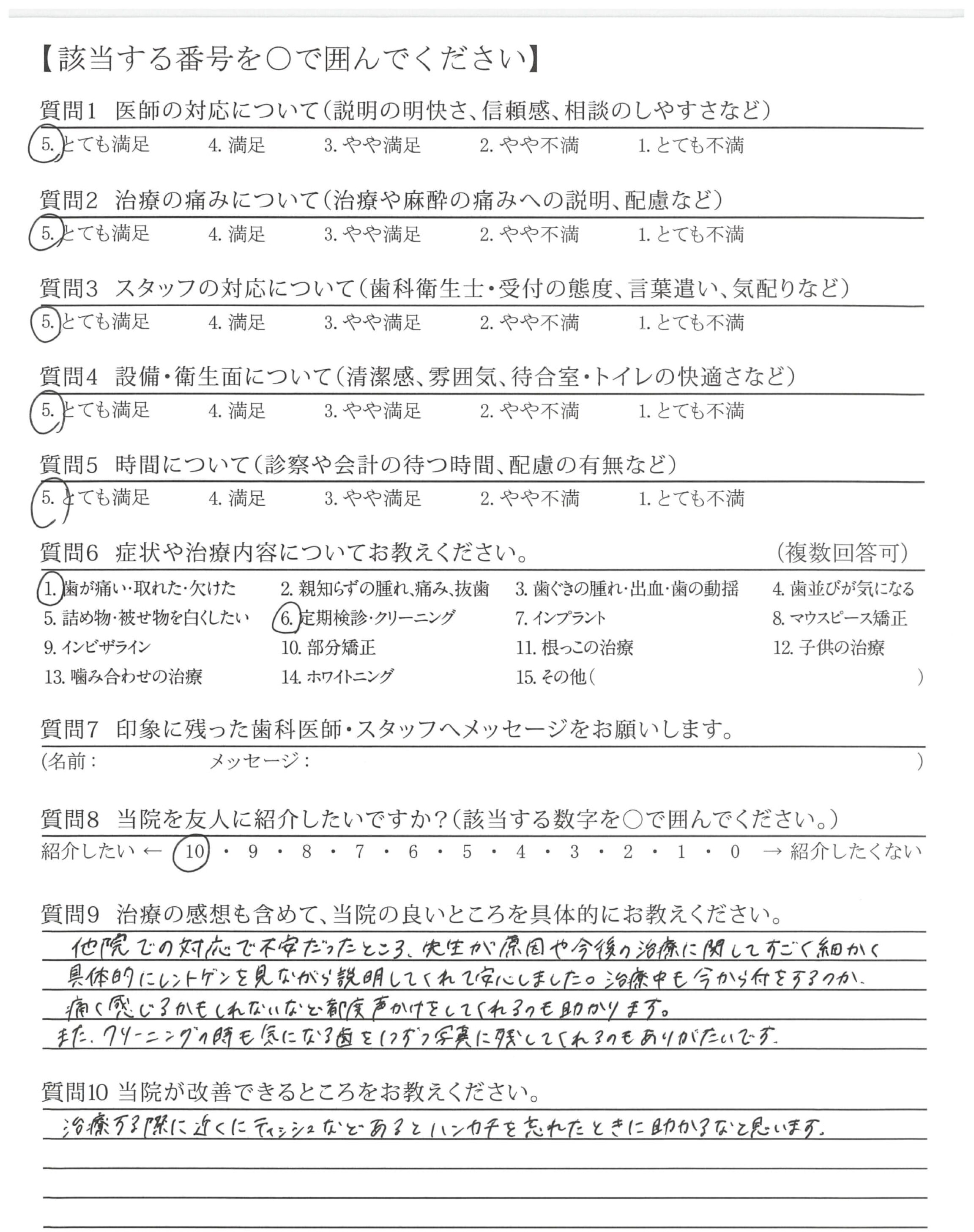 治療について丁寧に説明して下さり、安心しました。今後の治療についても教えて下さり、心強いです。