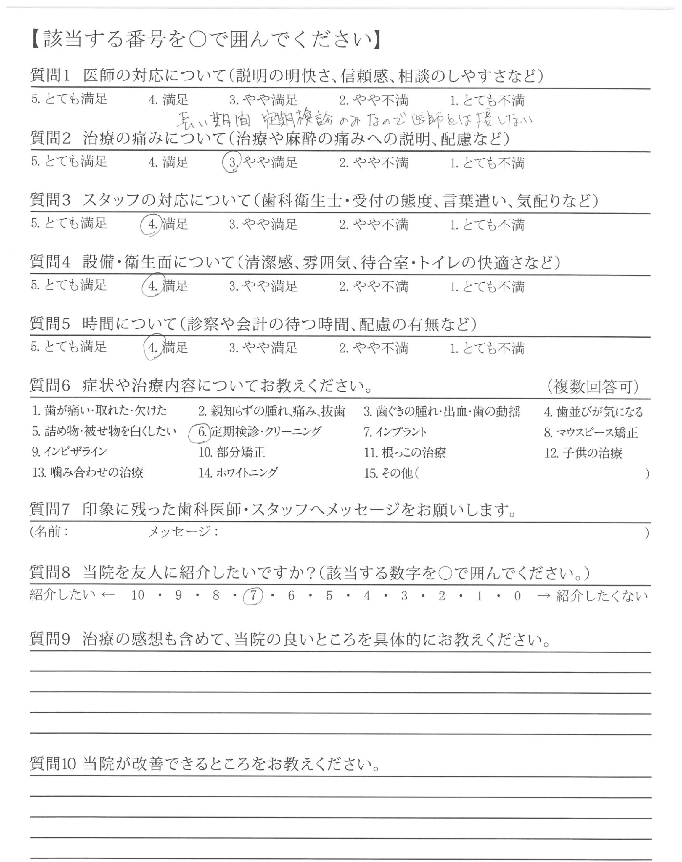 定期検診では先生に診ていただくことはありませんが、以前の虫歯の際は抜歯がとてもスムーズで、しっかりと説明していただきました。