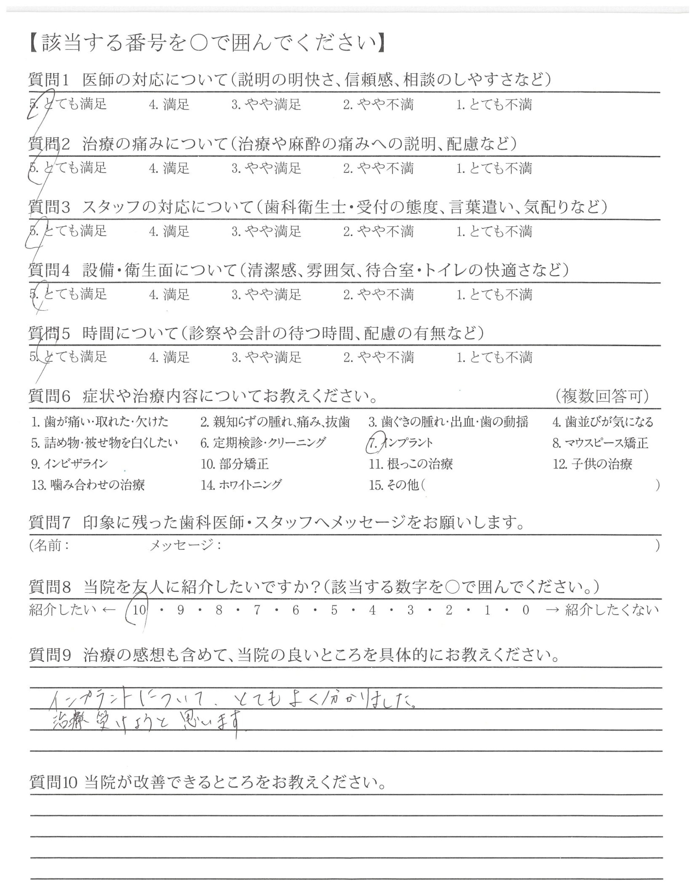 先生の話がとてもわかりやすく、インプラントの説明を受けましたがよく理解できました。