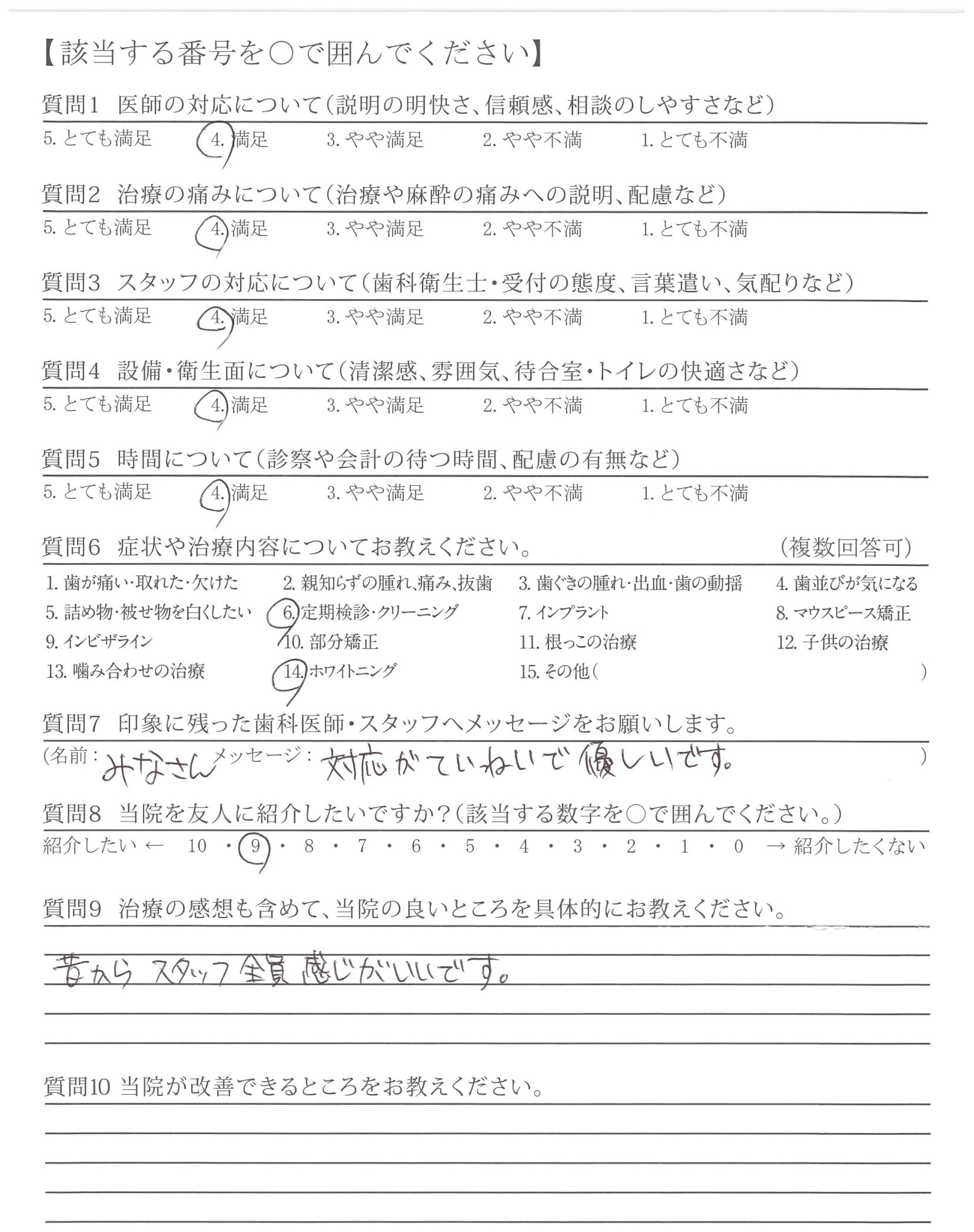 | 歯科医師の対応 | ![]() ![]() ![]() ![]() 4.49 |