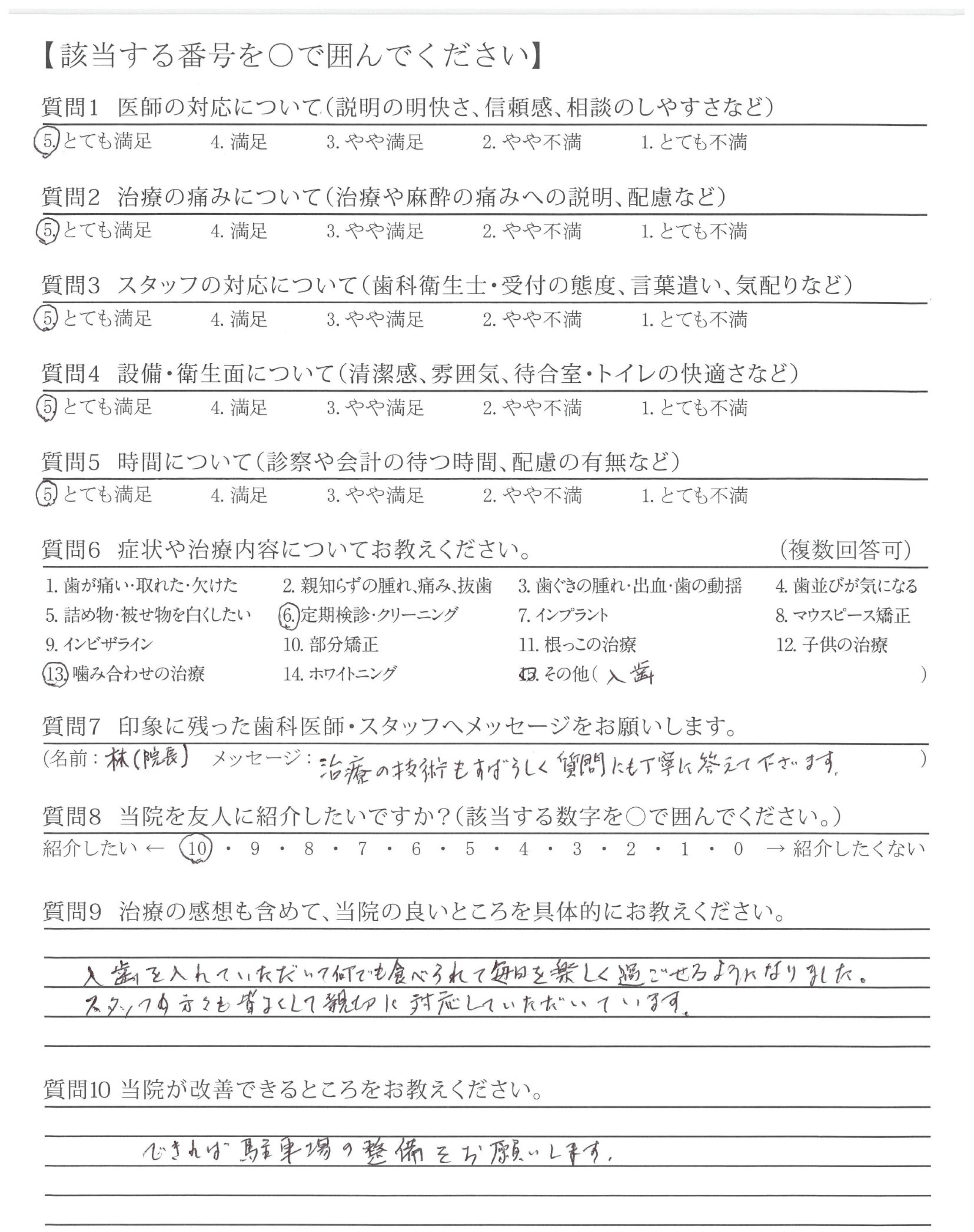 入歯を入れていただいて何でも食べられて毎日を楽しく過ごせるようになりました。