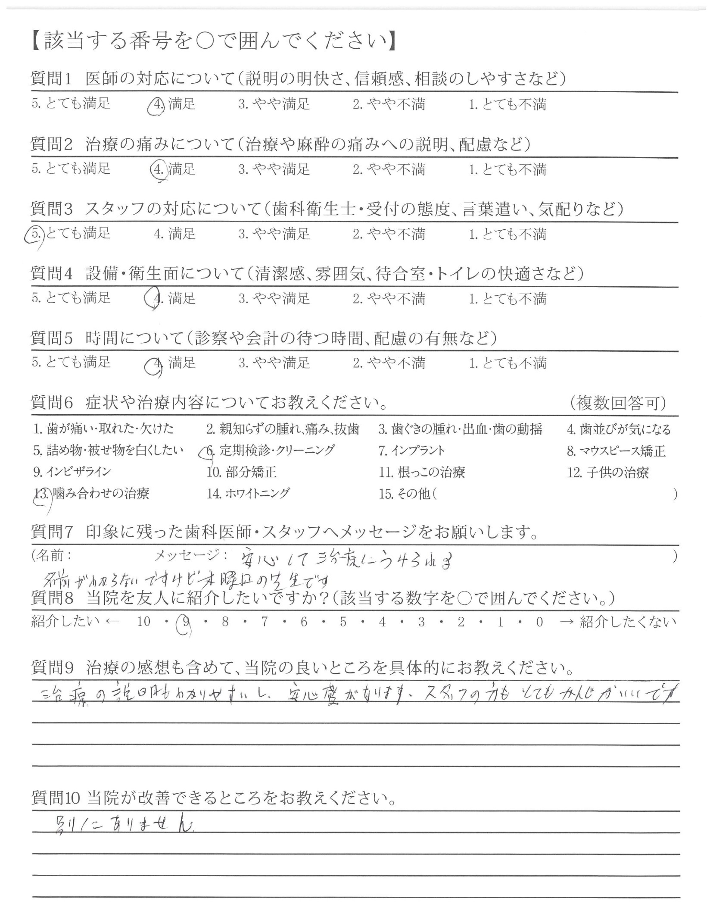 | 歯科医師の対応 | ![]() ![]() ![]() ![]() 4.49 |