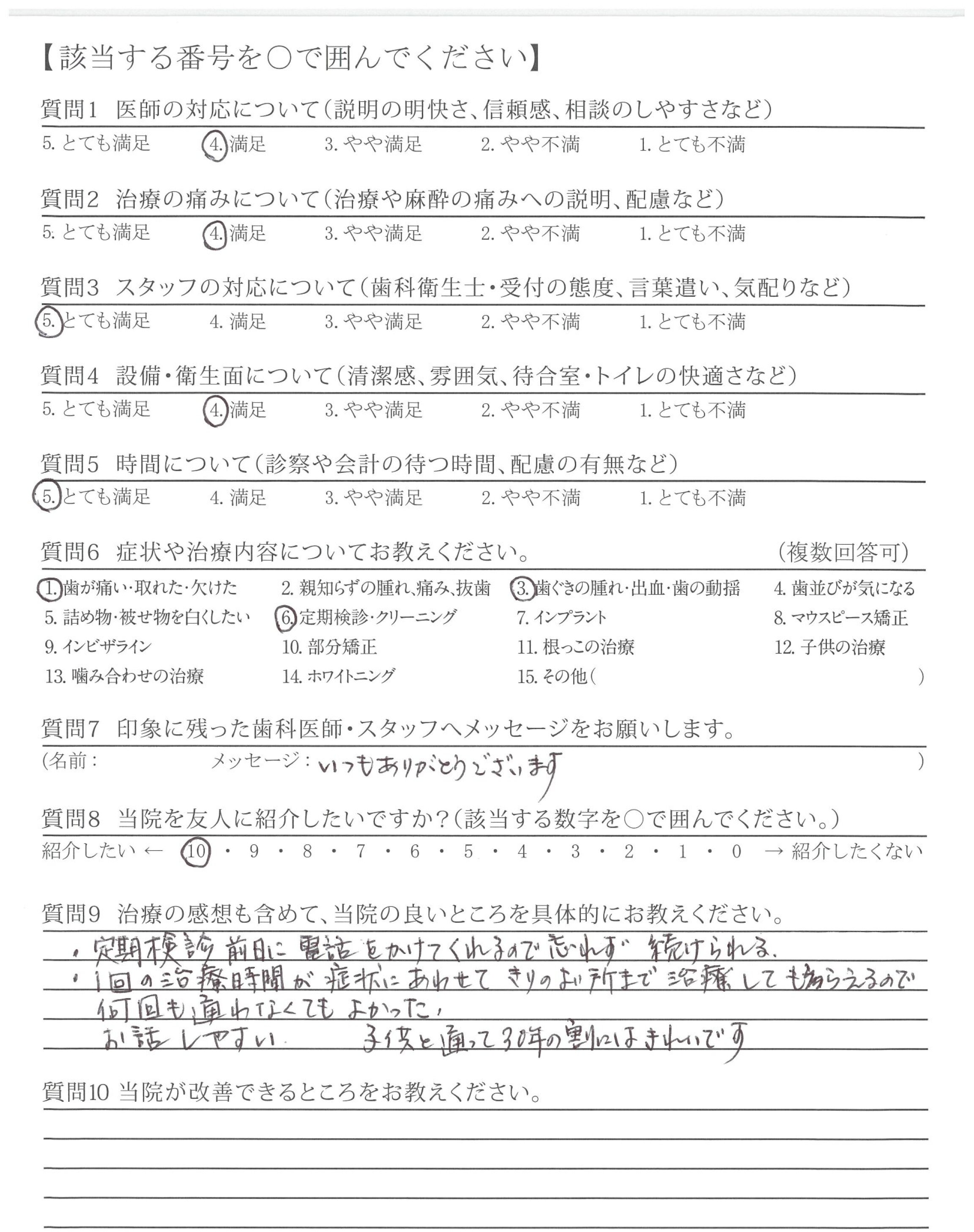 ・定期検診前日に電話をかけてくれるので忘れず続けられる。