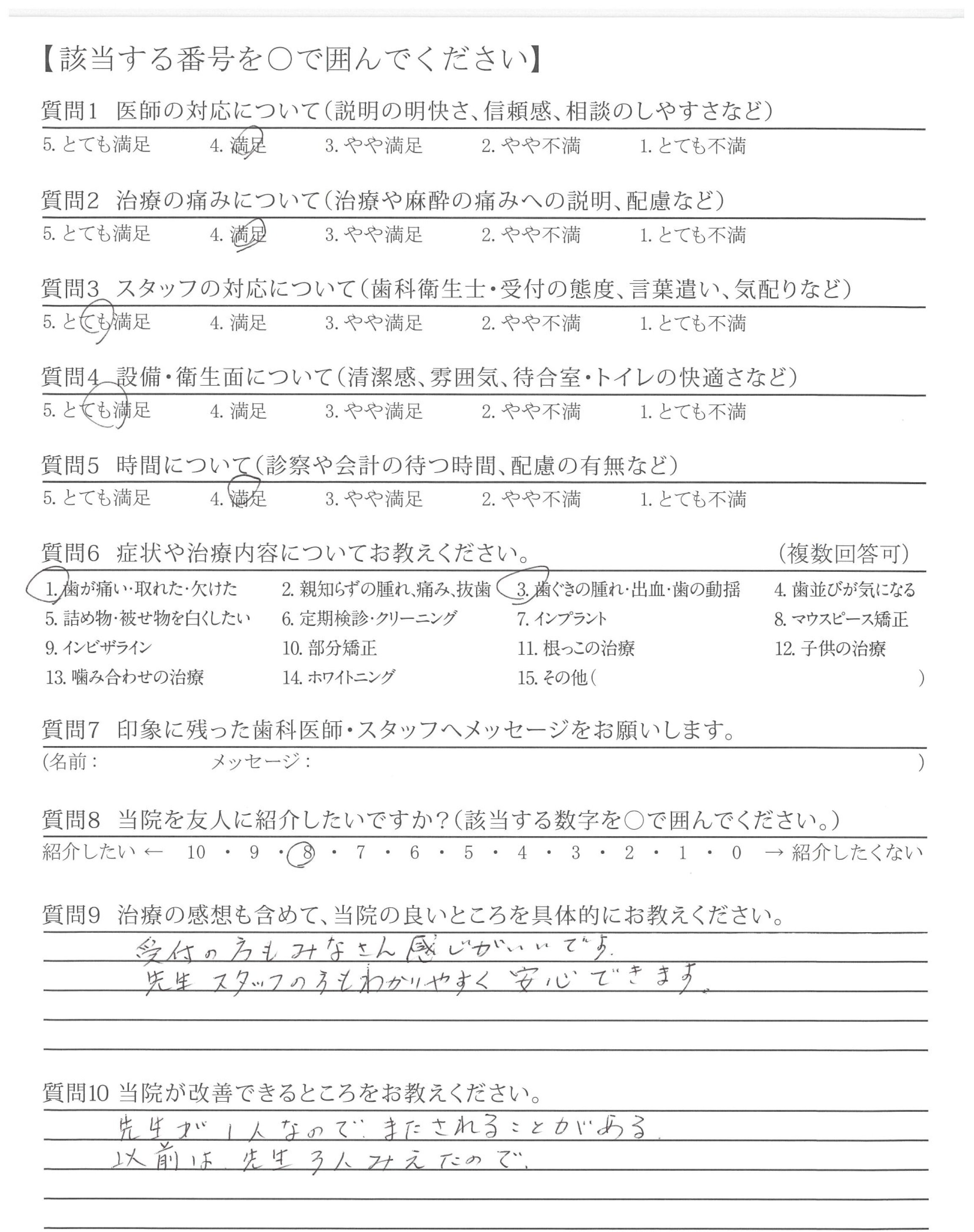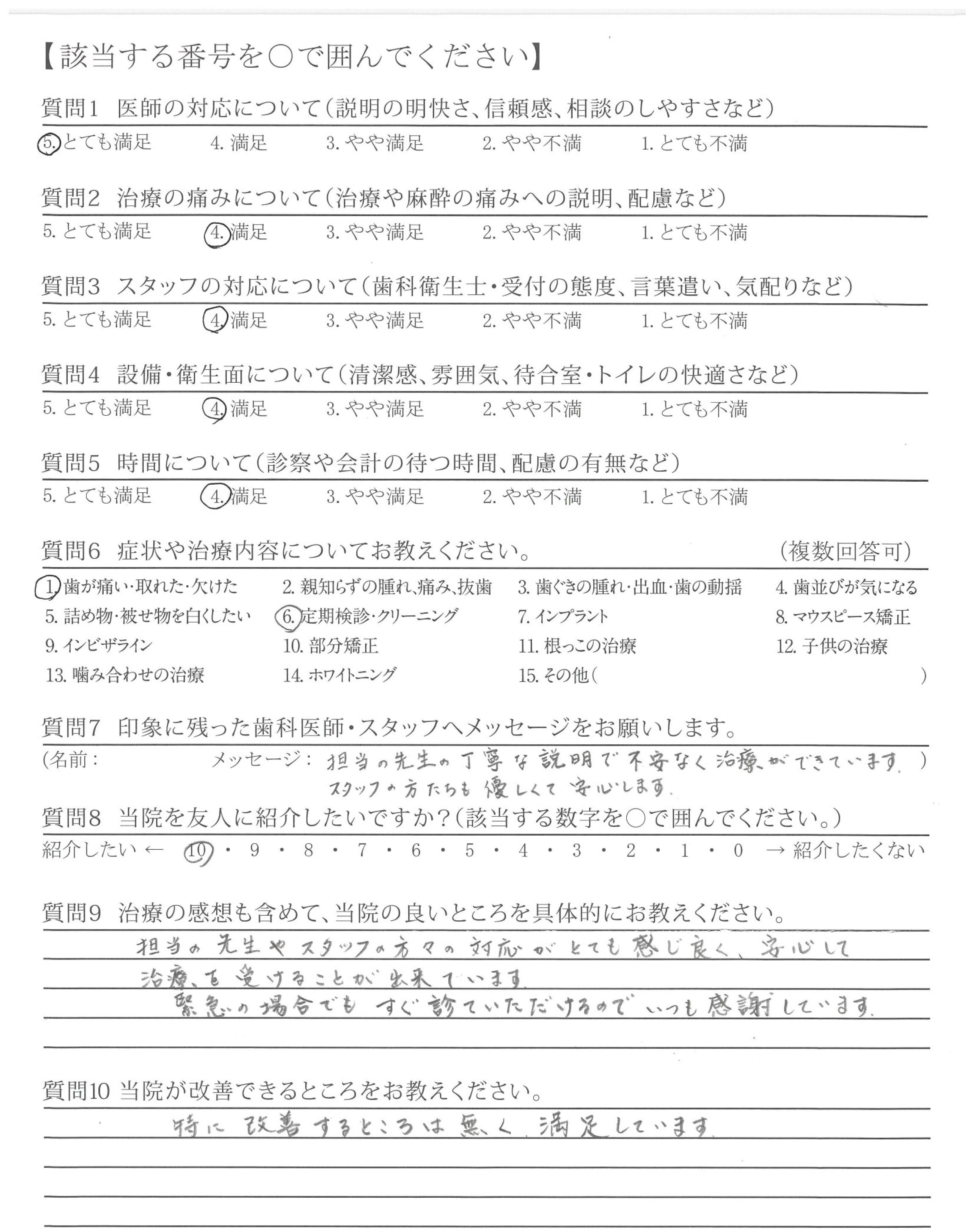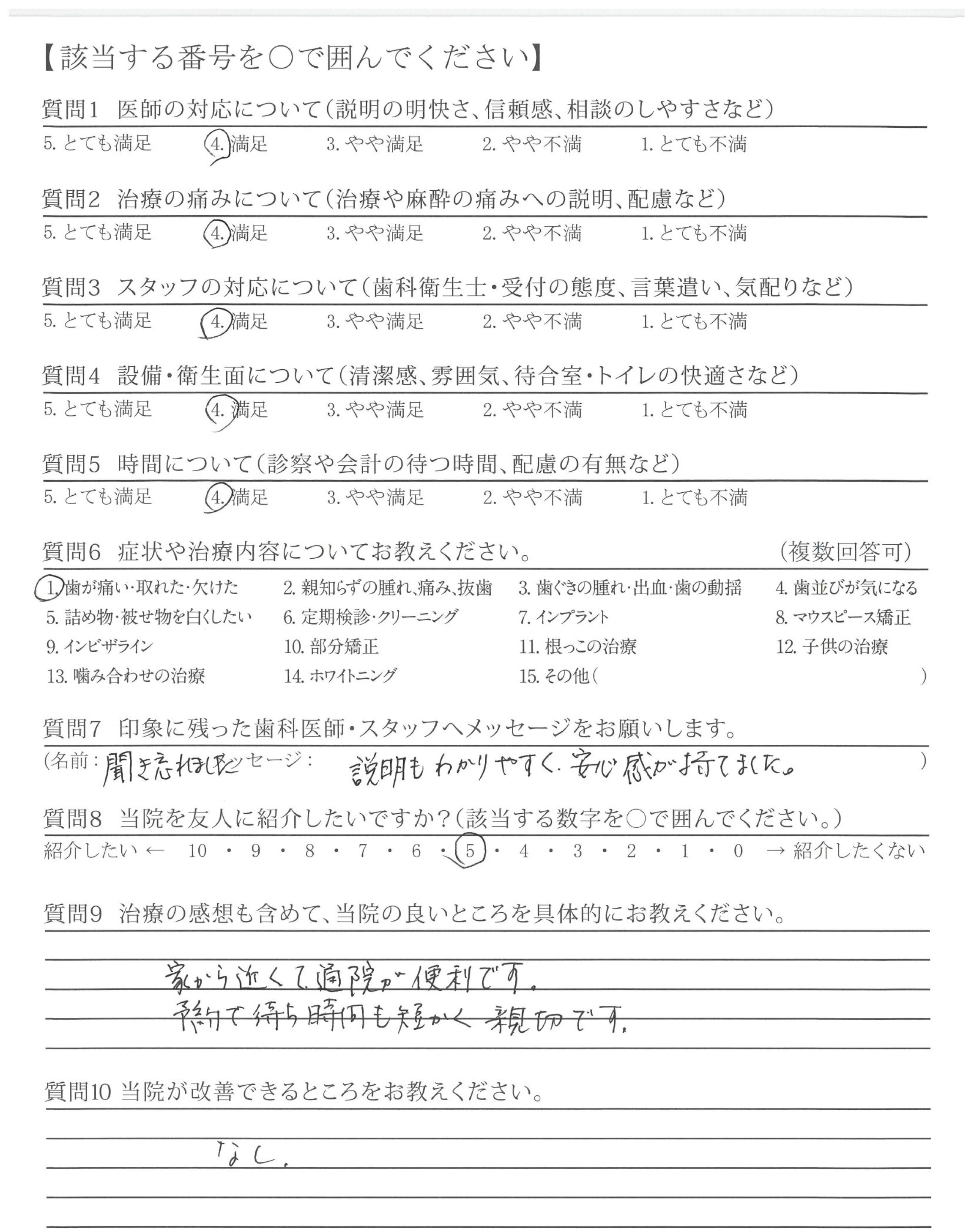 数年前に急な歯の痛みで、電話をした際治療して下さったので感謝しています。