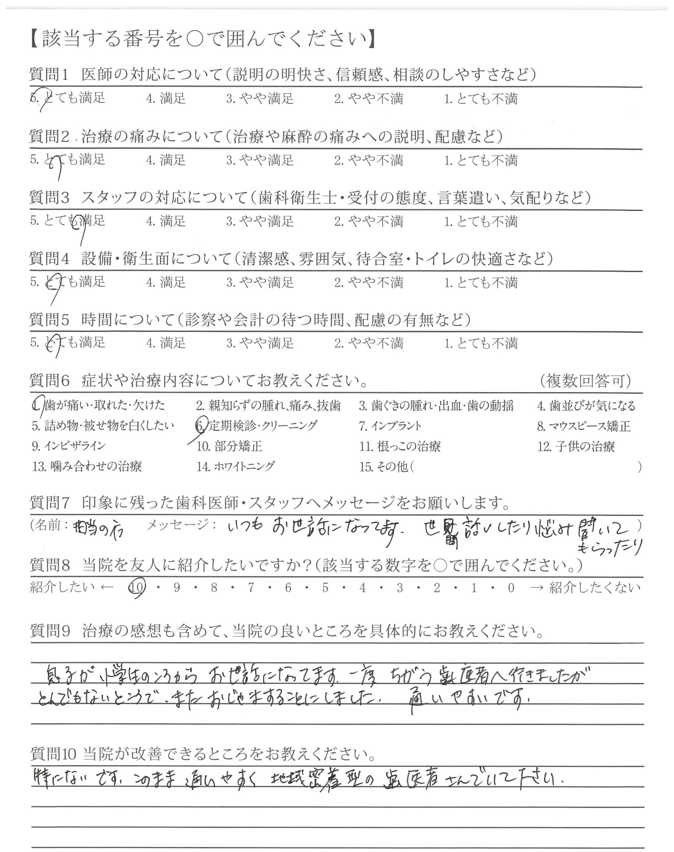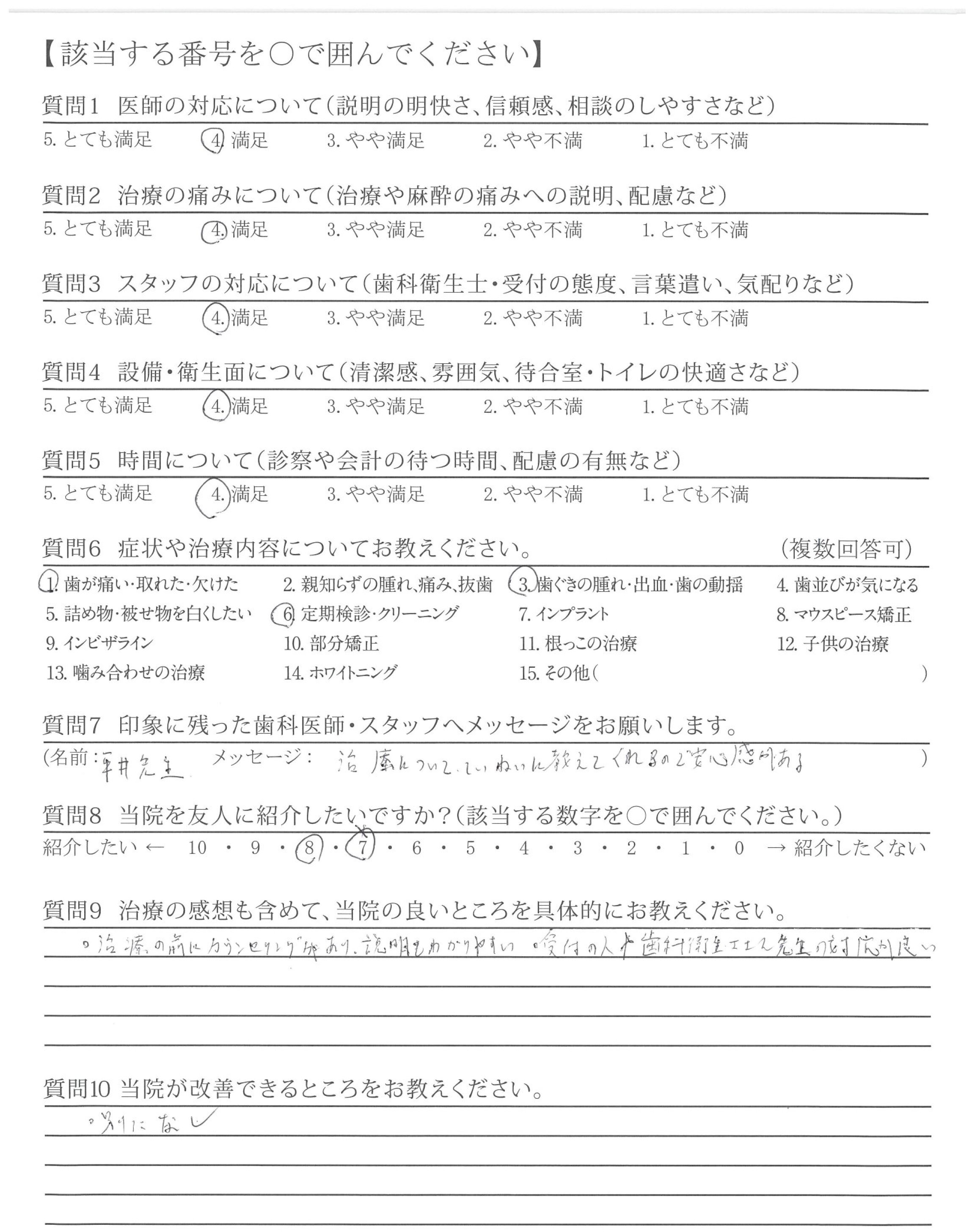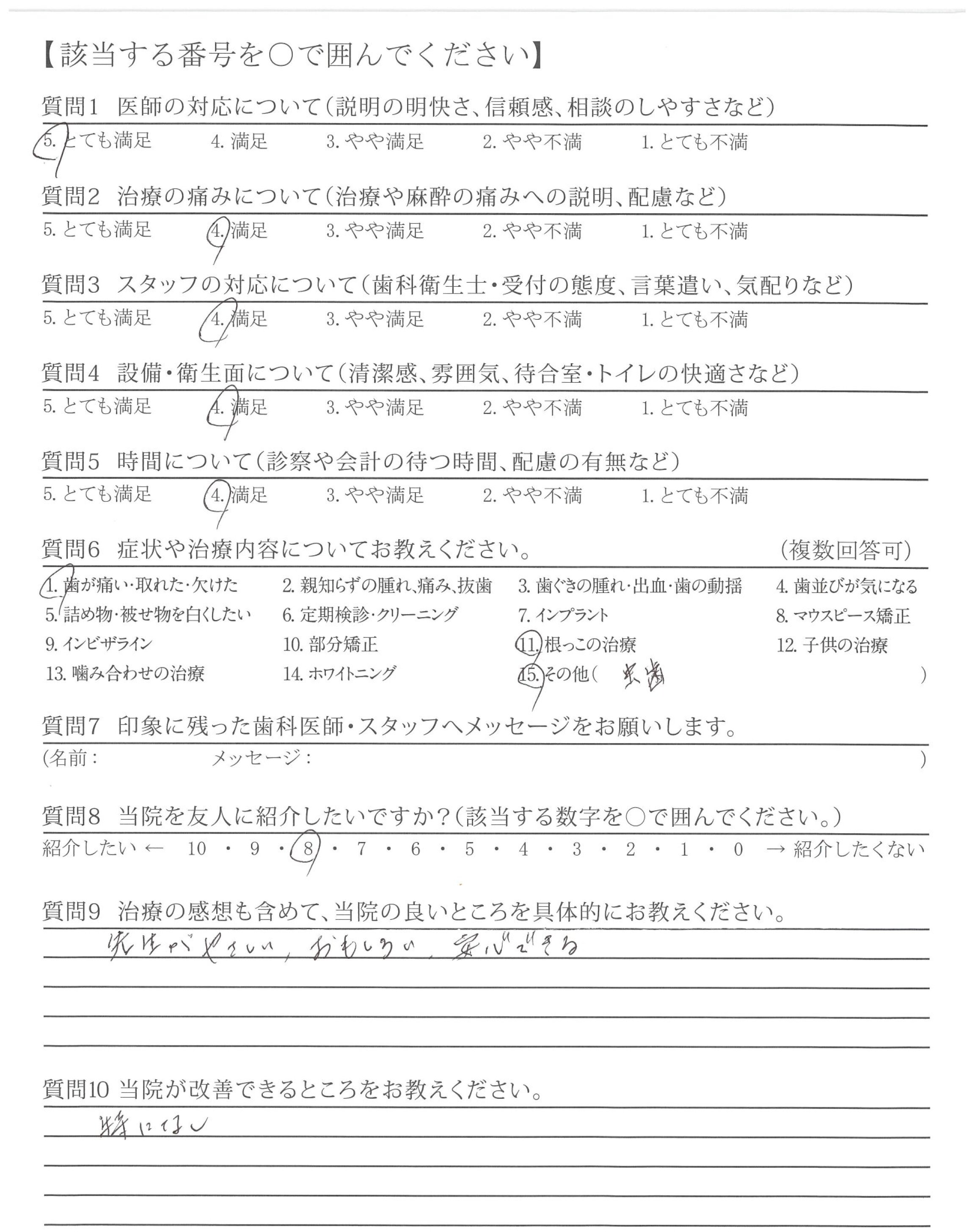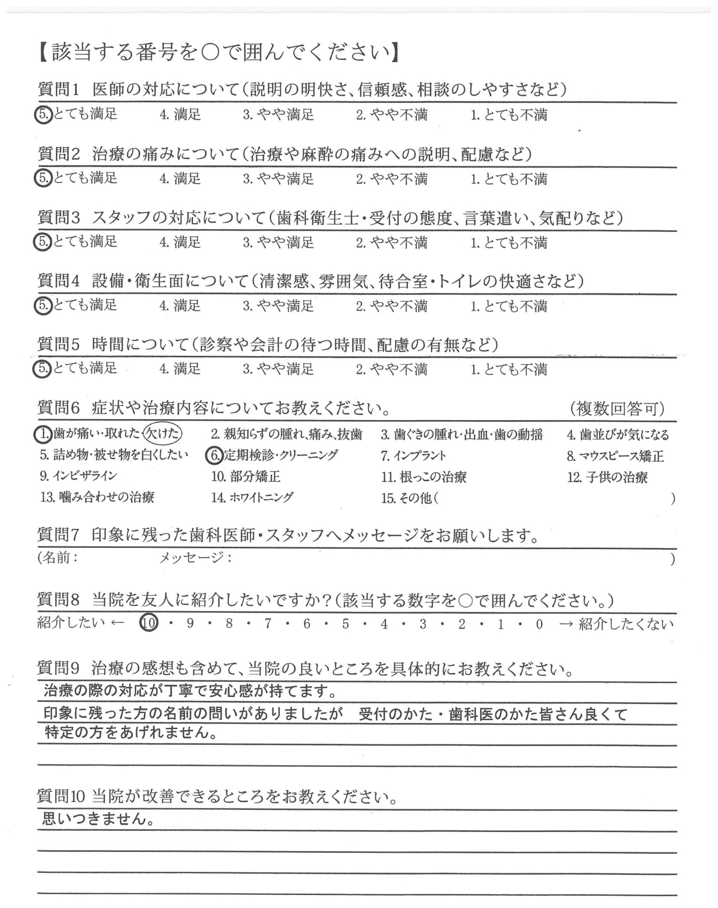 数年前に急な歯の痛みで、電話をした際治療して下さったので感謝しています。