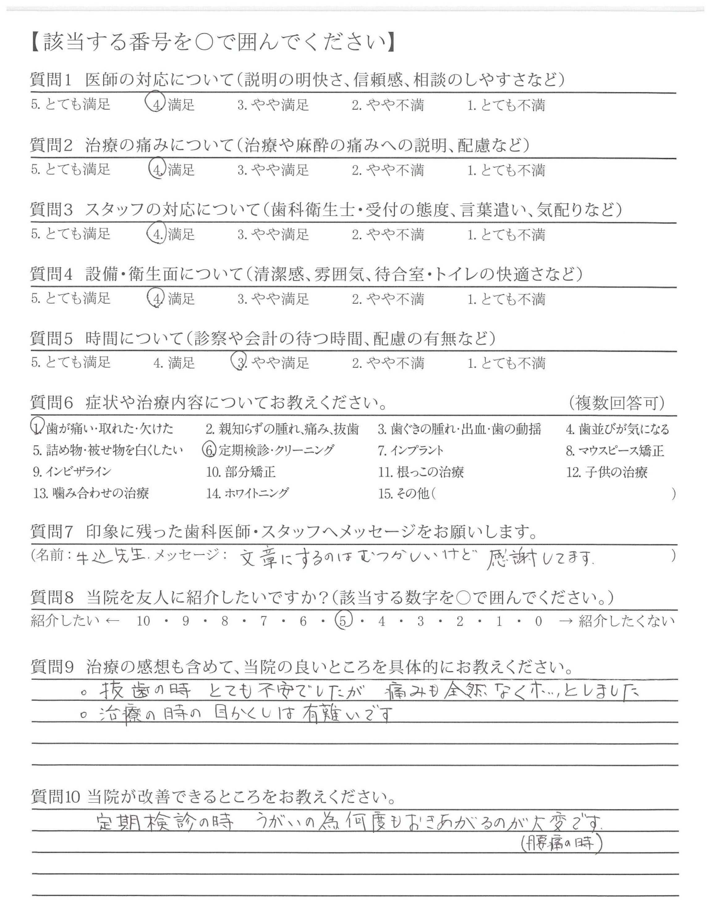 ・抜歯の時とても不安でしたが痛みも全然なくホッとしました