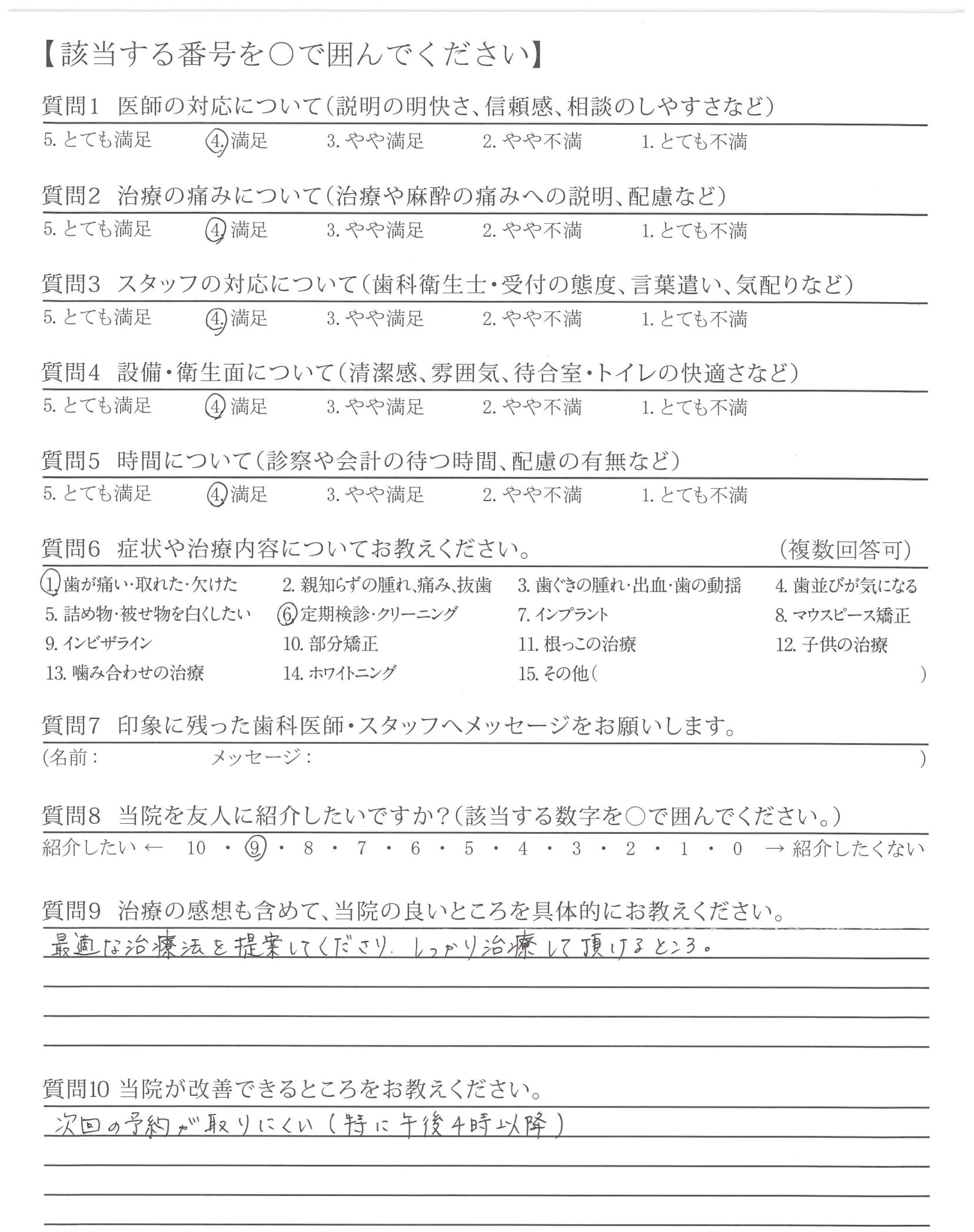 改善というか・・・予約が取りにくく、治療に日数がかかります。