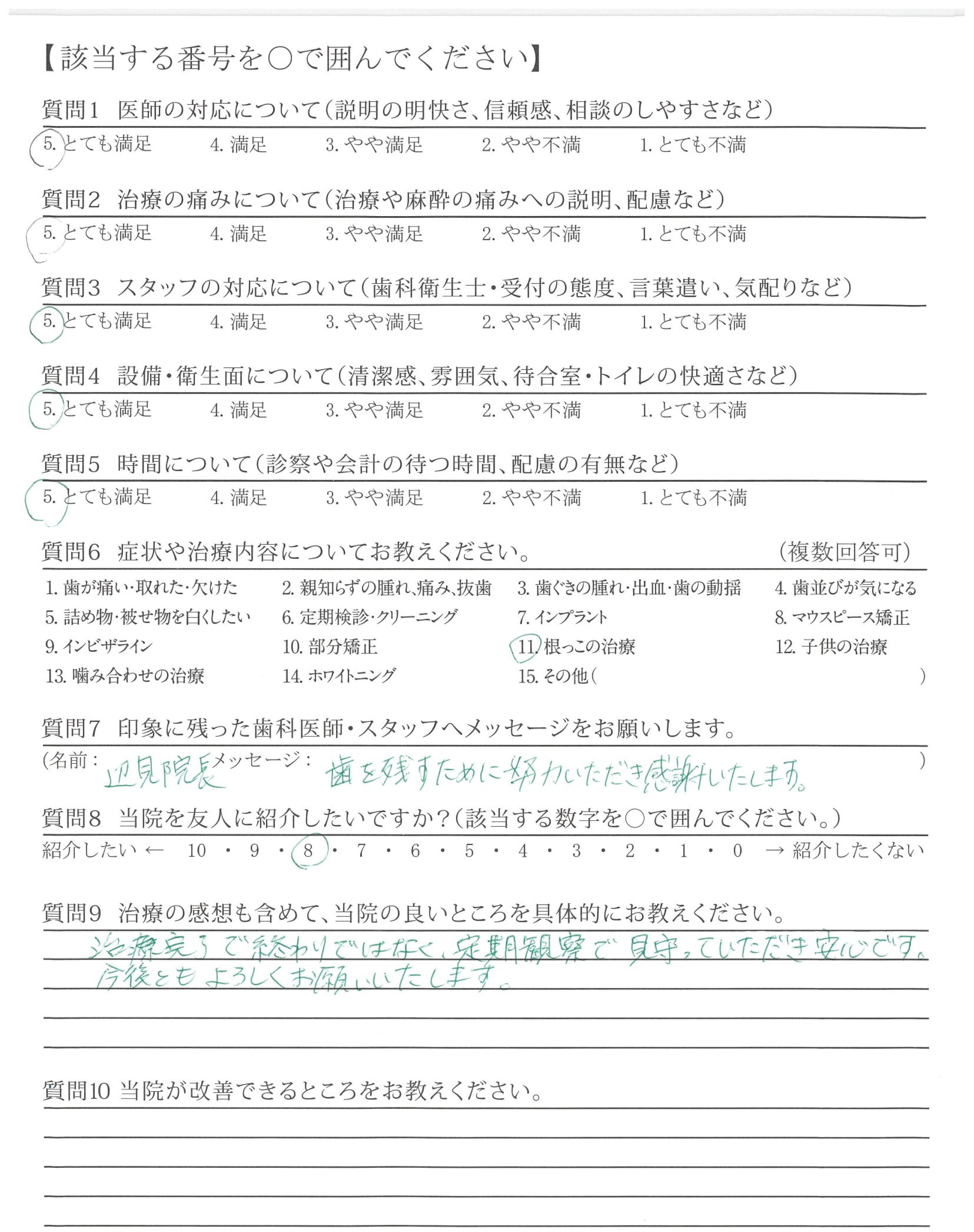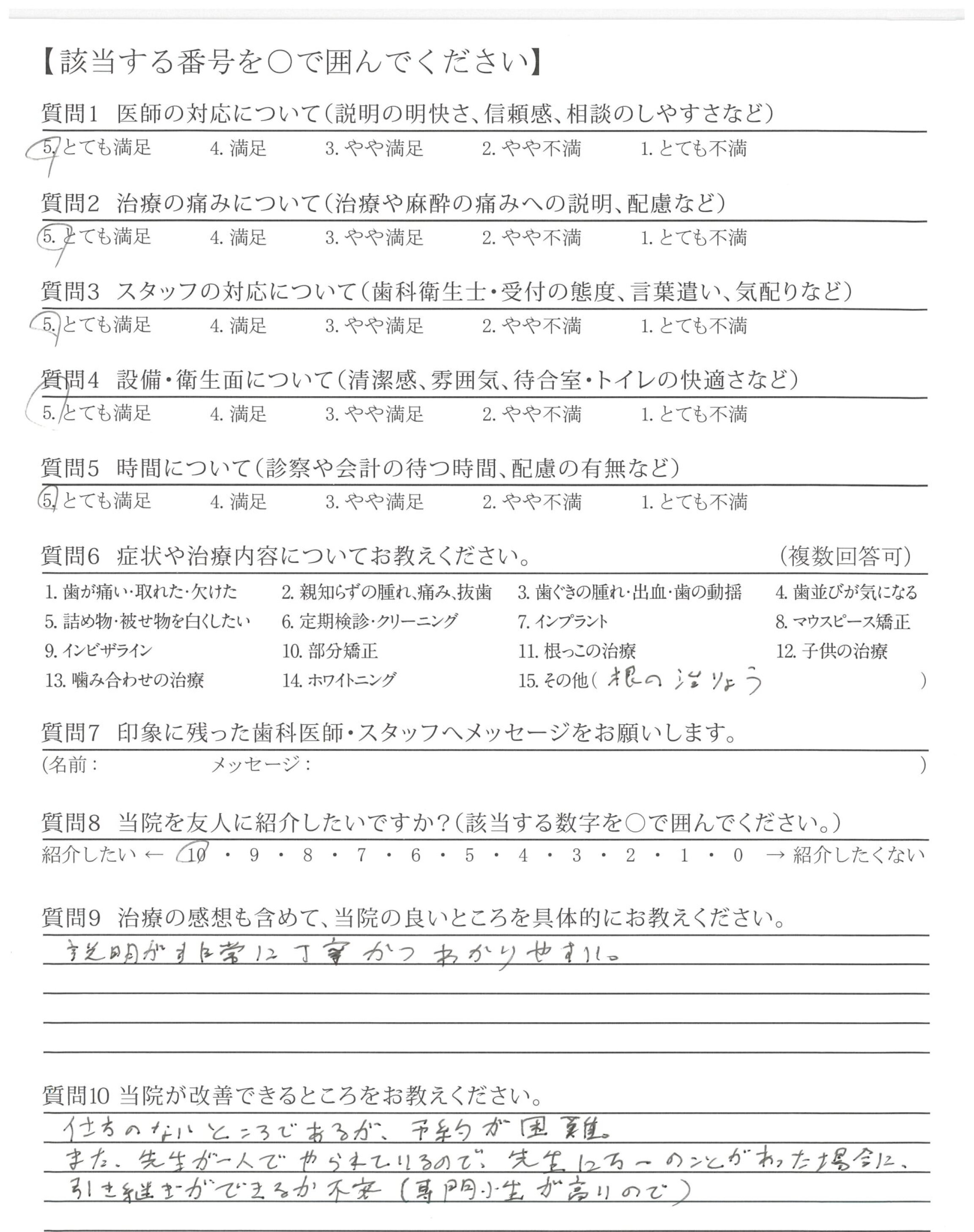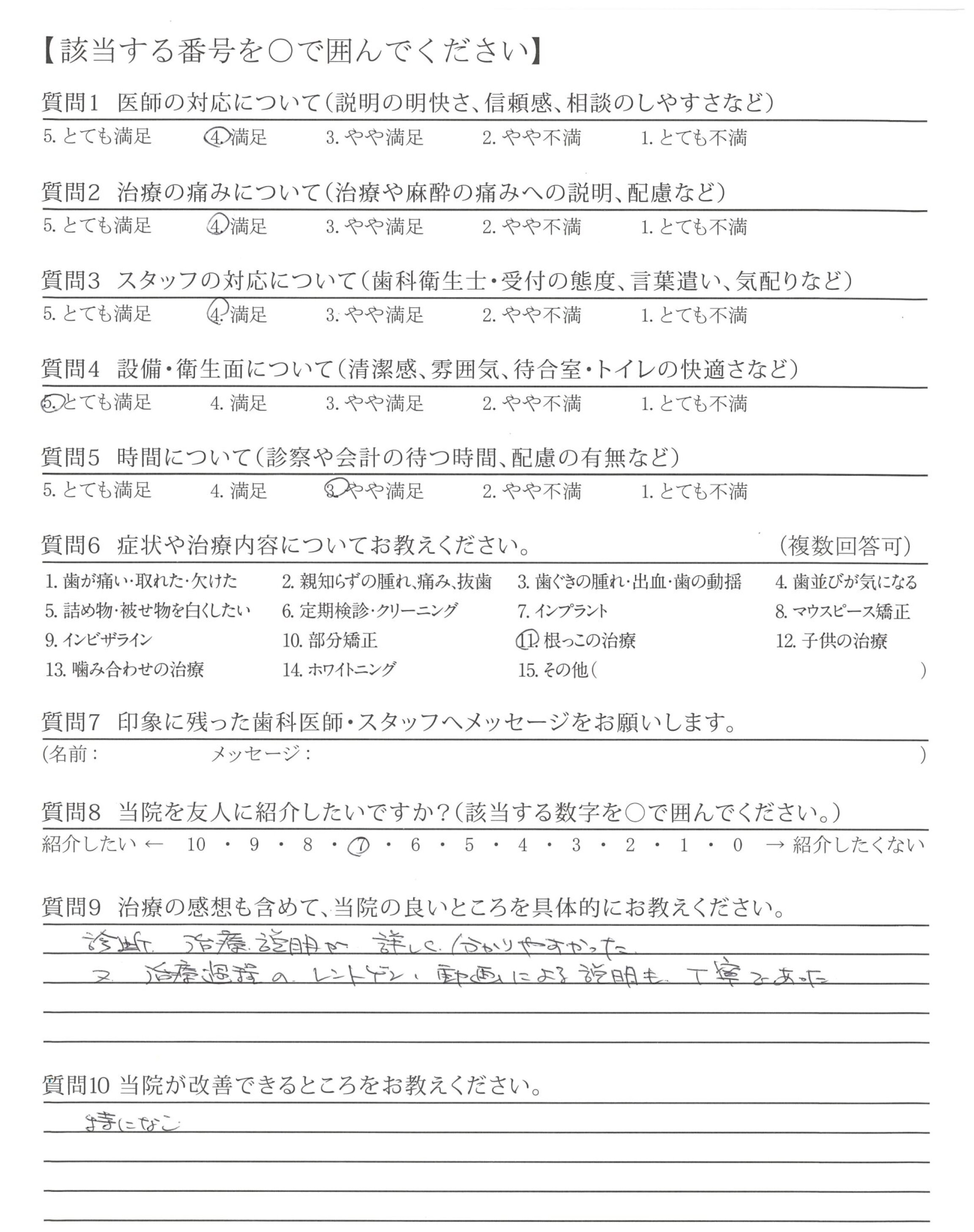 困っていた根の治療をしっかりやって頂き、感謝しています。