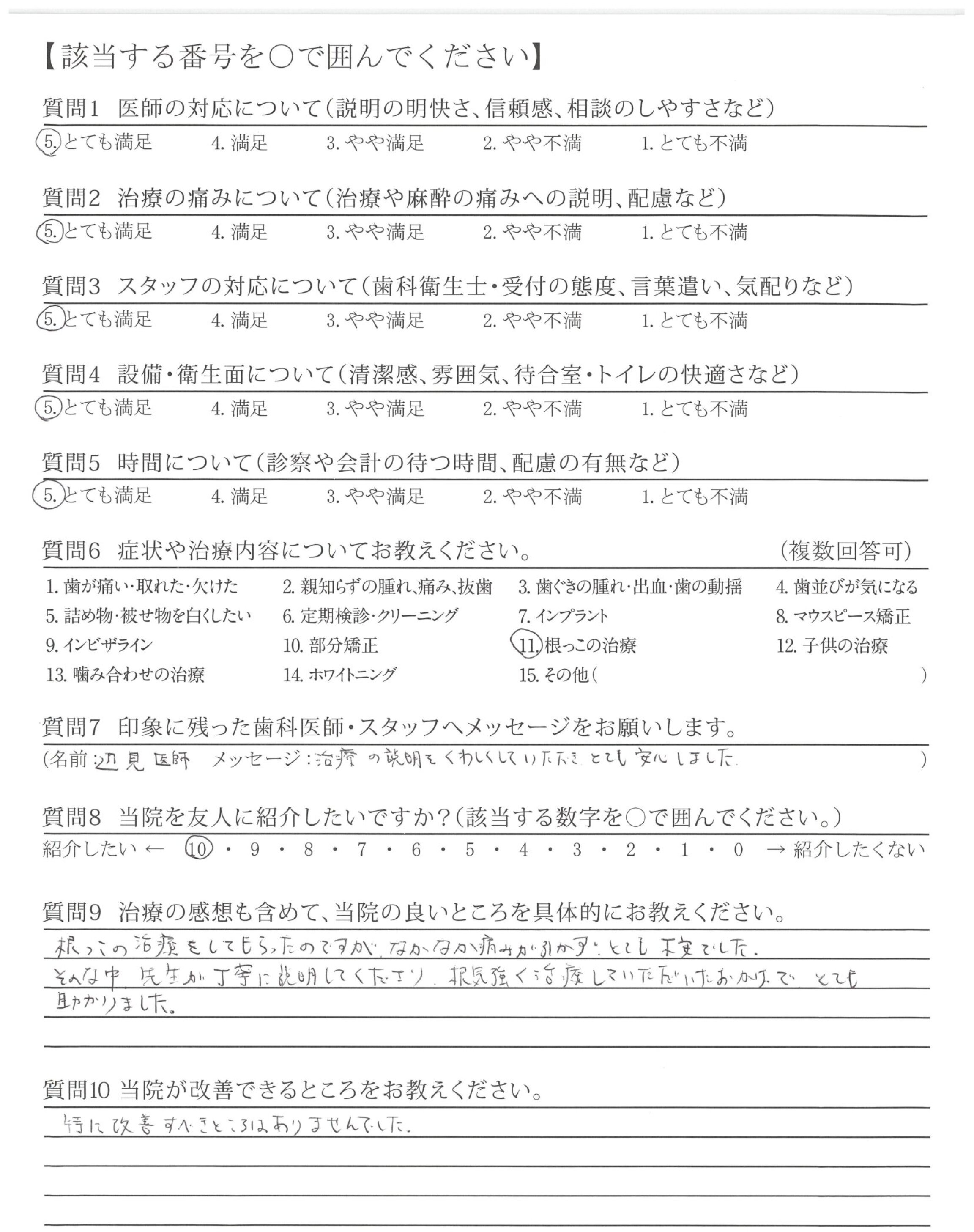 辺見先生以外の歯科医院には通院出来ないなと思っています。