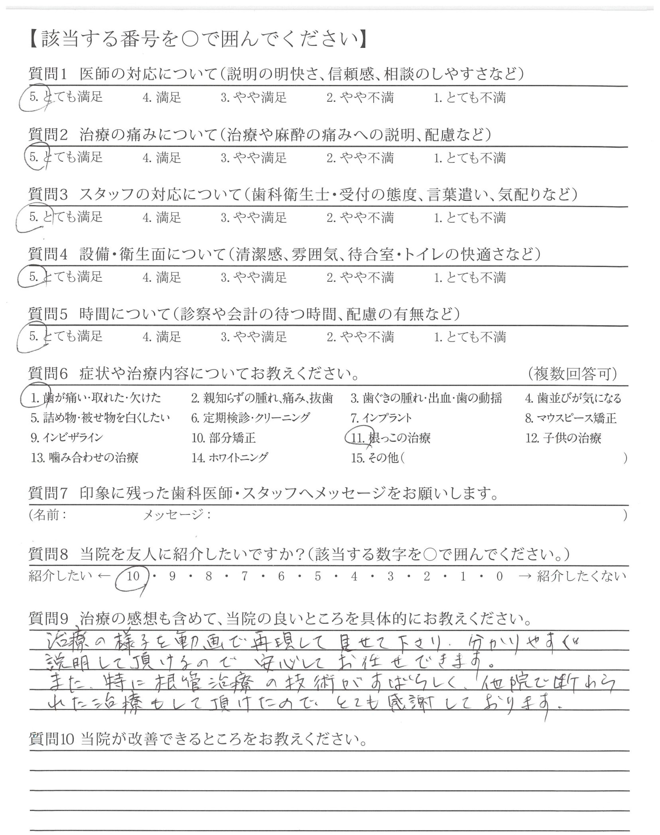 今は治療が一旦終了して、問題なく歯が使えているので大変感謝しております。
