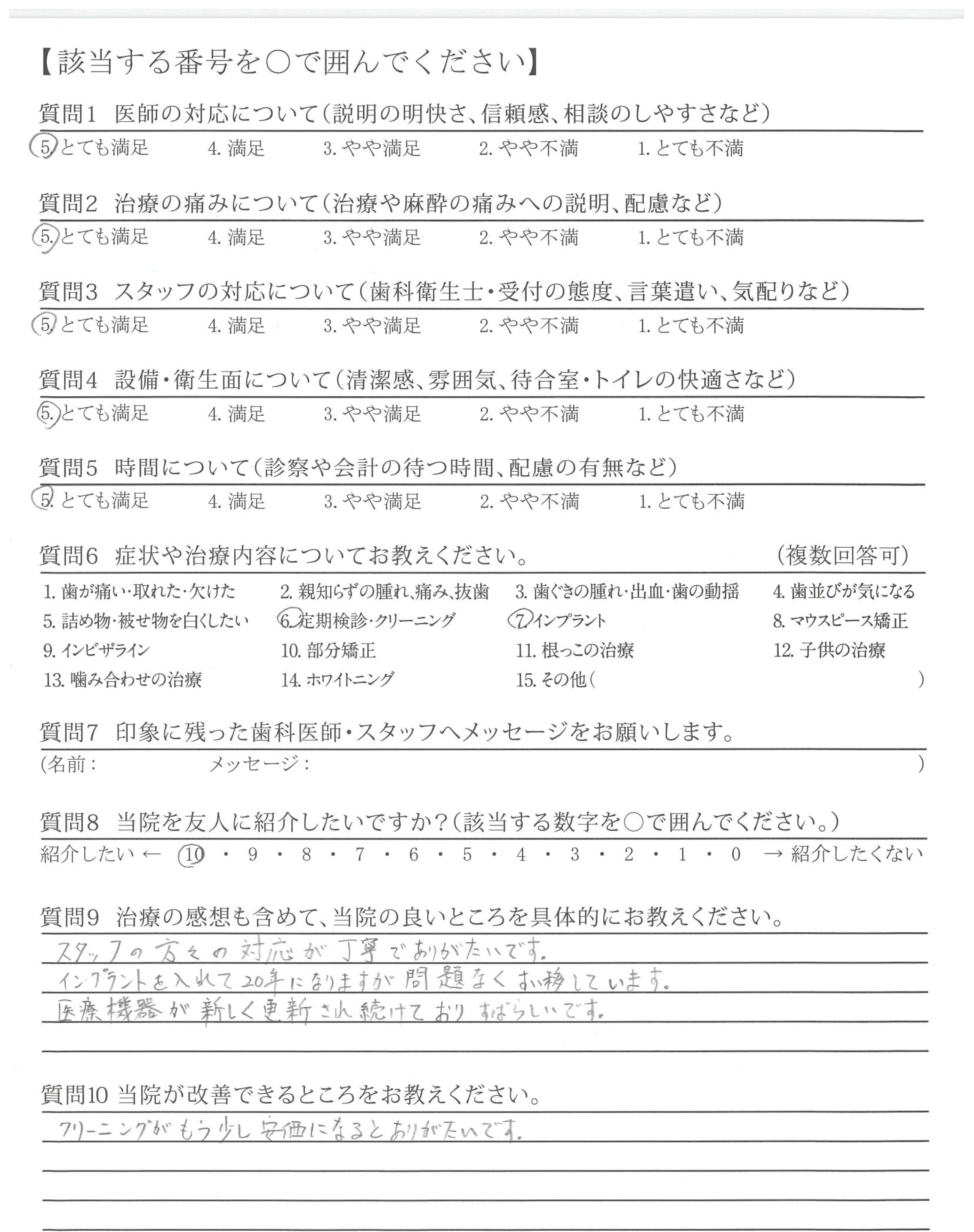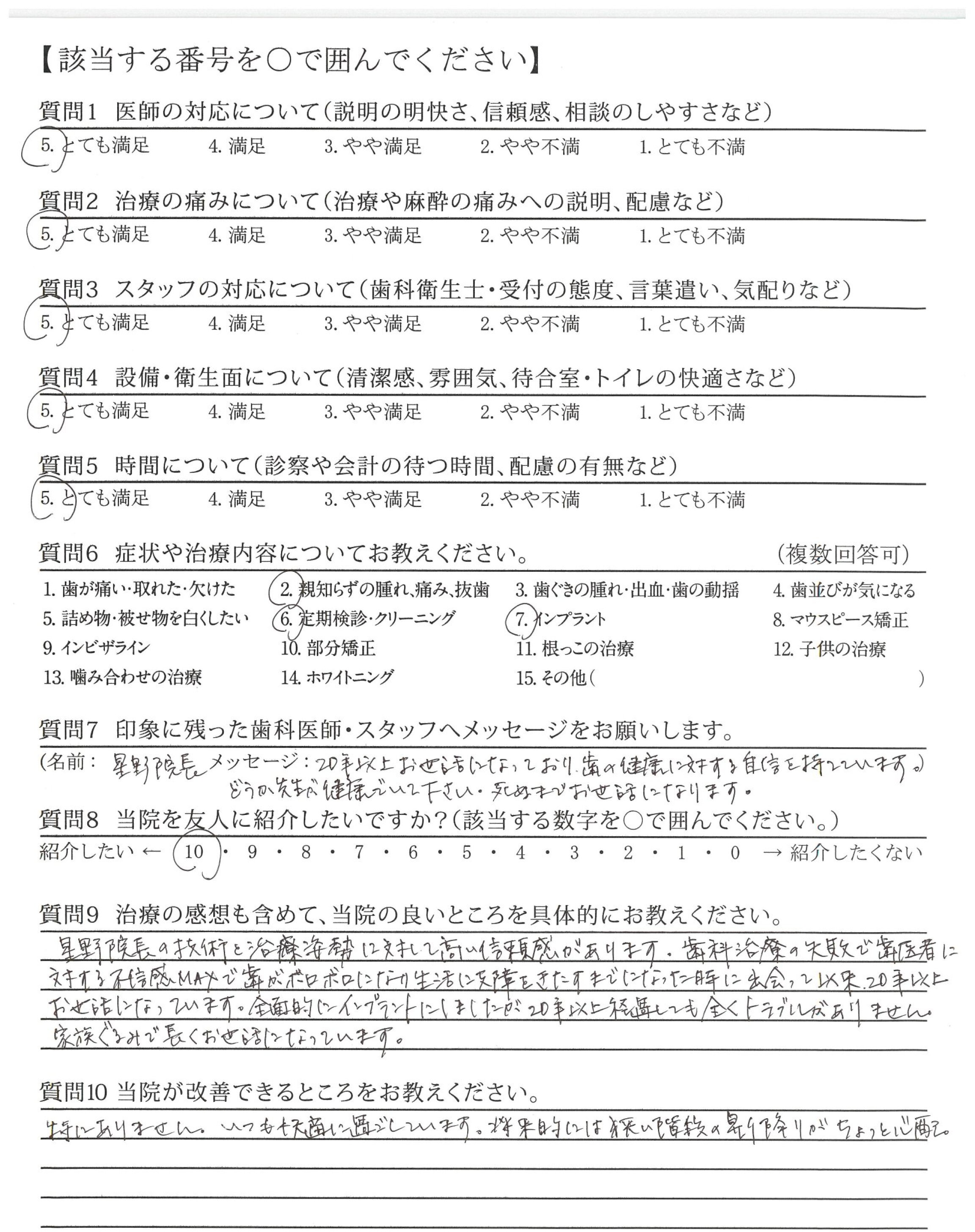 20年以上お世話になっており、歯の健康に対する自信を持てています。どうか先生が健康でいて下さい。死ぬまでお世話になります。