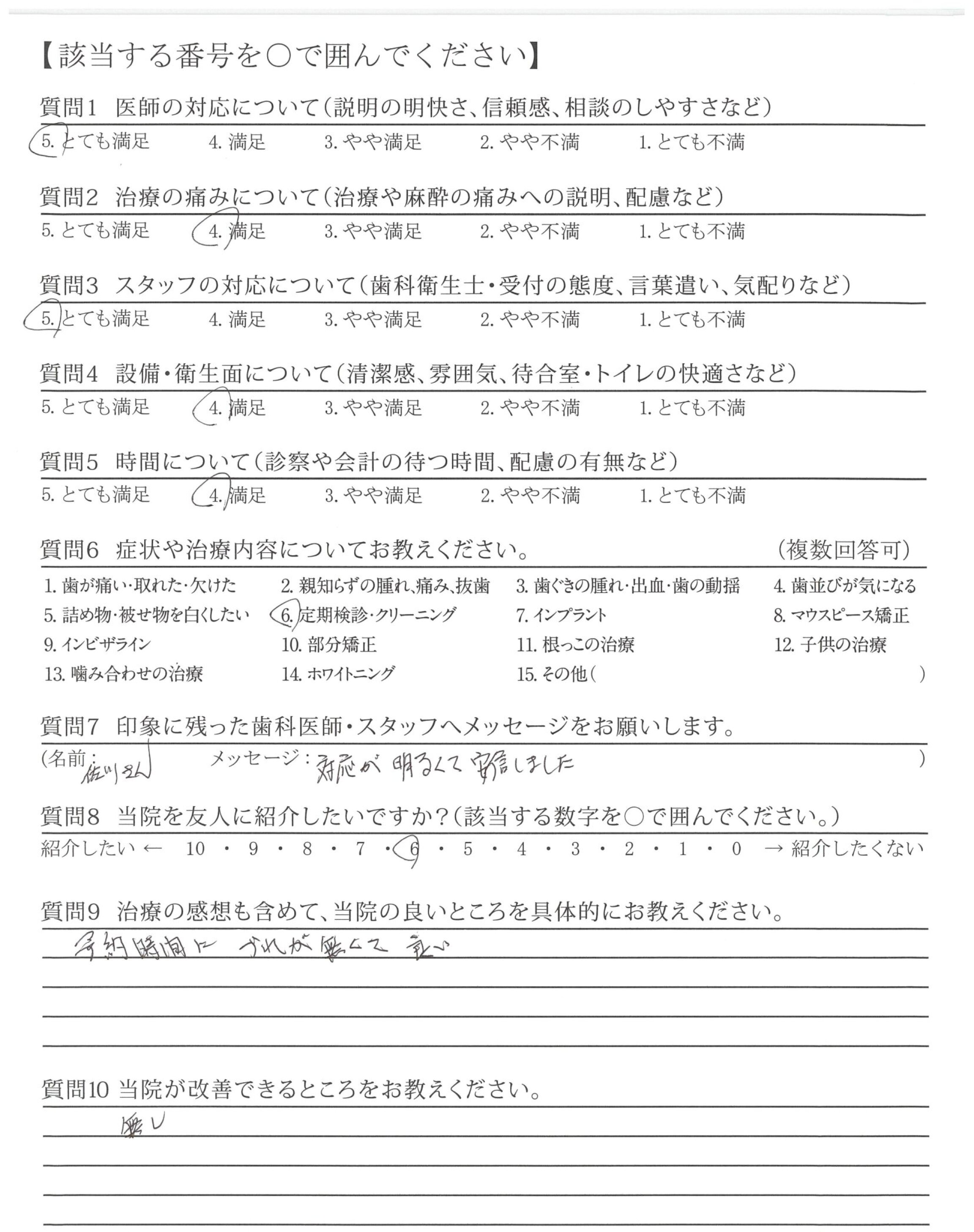 ブラッシングのやり方の御指導もわかりやすく、虫歯に関しても何でも治療ではなく経過観察で良い理由等、具体的な説明があるので通院を続けたいと思います。いつもありがとうございます。
