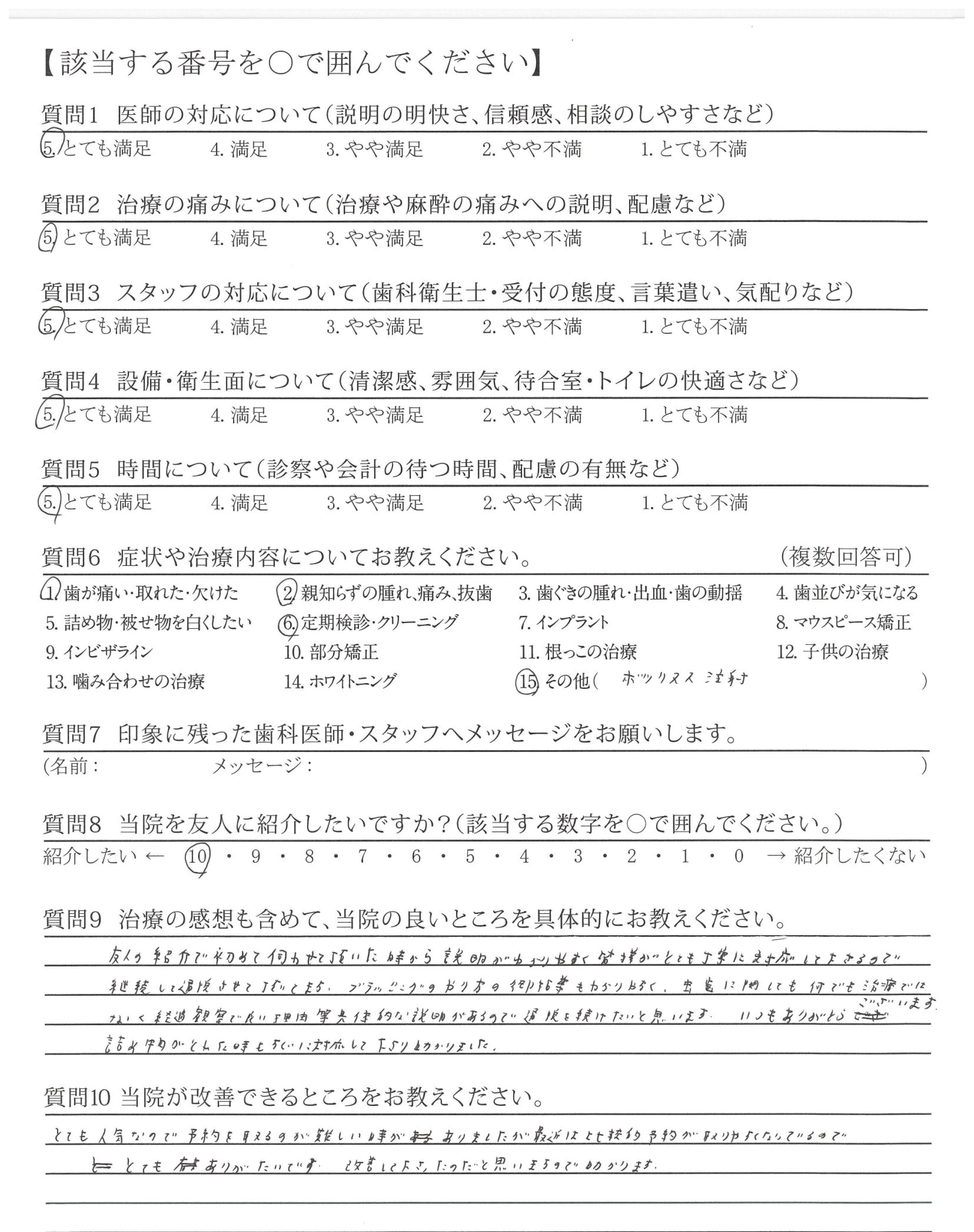 高額な治療も、必要ない場合は「必要ないです」や「また必要ないです」など、患者側に立って提案してくれるので安心できました。