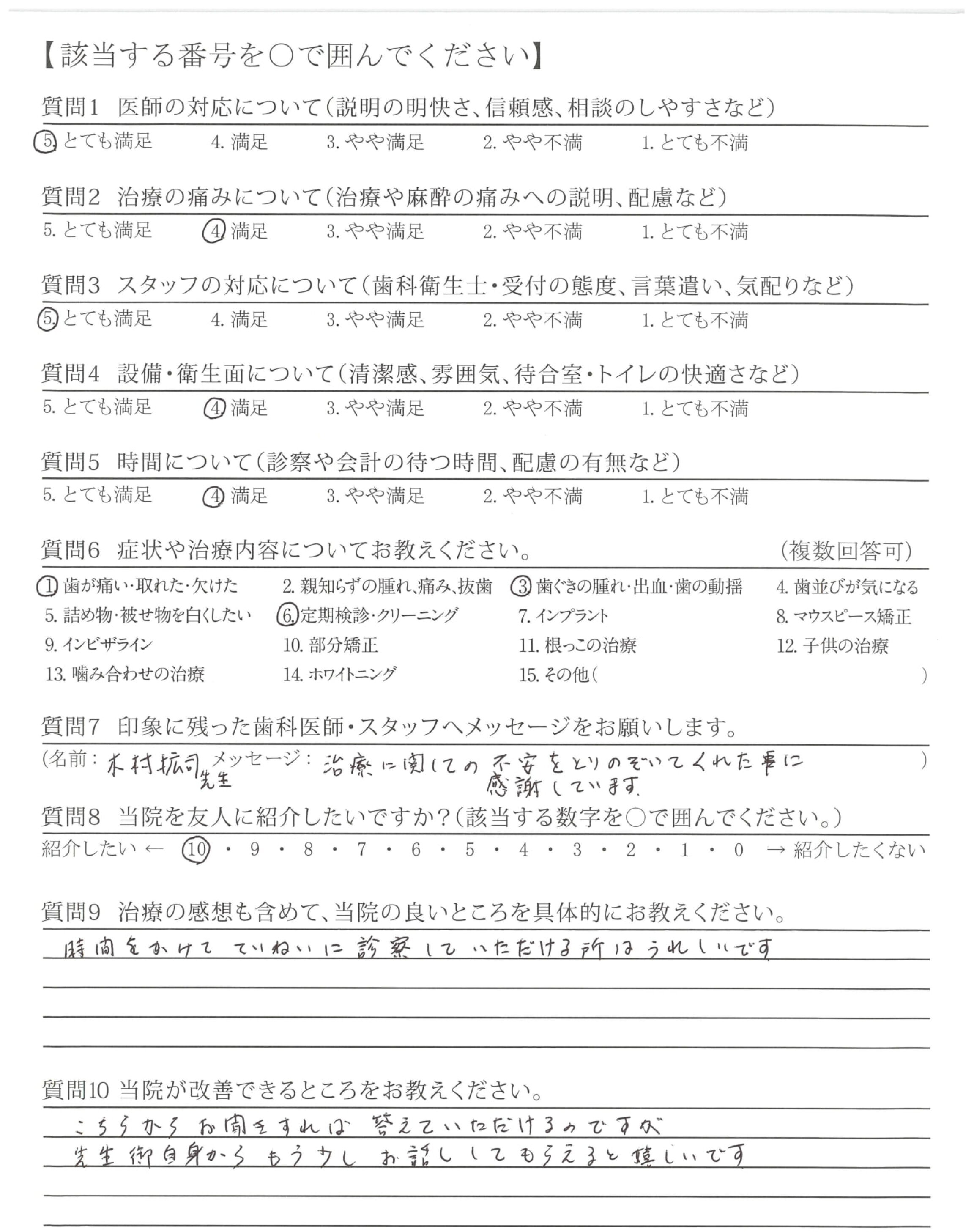 治療に関しての不安をとりのぞいてくれた事に感謝しています。
