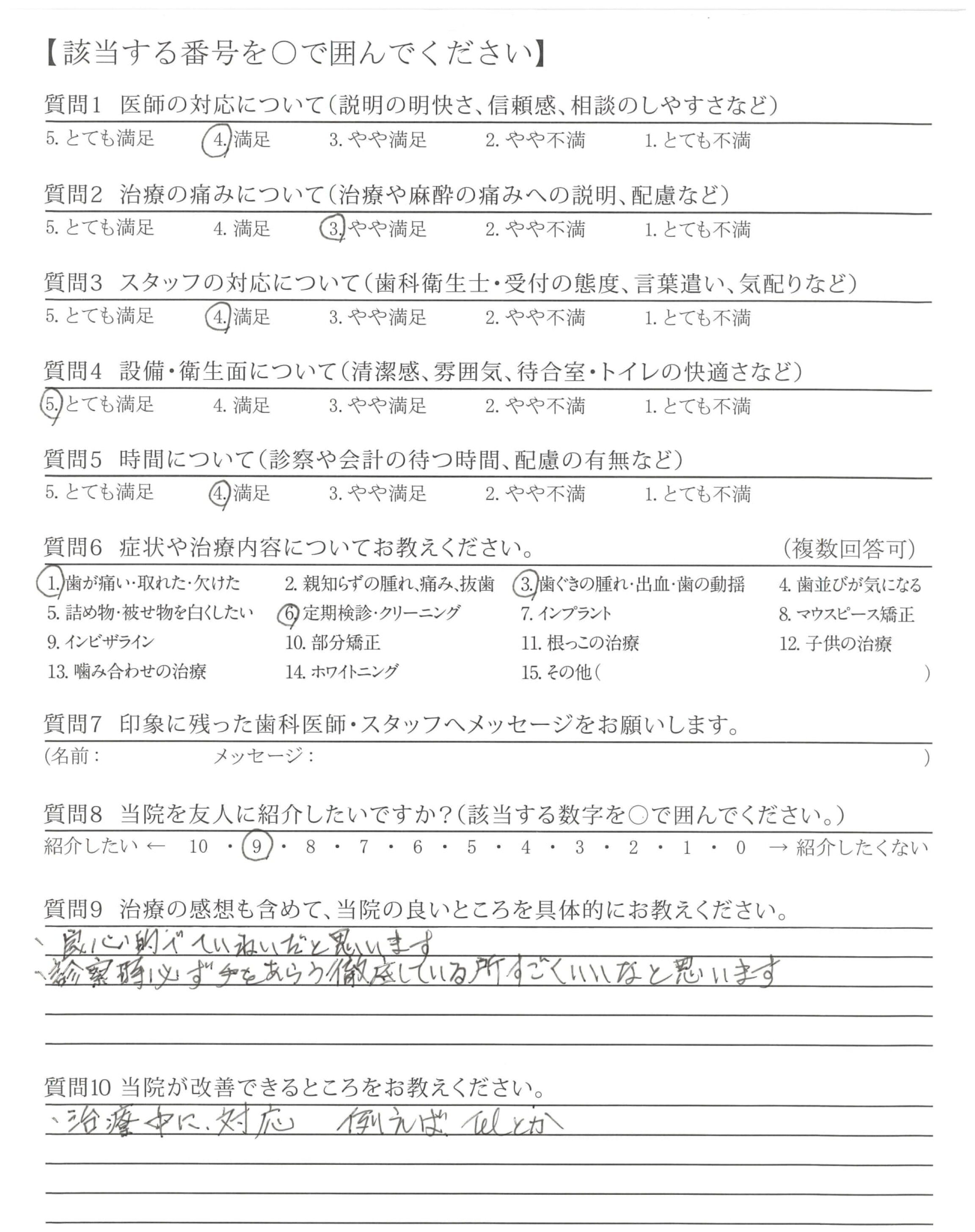 | 治療の痛みへの配慮 | ![]() ![]() ![]() ![]() 4.33 |