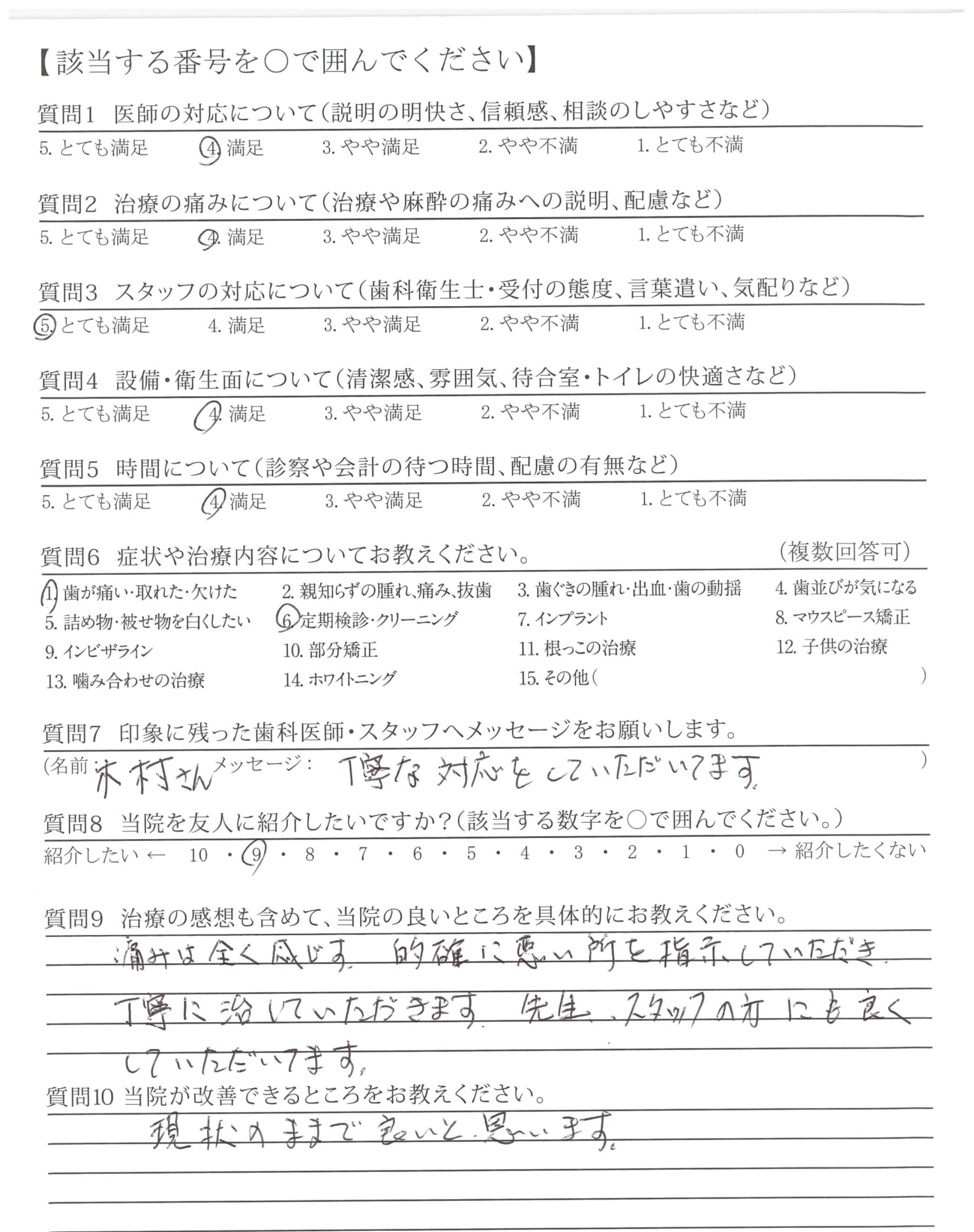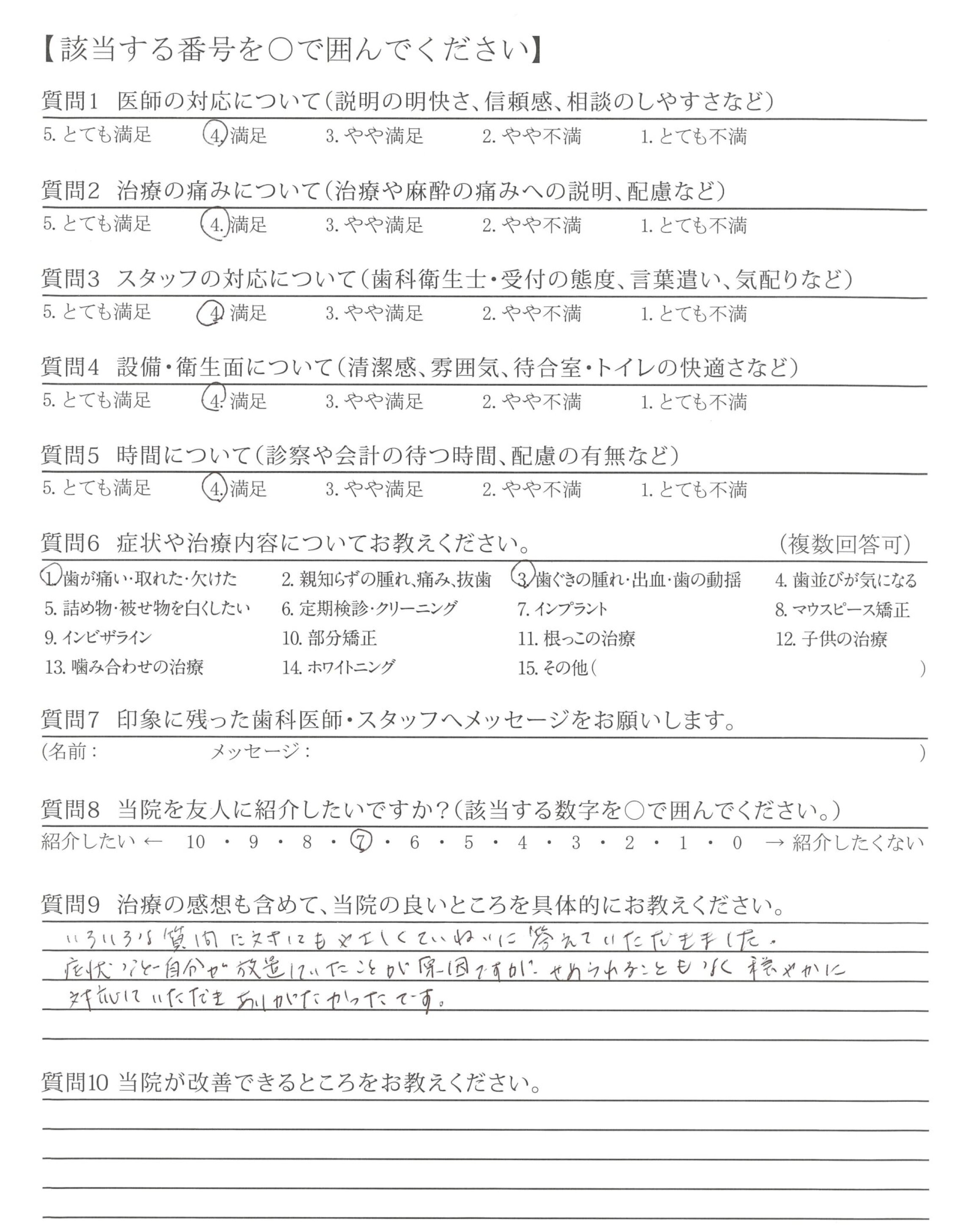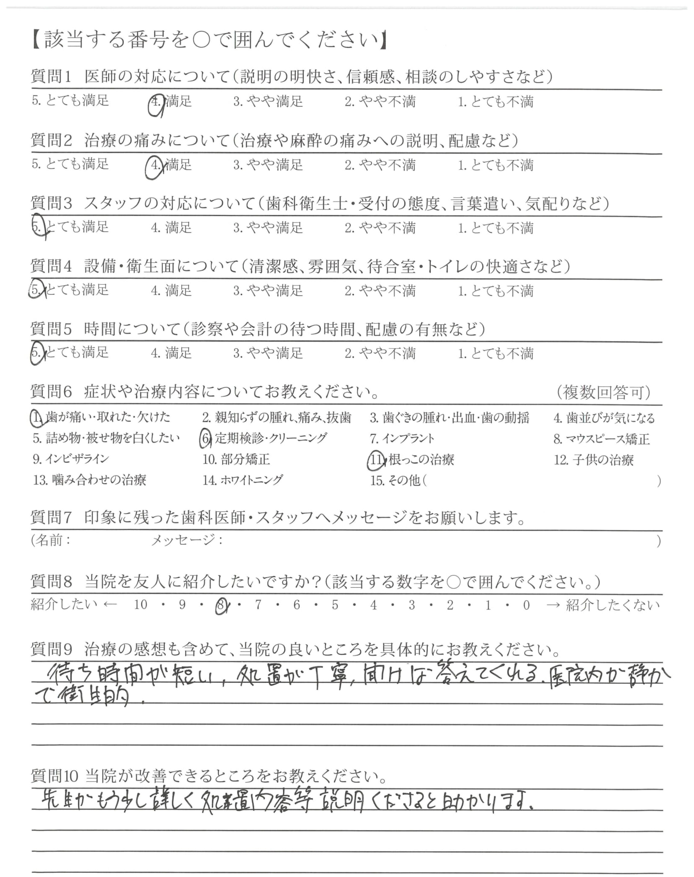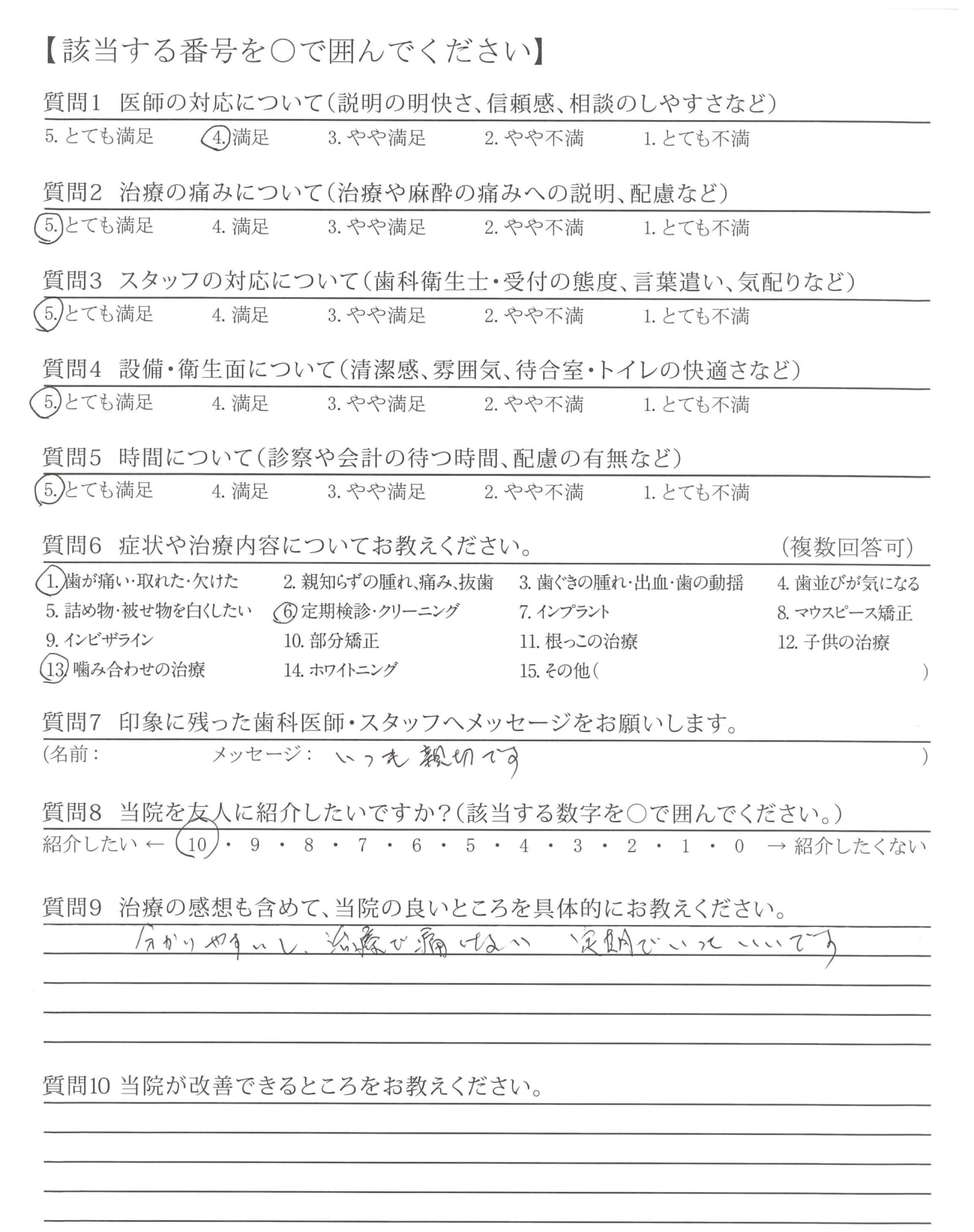 いつも治療の前にわかりやすく説明していただき、安心しています。