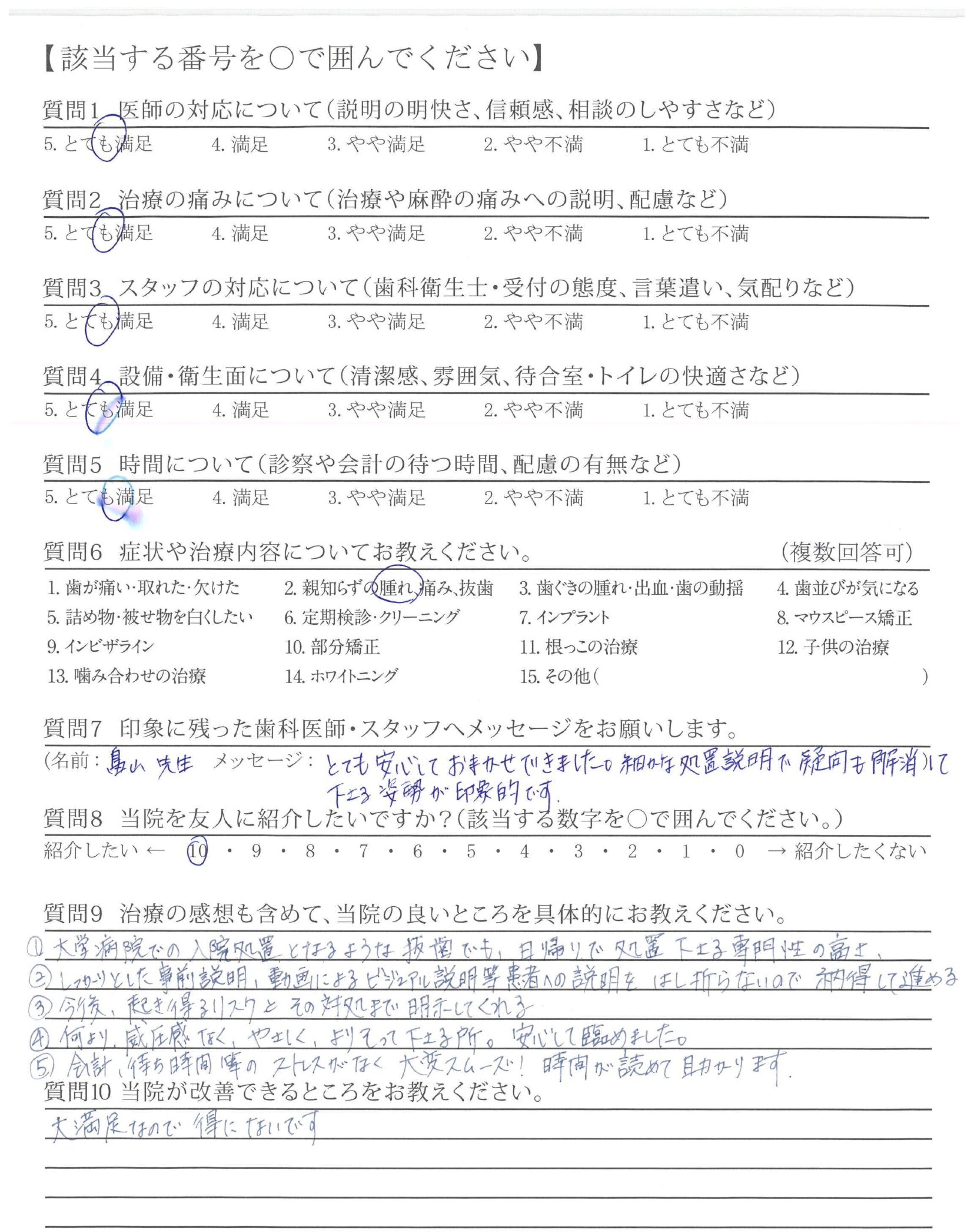 今のまま続けていただければ親知らずで悩む人が減ることは間違いないので、どうか、このまま末長く医院を続けていってください。本当にありがとうございました!!