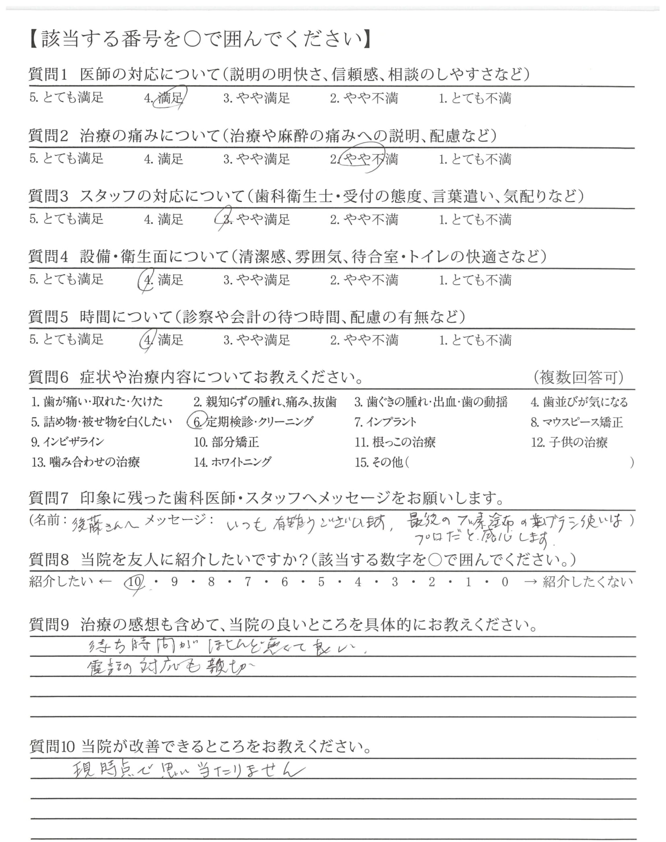 | 治療の痛みへの配慮 | ![]() ![]() ![]() ![]() 4.69 |