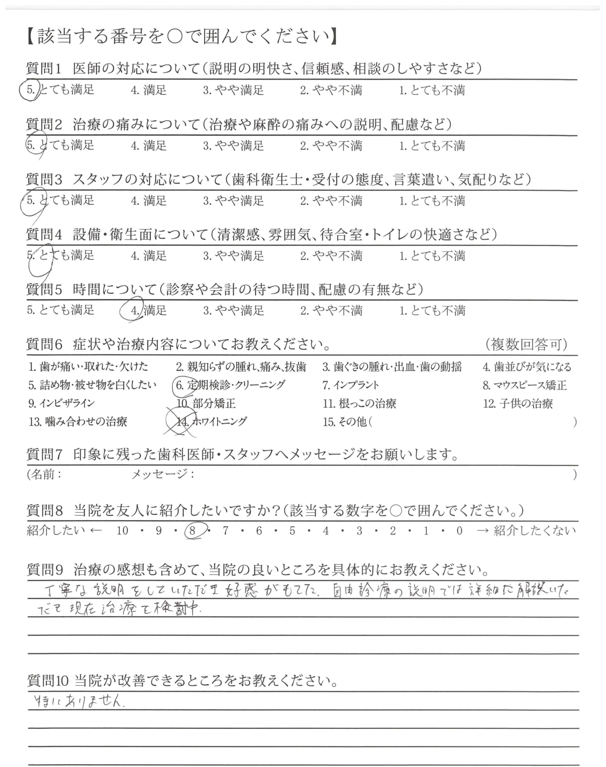 ・初診の折、口内環境を整えてから治療に入る点が新鮮でした。