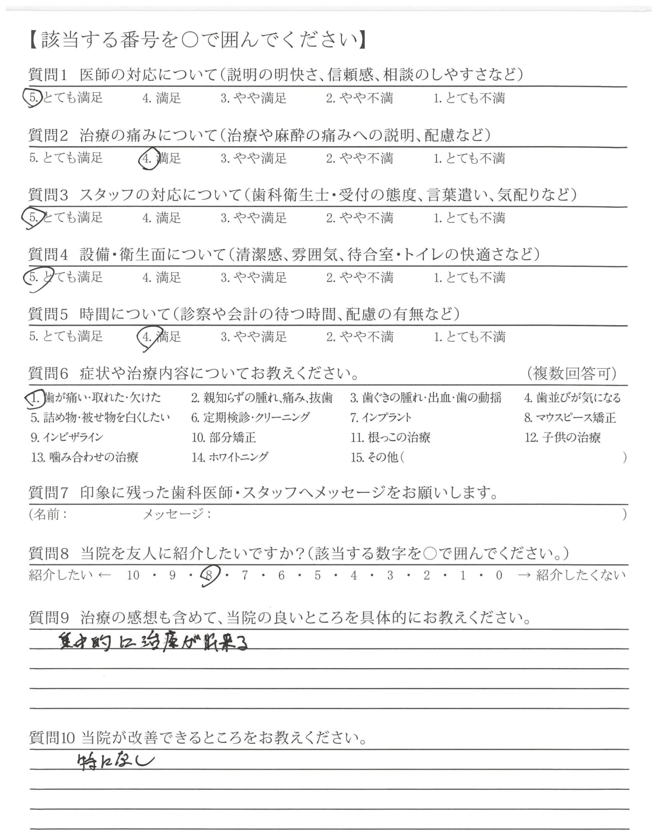 | 歯科医師の対応 | ![]() ![]() ![]() ![]() 4.76 |