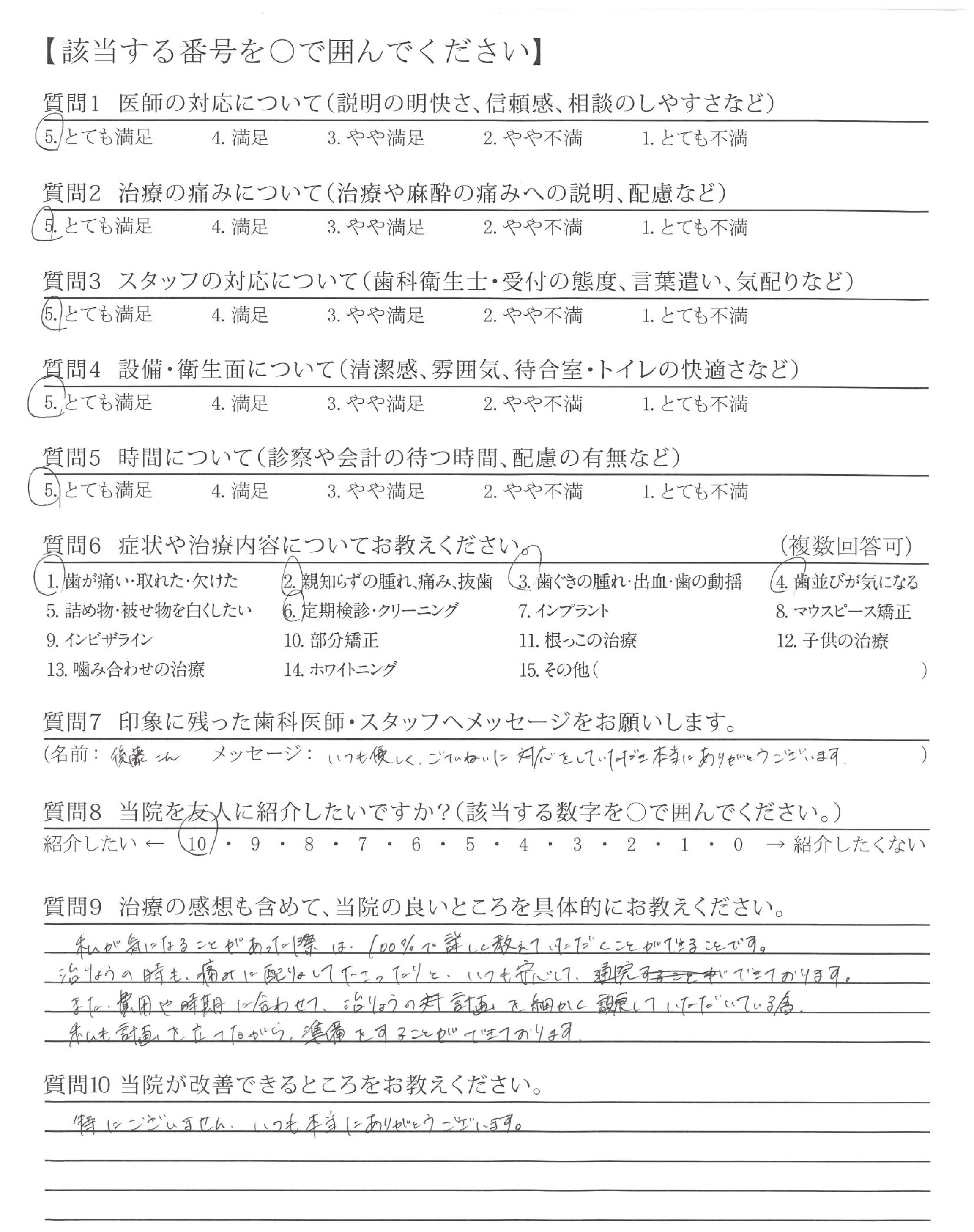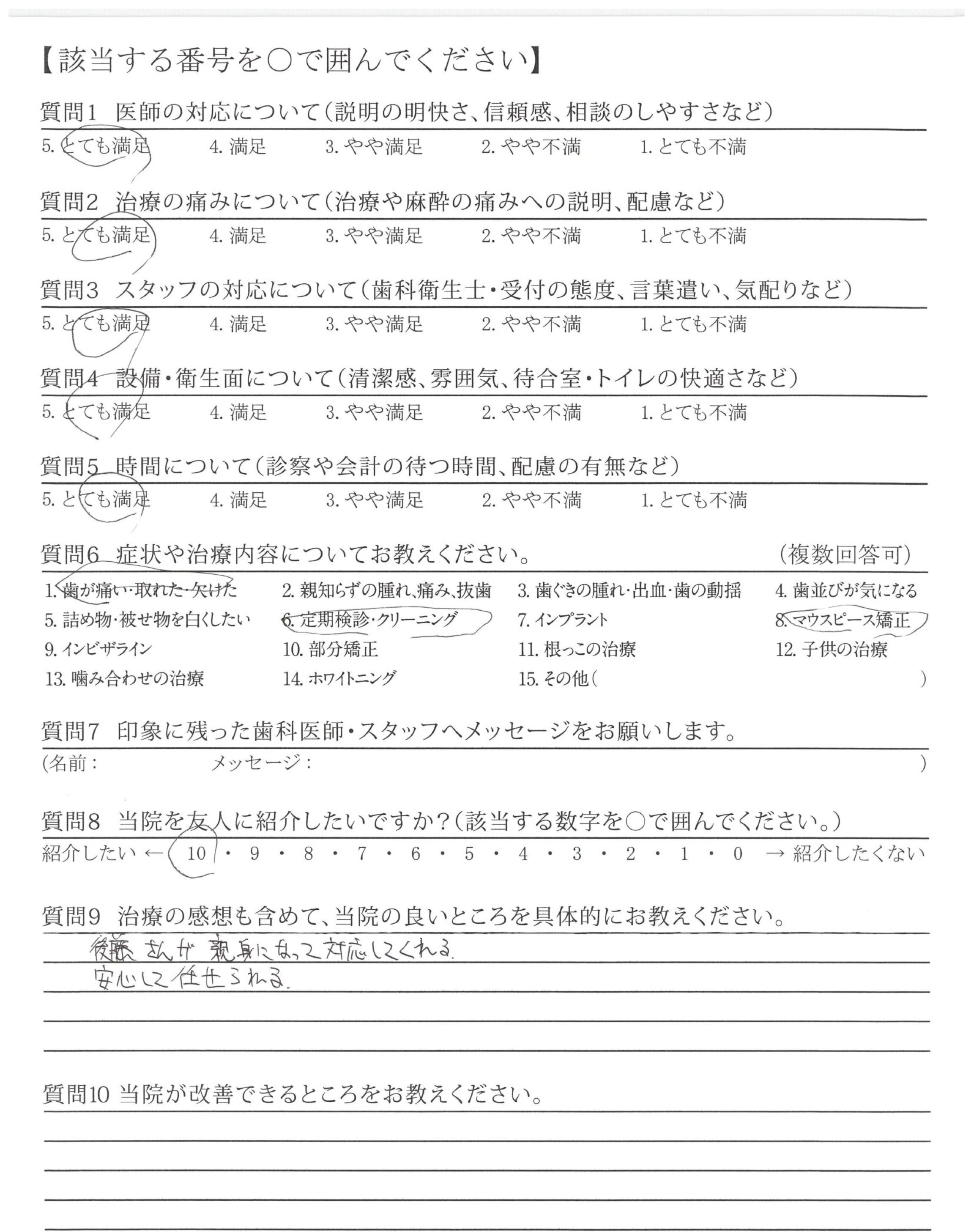 なぜそうするのか、またはしたのかという説明が丁寧で、分かりやすく、納得した上で治療にのぞむことができました。