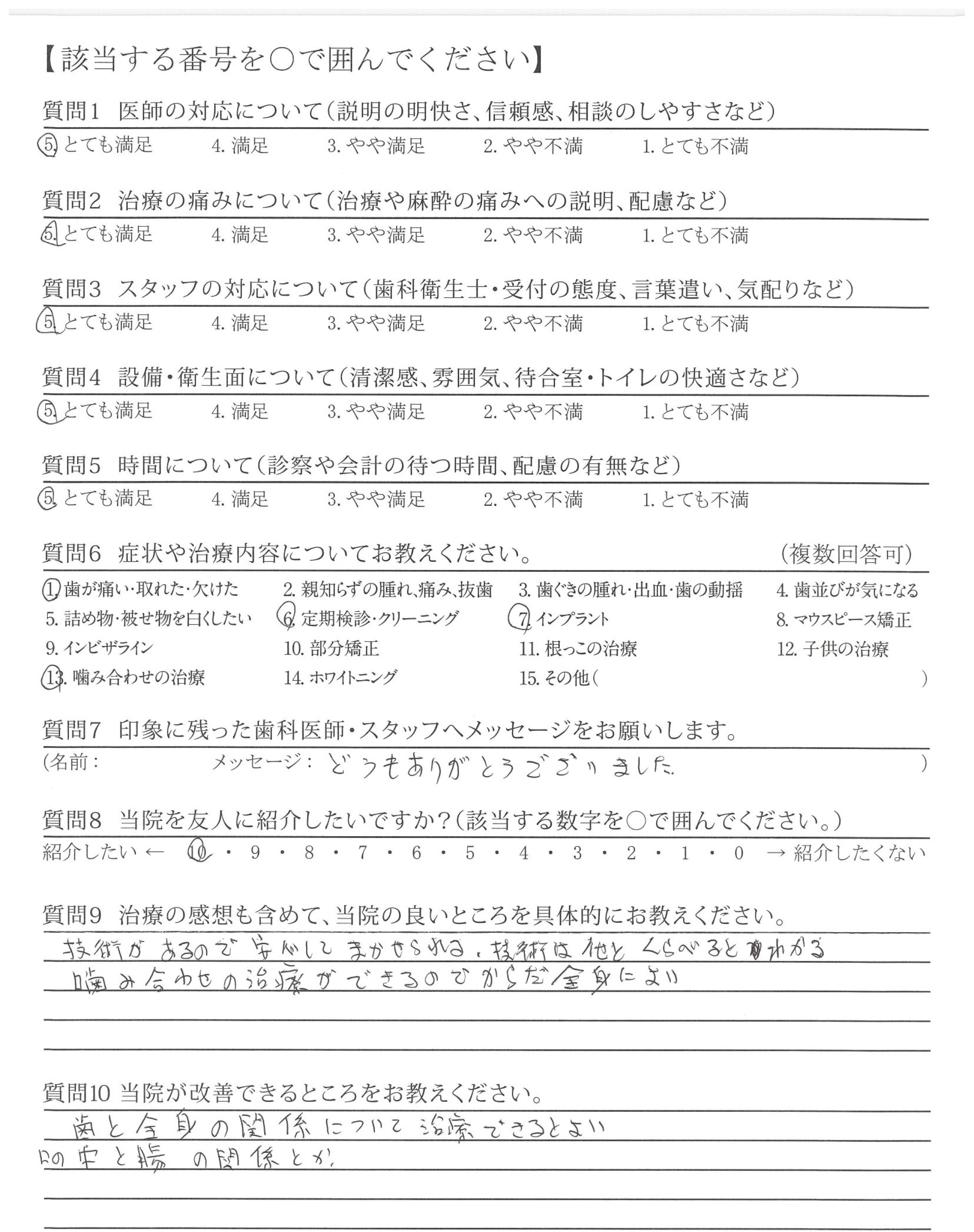 トータルとして、大変満足していますし、今後も永く通院(お世話になりたい)したいと思います。