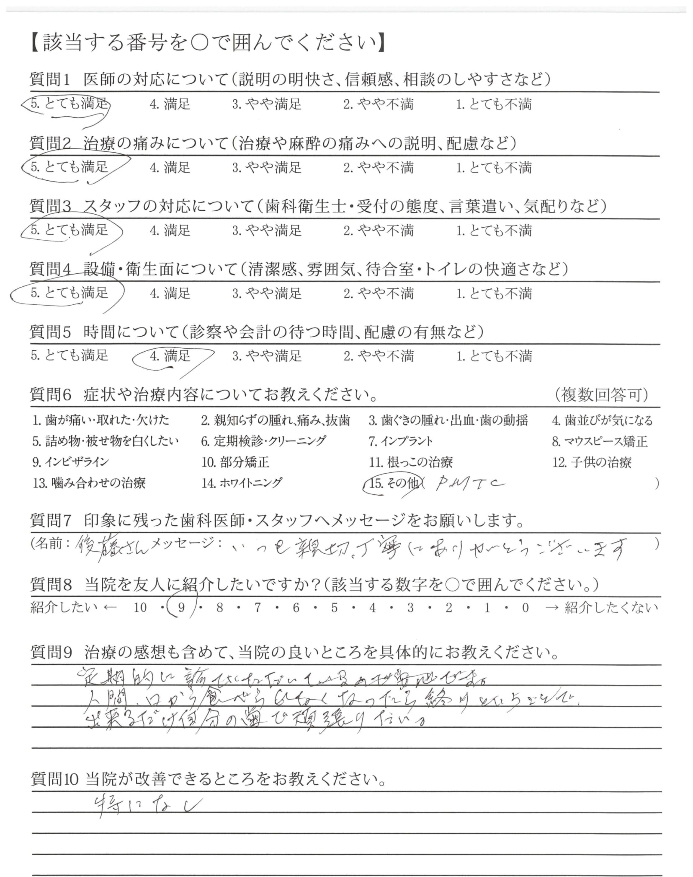 何よりも、自分の歯をできる限り残そうとしてくださる精神性のある治療方針に感動、感謝しています。
